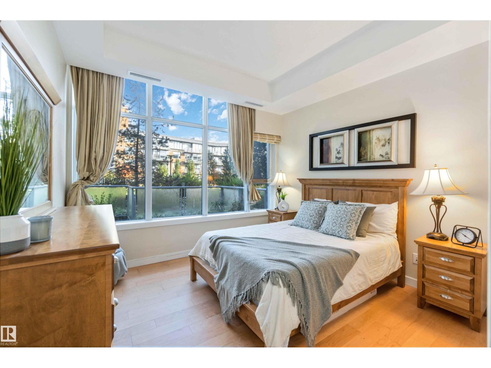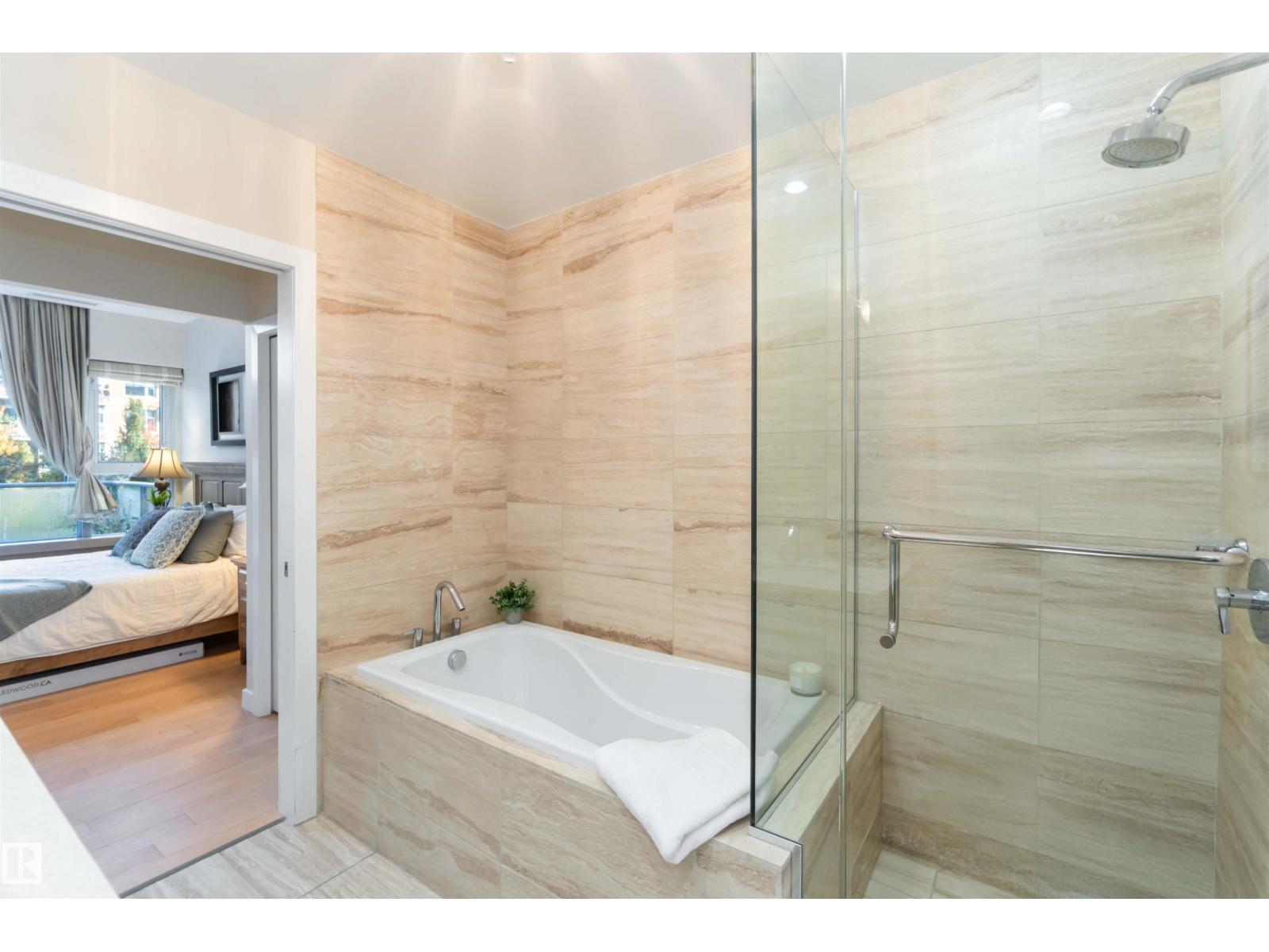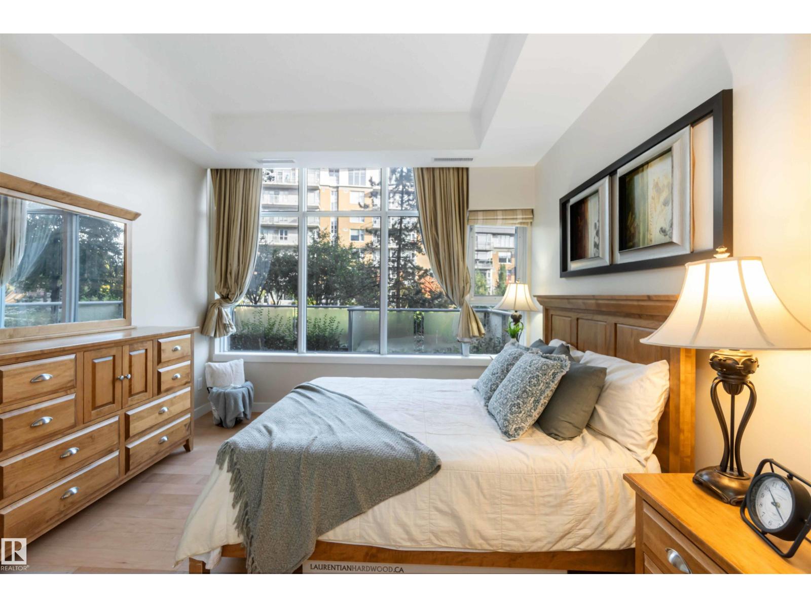 A Stylish and Refreshed 2 Bed, 2 Bath condo in sought-after Ermineskin! This beautiful ground-floor unit showcases serene courtyard views through a wall of windows and features soaring ceilings that create a bright, mini mansion feel. With the ease of taking your pet outside for a walk just by leaving your patio doors. Enjoy elegant hardwood floors, granite countertops, and tile in the kitchen and baths. The chef-inspired kitchen includes a gas cooktop, built-in oven and microwave, and smart pull-out cabinetry. Large Master Retreat with 5pc Ensuite and Second Bedroom with Murphy Bed. Oversized concrete patio surrounded by low-maintenance perennials for summer beauty. With in-suite laundry, titled underground parking & titled storage, this pet-friendly, well-managed complex also offers an exercise room. Condo fees include HEAT and WATER. With a move-in-ready vibe—just steps to grocery shopping, LRT station, and green space! (id:63190)
