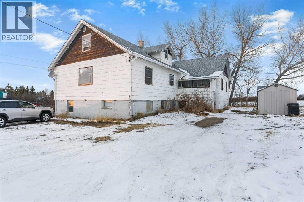A rare 4 Plex on 4 acres just minutes north of Three Hills, Alberta, this 4-acre country residential property offers an opportunity to own a four-plex on acreage within walking distance to downtown amenities, schools, and services. Originally built in 1947 and later converted to a four-unit dwelling, this property blends rural space with small-town convenience in a vibrant, growing community. It is priced below appraisal with repositioning potential. Use the extra land for added income such as RV storage, horse or livestock boarding. The building is configured as a four-plex consisting of two main-floor units, one upper-level unit, and one basement unit, each with its own unique layout and character. All units are currently rented on one-year leases, generating steady income, with the seller preferring to sell with tenants in place. Possession is flexible and may be fast, subject to tenancy.Utilities are combined for the building and currently included in rent, making this property attractive for buyers seeking a simplified management setup. Heating is provided by three natural gas furnaces, with town water supplied by Kneehill County, and a tank & open-discharge septic system that is regularly maintained and pumped annually. There are no active wells on the property.The property includes shared laundry facilities in the basement (1 washer & 1 dryer) (id:63190)