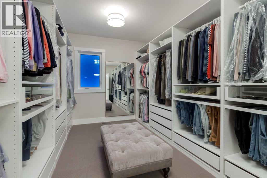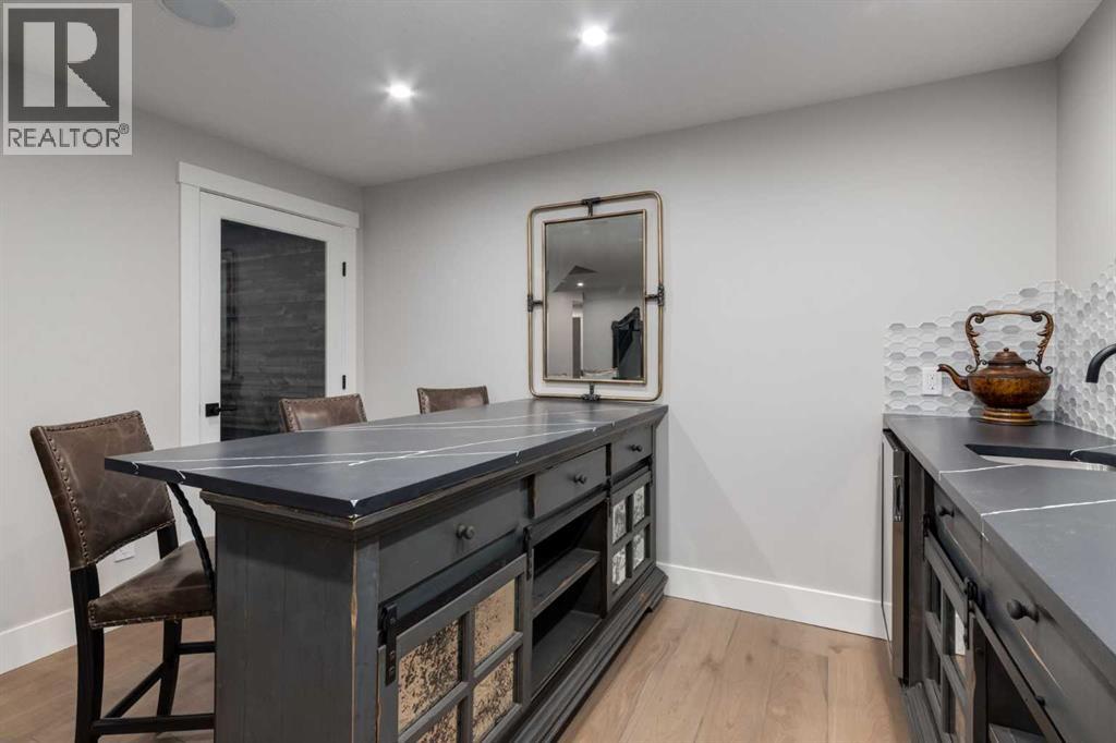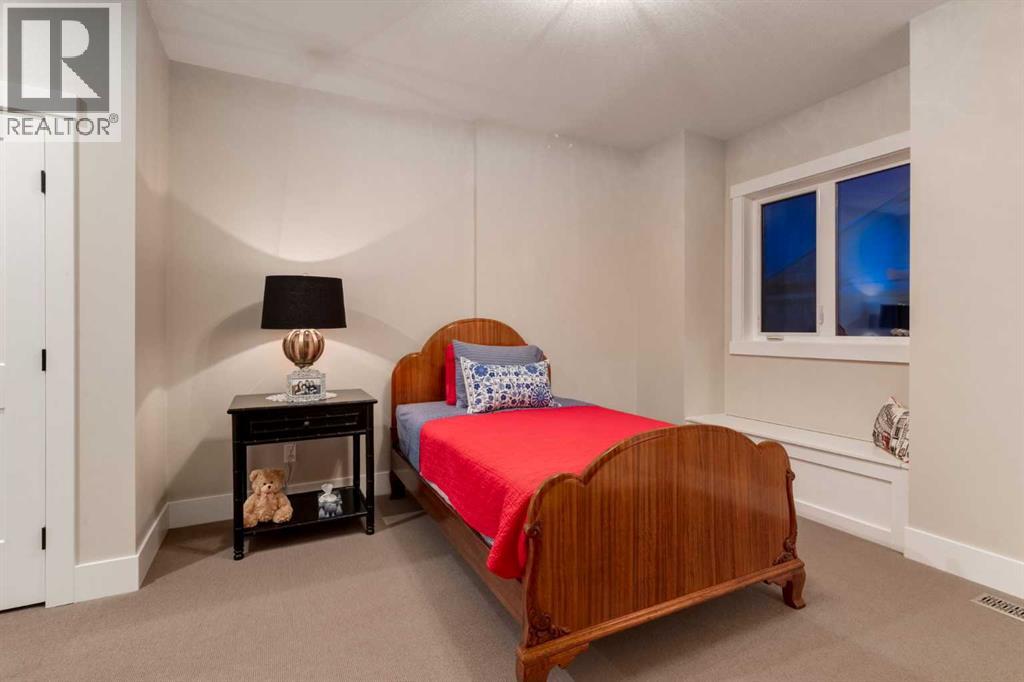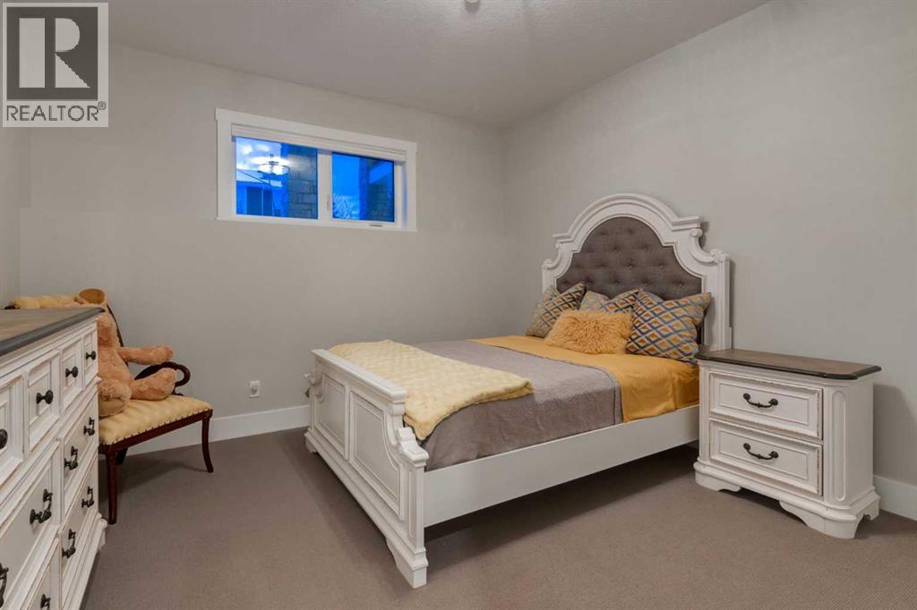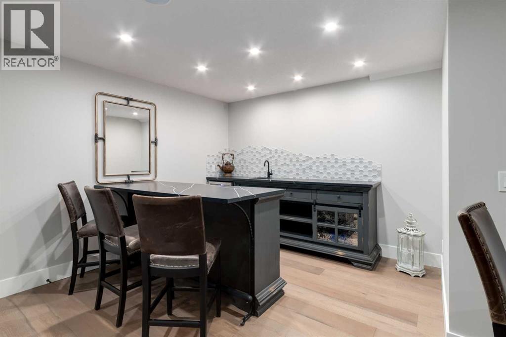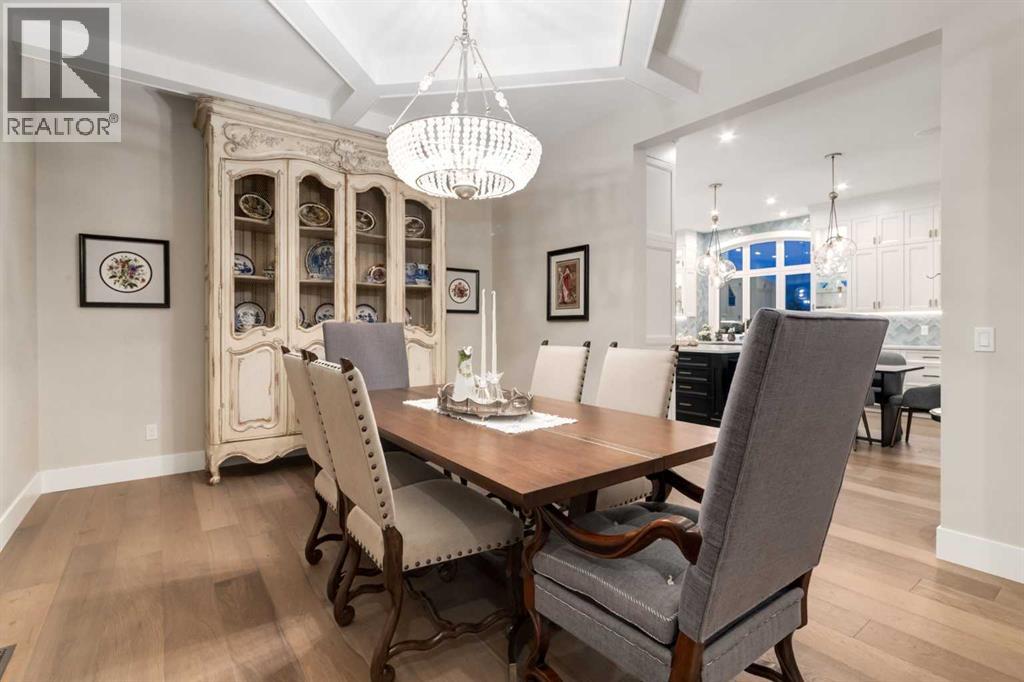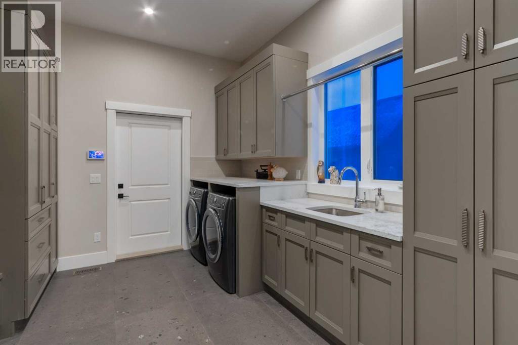 Masterfully executed in a transitional design style, this exquisite Family Home showcases nearly 5,500 sf of impeccable luxury defined by unparalleled craftsmanship and the highest quality of finishes throughout, including an ELEVATOR for easy accessibility to all three floors. The exterior architecture exudes a timeless appeal from the peaked rooflines to the "eyebrow" detailing to the rich stone accents, incredible window designs, a front veranda & upper balcony, and a striking "piece de resistance" front door. The beautifully landscaped front and back gardens impress with perfectly manicured flower beds, and a textural mélange of shrubs and trees. The home's layout is outstanding, while the interior design elements leave a lasting impression on the most discerning "eye for design". The main floor boasts soaring ceiling heights with coffered detailing, impressive, large windows flooding the interior with streams of natural light, custom millwork designs, beautiful, wide-plank hardwood floors, timeless floor and backsplash tile designs, and last but not least, exquisite "Schonbek" chandeliers. The grand, light-filled great room features a magnificent fireplace. It is open to the decadent kitchen and an elegant dining room perfectly suited to hosting dinner parties for family and friends. The front study offers complete privacy and leads to a unique "plant sunroom". The custom-designed kitchen is a chef's dream featuring high-end appliances, ample storage with pullout units, a gigantic center island, timeless quartz countertops, a coveted "Hammersmith" range hood, and last but not least, an impressive chevron pattern backsplash design executed with the utmost precision. Beautifully custom-designed stairs ascend to the upper level complete with three bedrooms and a bonus room, perfectly suited for the children's play area, a TV/games room, or a study room. The master suite is a luxurious retreat complete with wool carpeting, a showpiece chandelier, its own West-facin g balcony and a lavish spa-like ensuite and "dressing room" - a fashionista's dream. Each of the children's bedrooms offers its own chic ensuite bath. The lower level is a true "entertaining haven" featuring a family/TV room that opens onto a private patio area, a wet bar complete with custom furniture-piece units, a wine room, three additional bedrooms, one of which being designated as an exercise room, a full bathroom and a large storage/cold room area. The double and single garage spaces are heated. The single garage is complete with 220 V wiring to allow for an EV charging station. The monthly HOA fees include front yard maintenance, including weekly mowing/trimming; weekly curbside garbage/recycling pickup; snow removal on the streets, sidewalks, pathways & the central plaza; maintenance of the central plaza, cascading ponds, outdoor kitchen, and playgrounds. Please refer to the community website for a wealth of information. MUST BE SEEN! (id:63190)
