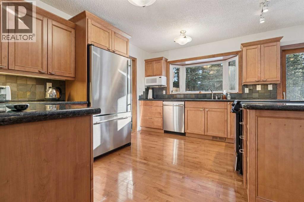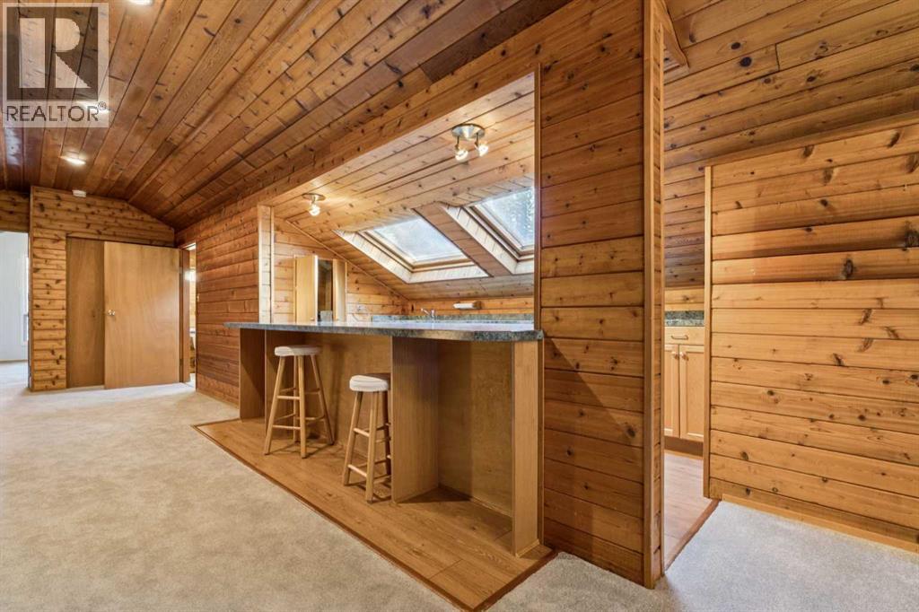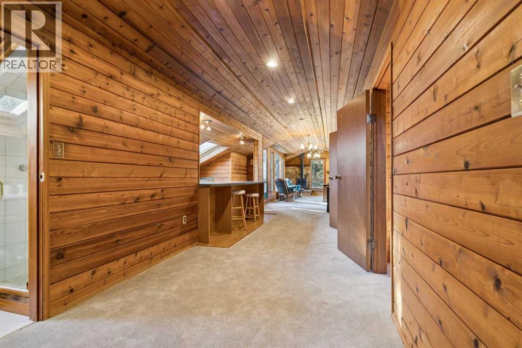 Deep in the woods of Redwood Meadows lies a house that is so much more than it seems. Set modestly away from the street into the trees, you might not notice it on a quick drive past- but there are many things that make it worth exploring! First of all is the pride of ownership- this house has been cared for and it shows in every room. The main floor features 3 bedrooms, 2.5 baths, a multitude of areas for entertaining and living, and a deck with outdoor fireplace that would be the envy of anyone who likes to spin a tale to friends under the stars. The kitchen has been updated with new appliances, lighting and gorgeous granite countertops. The primary bedroom has custom closet inserts and an ensuite with modern tile and fixtures. The main floor on its own would be a stunning bungalow, but there is more-the upstairs loft is where this home truly shines. The aura of the second floor brings to mind the quintessential cozy cabin with its wood paneling and new gas fireplace in a Rundlestone inglenook. It is another world upstairs, and has two snug bedrooms, a full bath, wet bar, and renovated balcony with glass balustrade. What could you do with this space? A home based business. A unique space for visiting family. Nanny quarters, art studio, or a bed and breakfast? The potential is endless and intriguing. The upgrades to this home are too numerous to list but include new windows, furnace, hot water heater, bathroom renovations, carpet, roof, insulation, electrical and exterior paint. Everything has been taken care of, all you have to do is move in and enjoy this incredible neighbourhood. Redwood Meadows features golf, fishing, hiking, mountain biking, x-country skiing, tennis, disc golf, and more…right outside your front door. Located only 30 minutes from Calgary, 8 minutes to the Bragg Creek hamlet, with access to great schools, shopping and restaurants, and right at the gateway to all the recreational opportunities of Kananaskis Country. Come see why everyone wants to live here! (id:63190)