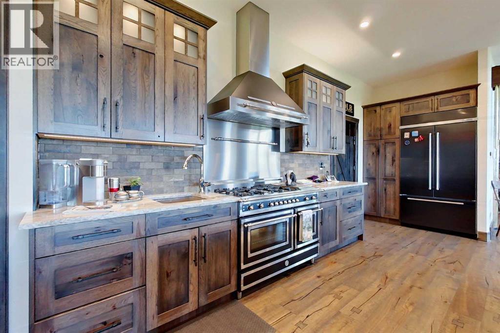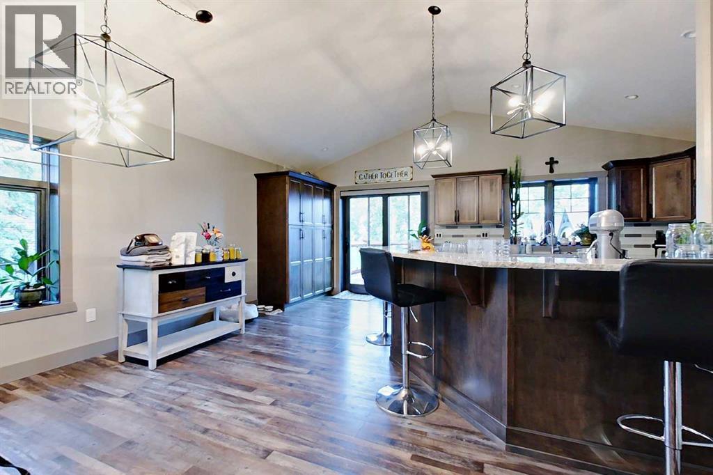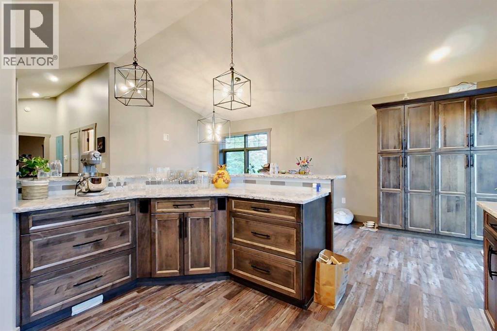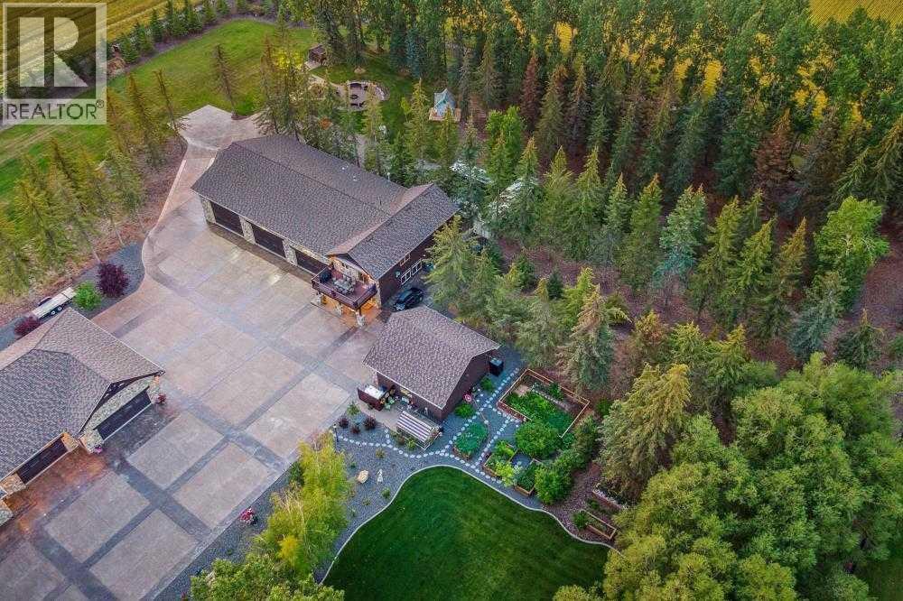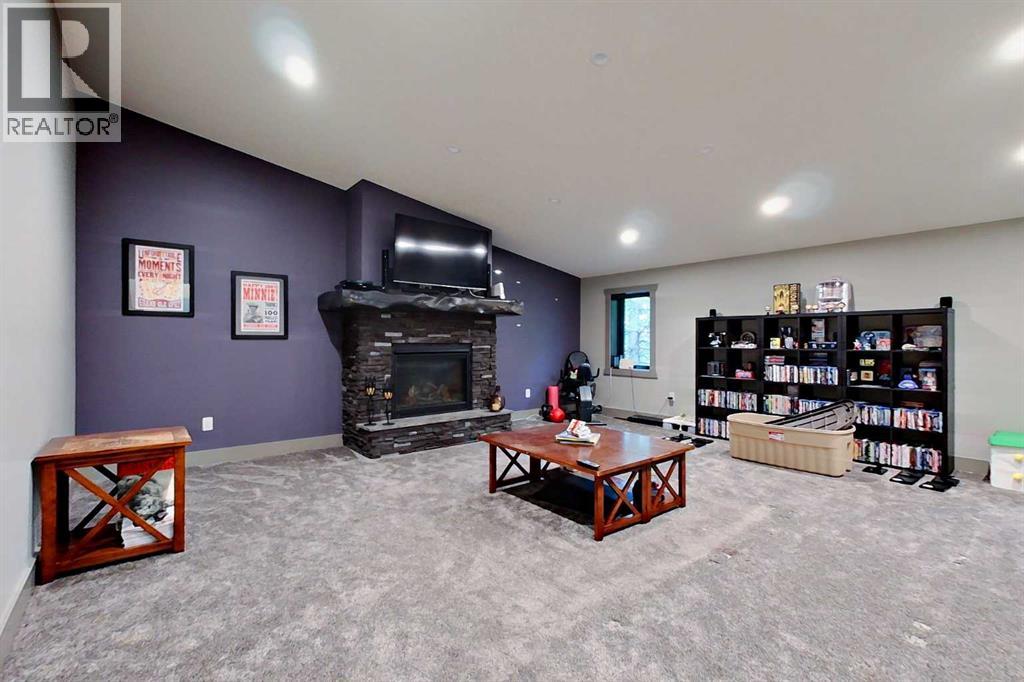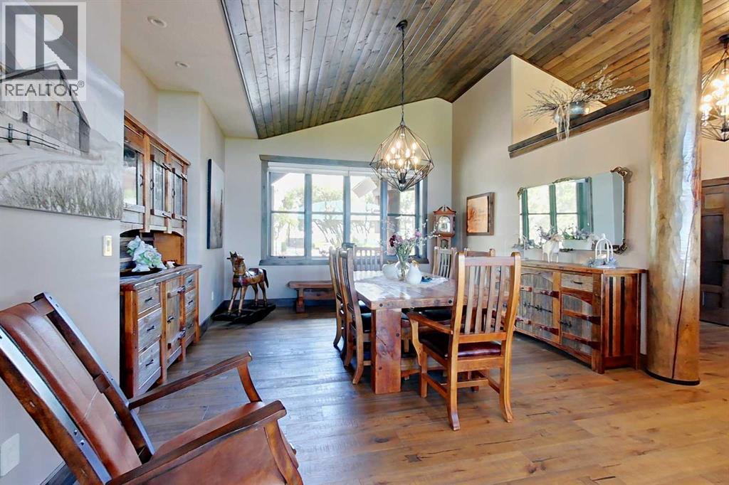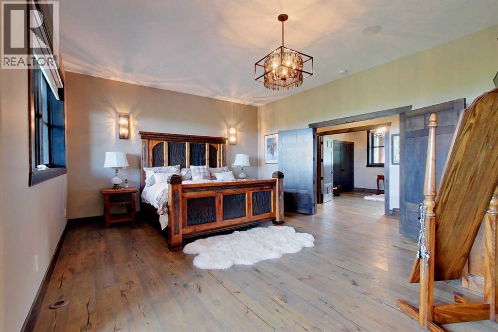 EXECUTIVE ACREAGE WITH STUNNING MOUNTAIN VIEWS AND A PARKLIKE SETTING! First time offered for sale and extremely rare opportunity to purchase this pristine 5.21 +/- Acres Located Just mins South of Olds on pavement. This is the perfect central Alberta location with Less than a 1hr drive to the Calgary airport and just 40 mins to Red Deer. The entire property sends a majestic mountain lodge feel where nature, towering trees, mature landscaping, gardens, family fire pit area, wide open spaces with waterfalls & streams soothe the soul. Executive touches greet you at the impressive main entrance with beautiful timbers, stonework, wrought iron fencing and over 46000 sqft (over 1 acre) of concrete driveway and stamped concrete edging inlays. The sprawling 3690sqft bungalow is loaded with features and class. Built with ICF Block foundation and a top of line list of mechanical features and sound system throughout. Rough edge quartz counter tops highlight a huge island kitchen with two dishwashers, a gas stove imported from overseas , under counter lighting, custom detailed wood artwork and more! The wide open concept and massive west facing windows allow for natural sunlight to stream throughout the entire main floor. Two Large fireplaces on the main floor & main floor laundry. The Primary bedroom is fit for a queen offering the most luxury built-in closet organizers and a massive ensuite with heated floors, two sinks and huge quartz shower. Two more large bedrooms, a 4pc and 2pc bath on the main floor. The basement features a large rec room, bar rough in and future room for even more development. The custom details don't stop in the 62' x 48' attached and heated garage with epoxy floors, 2pc bath, in-floor heart and a hot-water make up heater for quick recovery of heat. The concrete apron just outside the garage doors is also heated. Outbuildings include a fully finished 28' x 28 'detached garage and a massive fully finished 50' x 100' shop wi th bright LED lighting, in-floor heat, an RV sani-dump station and separate 1542 sqft legal suite. The legal suite includes two full 4pc baths, two bedrooms, large bonus room with custom fireplace mantel, custom kitchen and more! A true 10/10 showing is guranteed! Your best move starts here! (id:63190)
