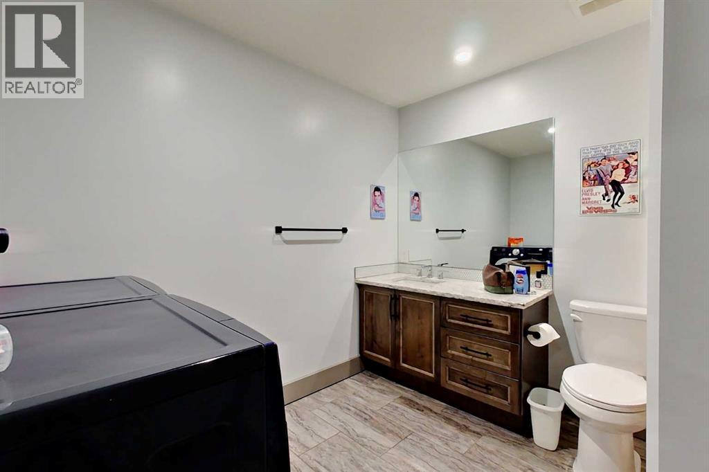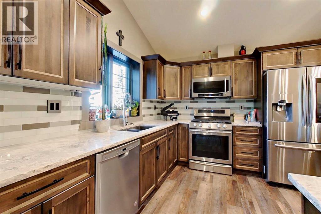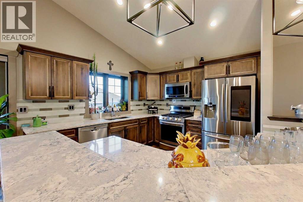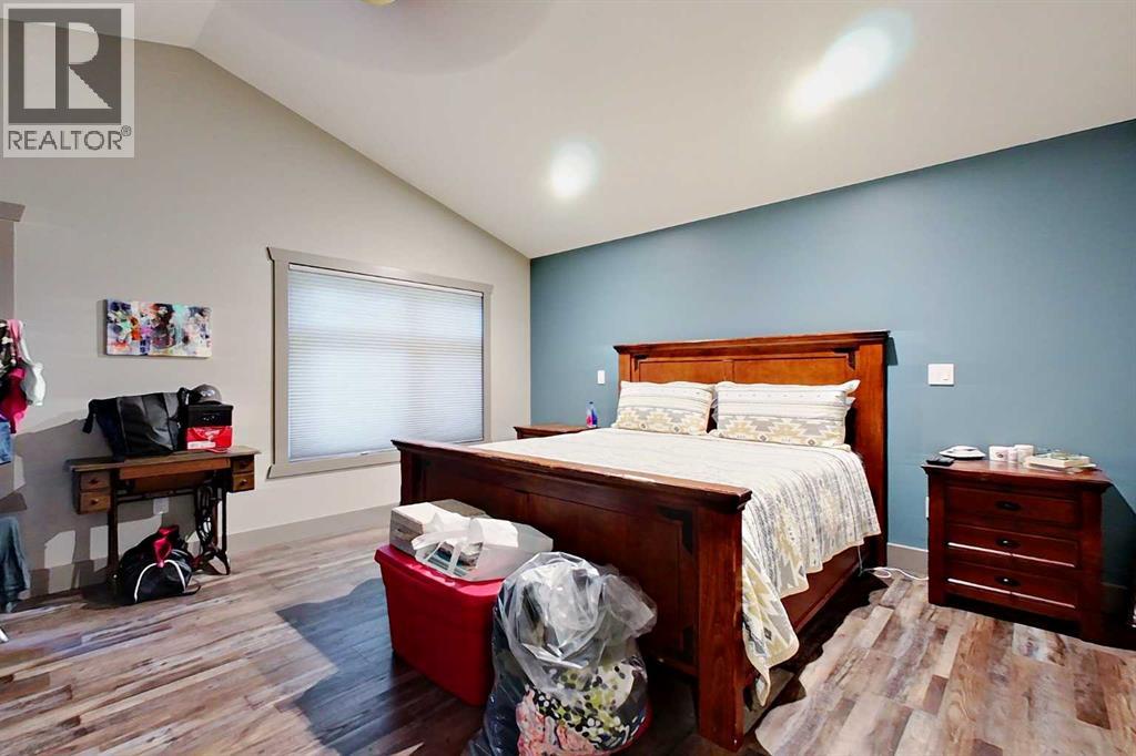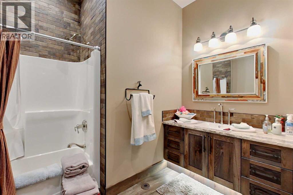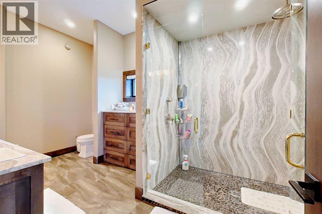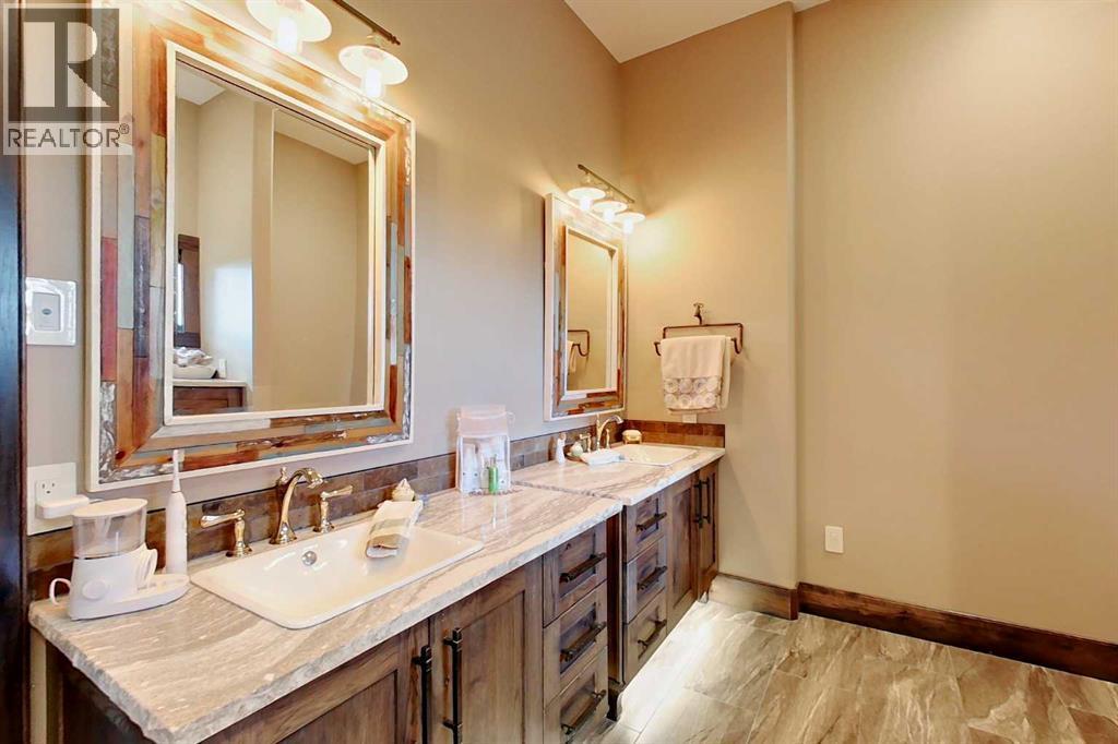 EXECUTIVE ACREAGE WITH STUNNING MOUNTAIN VIEWS AND A PARKLIKE SETTING! First time offered for sale and extremely rare opportunity to purchase this pristine 5.21 +/- Acres Located Just mins South of Olds on pavement. This is the perfect central Alberta location with Less than a 1hr drive to the Calgary airport and just 40 mins to Red Deer. The entire property sends a majestic mountain lodge feel where nature, towering trees, mature landscaping, gardens, family fire pit area, wide open spaces with waterfalls & streams soothe the soul. Executive touches greet you at the impressive main entrance with beautiful timbers, stonework, wrought iron fencing and over 46000 sqft (over 1 acre) of concrete driveway and stamped concrete edging inlays. The sprawling 3690sqft bungalow is loaded with features and class. Built with ICF Block foundation and a top of line list of mechanical features and sound system throughout. Rough edge quartz counter tops highlight a huge island kitchen with two dishwashers, a gas stove imported from overseas , under counter lighting, custom detailed wood artwork and more! The wide open concept and massive west facing windows allow for natural sunlight to stream throughout the entire main floor. Two Large fireplaces on the main floor & main floor laundry. The Primary bedroom is fit for a queen offering the most luxury built-in closet organizers and a massive ensuite with heated floors, two sinks and huge quartz shower. Two more large bedrooms, a 4pc and 2pc bath on the main floor. The basement features a large rec room, bar rough in and future room for even more development. The custom details don't stop in the 62' x 48' attached and heated garage with epoxy floors, 2pc bath, in-floor heart and a hot-water make up heater for quick recovery of heat. The concrete apron just outside the garage doors is also heated. Outbuildings include a fully finished 28' x 28 'detached garage and a massive fully finished 50' x 100' shop wi th bright LED lighting, in-floor heat, an RV sani-dump station and separate 1542 sqft legal suite. The legal suite includes two full 4pc baths, two bedrooms, large bonus room with custom fireplace mantel, custom kitchen and more! A true 10/10 showing is guranteed! Your best move starts here! (id:63190)