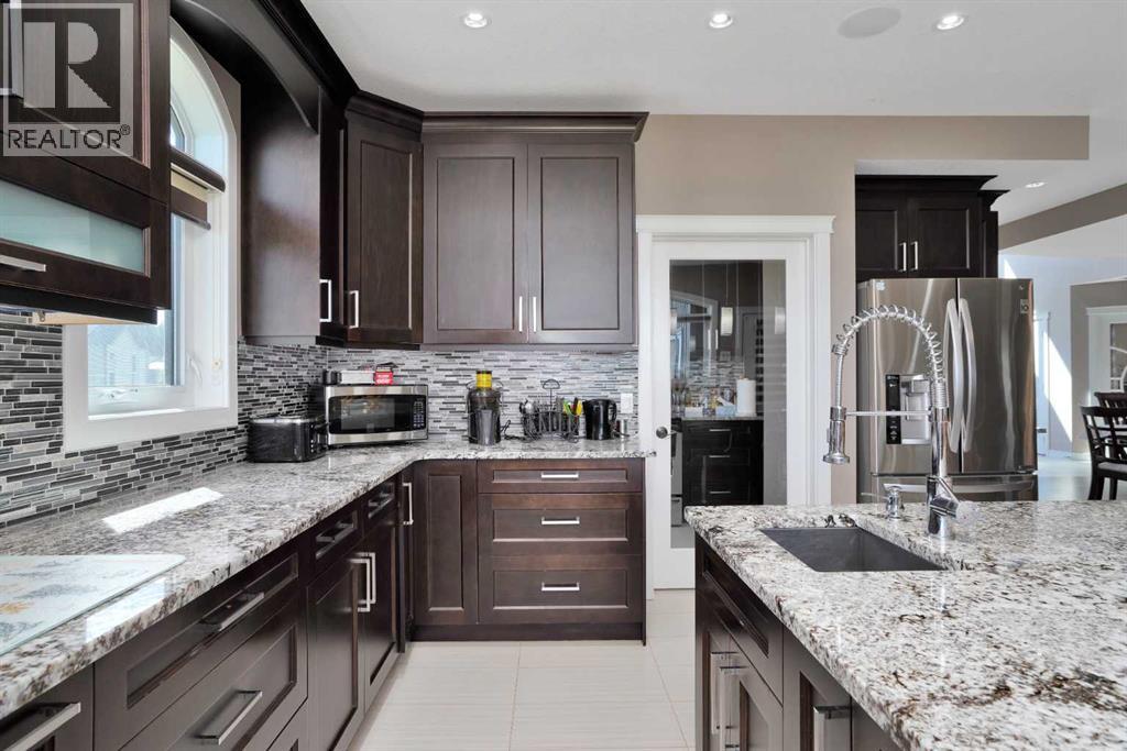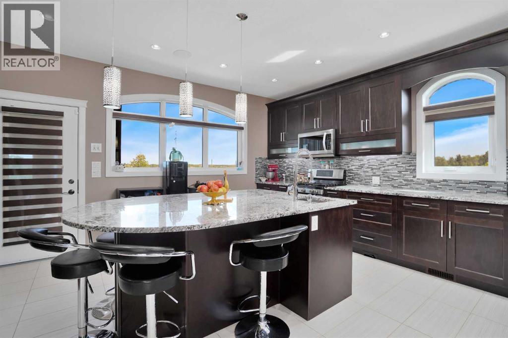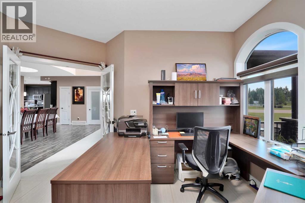 Located in the peaceful Valleyridge Estates, this custom-built 2-story home sits on a beautiful 2-acre lot by the Blindman River. The house is bright and airy, thanks to many windows that let in lots of natural light. It has five large bedrooms, including four main suites with walk-in closets and custom tiled showers. The main suite upstairs has a private deck with lovely views of nature. The home has two gourmet kitchens with granite countertops; the main kitchen also has a secondary spice/butler’s kitchen, great for entertaining. The living areas include a formal office, a cozy living room, a big family room, and a charming sunroom. There’s also a large loft on the second floor and a practical laundry room with granite counters and lots of storage. The main floor is 2,294 square feet, and the second floor is 1,343 square feet. The 2,260 square feet walkout basement has a bathroom and is ready for customization. The triple attached garage is heated and has 11-foot ceilings. The main suite’s second-story deck is covered for outdoor enjoyment, and the entryway has a grand 19-foot ceiling. The home also features two furnaces, dual central vacuum systems, and advanced insulation for energy efficiency and comfort. With its custom features and beautiful location, this home is a true example of luxury living. (id:63190)