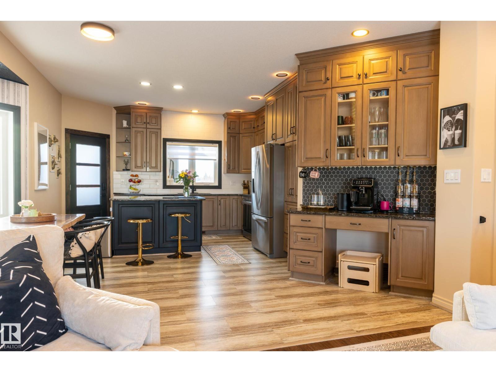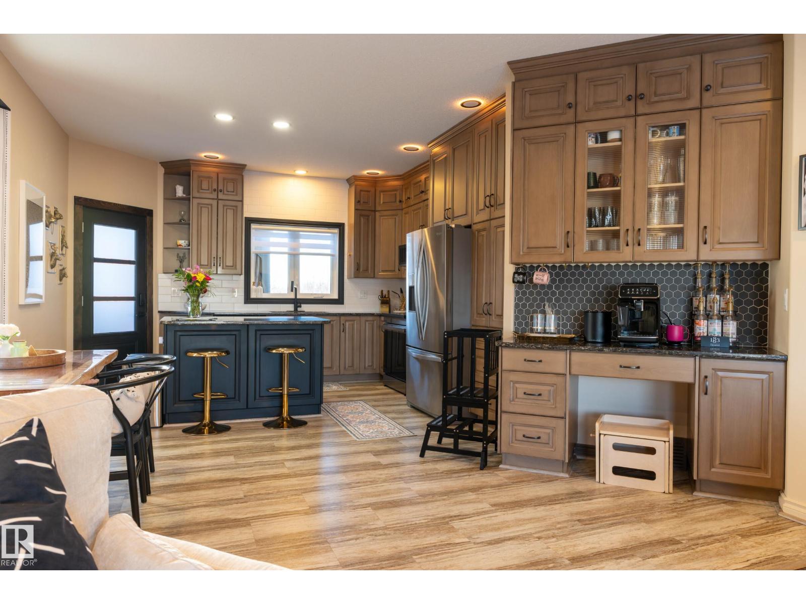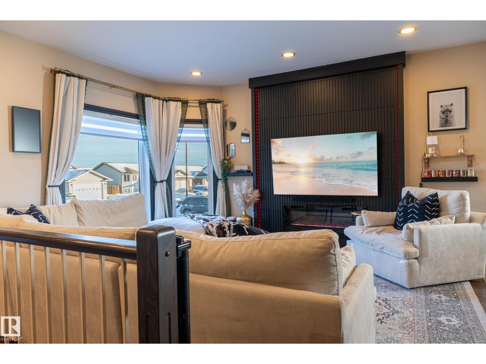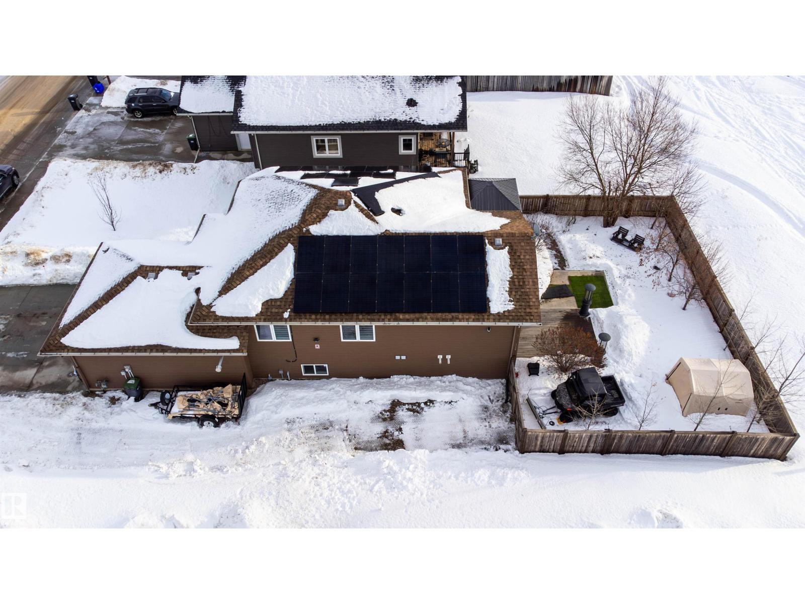 Modern efficiency and everyday comfort in this well maintained home with thoughtful upgrades. A 32-panel solar system produces approximately 14,636 kWh per year (average use is 12,000), offsetting energy costs by an impressive 105%, providing excellent long-term savings. Beautiful kitchen cabinetry, with Cambria quartz countertops, new appliances, and a new backsplash. An electric fireplace adds warmth and ambiance. From the kitchen, a lovely deck overlooking a zero-scaped backyard with trees, shrubs, and a firepit area, ideal for relaxing or entertaining. Main floor laundry room located directly across from the bedrooms, bathrooms updated with new water-efficient toilets, and custom closet organizers in all closets. The lower level offers a spacious family room, with in-floor heating, two additional bedrooms, and a large full bathroom. Additional laundry downstairs. Heated garage has stunning epoxy floors. Close to Kinosoo Beach. City shop yard across the street is being relocated to near the museum. (id:63190)