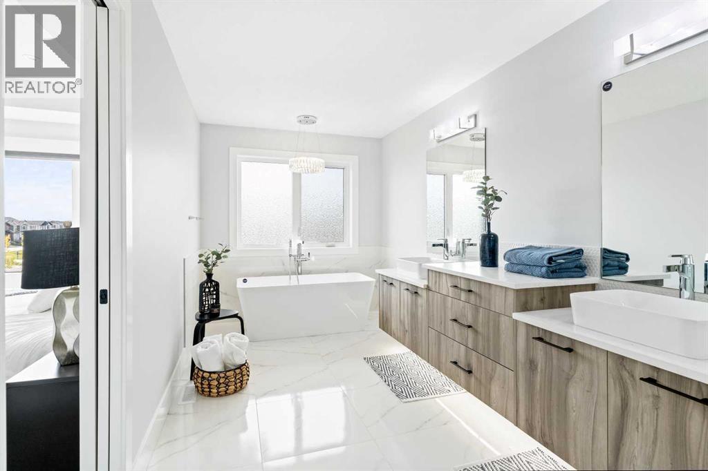 This home is currently under construction. Photos are for representation purposes only and are not of the actual property. Finishes, features, and specifications may vary.Welcome to Sunset Ridge, where luxury meets lifestyle in this beautifully crafted home by Green Cedar Homes. Offering approximately 3,000 sq. ft. of thoughtfully designed living space, this residence features 4 bedrooms, 4 bathrooms, a walk-out basement, and a triple attached garage, all set against Cochrane’s iconic mountain backdrop.The main floor is bright, open, and designed for both connection and comfort. At the heart of the home is a chef-inspired kitchen with premium finishes, sleek cabinetry, and seamless flow into the dining and living areas—perfect for entertaining and everyday living. The living room is anchored by a gas fireplace, adding warmth and sophistication to the space.A versatile flex room on the main floor offers the ideal setup for a home office, study, or formal sitting area, while the walk-through pantry and mudroom enhance functionality and organization for busy households.Upstairs, the primary suite is a true retreat, featuring a spa-style ensuite with dual vanities, a freestanding soaking tub, and an oversized shower, along with a generous walk-in closet. Three additional bedrooms, each with access to full bathrooms, and a spacious bonus room complete the upper level—balancing comfort, privacy, and style.The undeveloped walk-out basement provides endless possibilities to create a custom entertainment space, home gym, or guest suite, all with direct backyard access and abundant natural light.Located in one of Cochrane’s most desirable communities, Sunset Ridge offers scenic walking trails, parks, schools, and breathtaking Rocky Mountain views, just minutes from everyday amenities.Built with precision and care by Green Cedar Homes, this property captures the essence of modern family living—elegant, spacious, and designed to impress. (id:63190)
