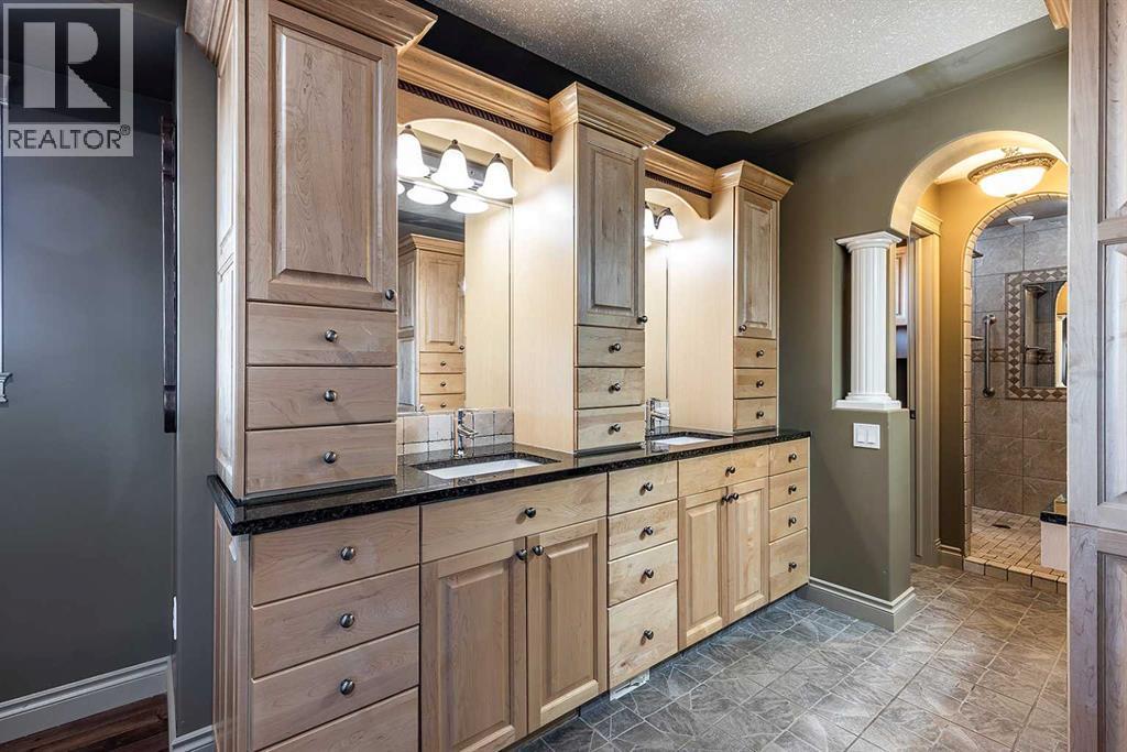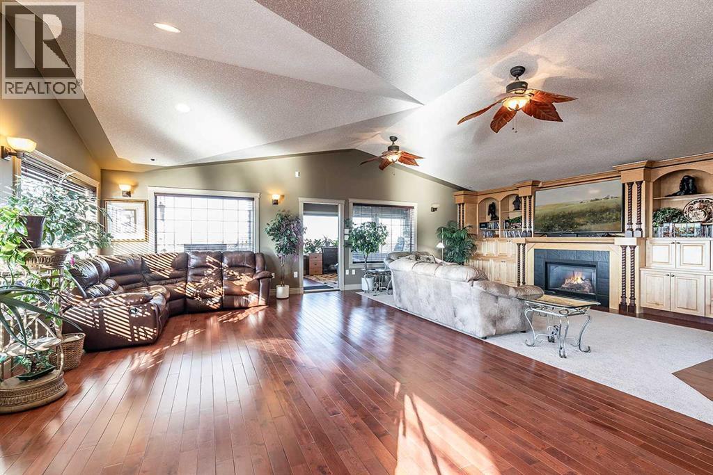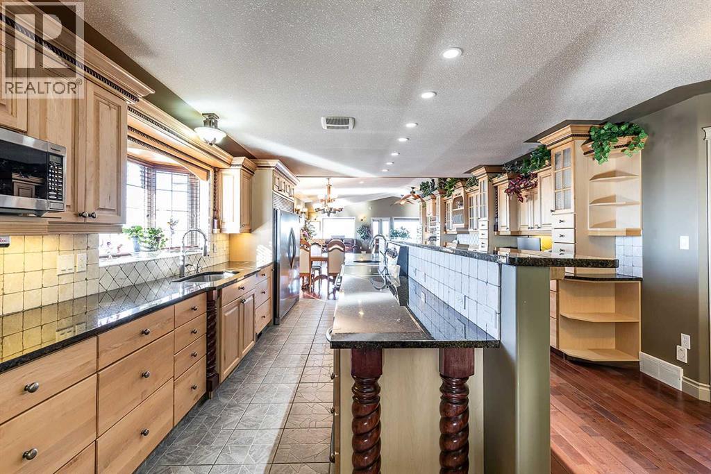 Set on a huge oversized lot in Dunmore, this custom-built 4 bedroom, 5 bath home offers 3673 sqft of thoughtfully designed living space. A generous entryway sets a warm and inviting tone for the entire home. The lower level is perfect for entertaining, featuring a cozy living area with a gas fireplace and a wet bar with fridge. In slab boiler heat ensures evenly dispersed heat throughout the main floor. A bedroom, 3-piece bathroom, and utility room complete this level, along with direct access to the 6-car heated garage—complete with its own 2-piece bathroom and plenty of desk and workspace, ideal for car enthusiasts, hobbyists, or a functional workshop. Upstairs, the expansive kitchen impresses with a 17-foot island, two sinks, extensive custom maple cabinetry, and a separate wet bar with an additional sink. It flows seamlessly into the dining and living areas with a fireplace. Vaulted ceiling and large windows flood this space with light and and feeling of grandeur. Two bedrooms share a Jack and Jill 4-piece bathroom, plus there’s an additional 2-piece bathroom for convenience. The primary suite offers a luxurious ensuite with corner jetted tub, double sinks, large vanity with make-up counter, double walk-in tiled shower, and a spacious walk-in closet with built-in vanity; there's even hookups for a second washer and dryer if desired! The upper level enjoys dual zone heating and cooling to ensure everyone's comfort. An enclosed, heated sunroom extends off the upper living area, currently used as an office and offering comfortable, year-round space. Just outside, a covered deck provides a comfortable area to take in the views and looks out onto the oversized lot. In additional to the 6 car garage, you will find ample parking/RV storage options with the large paved driveway and covered lower patio area that can easily be used as a carport if needed. The durable rubber roof here will withstand the Southern Alberta winds for years to come. With its combination of executive features, large garage capacity, and unparalleled design, this home is truly one-of-a-kind! (id:63190)