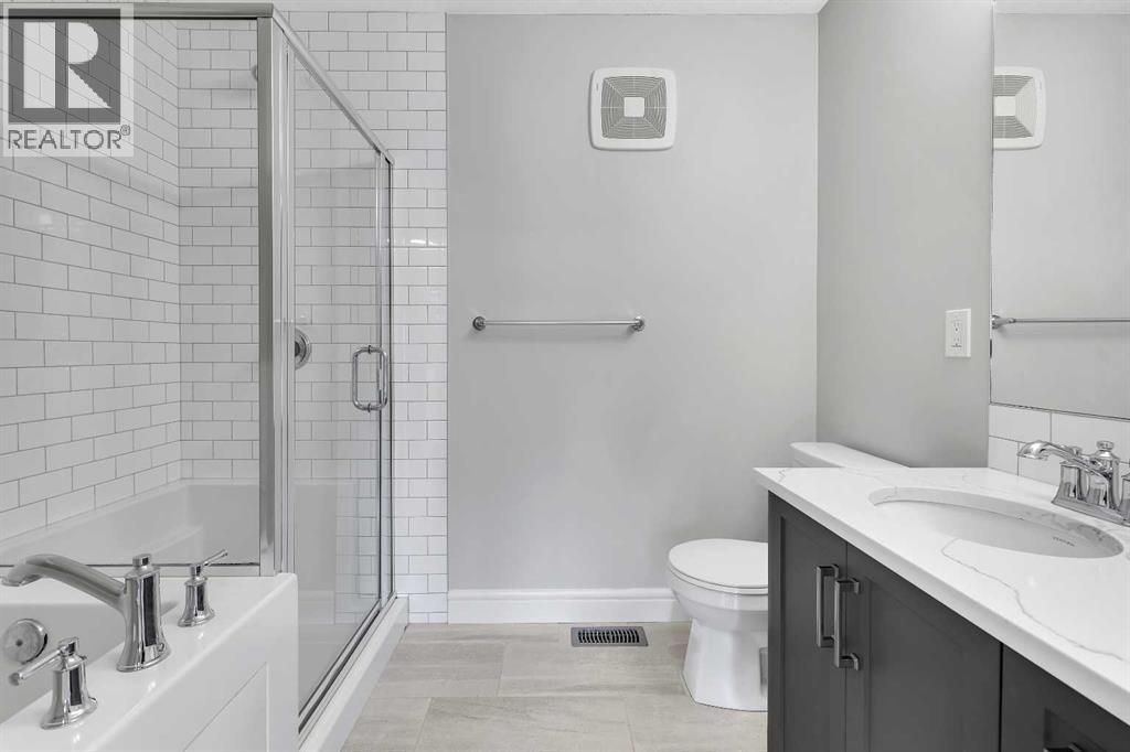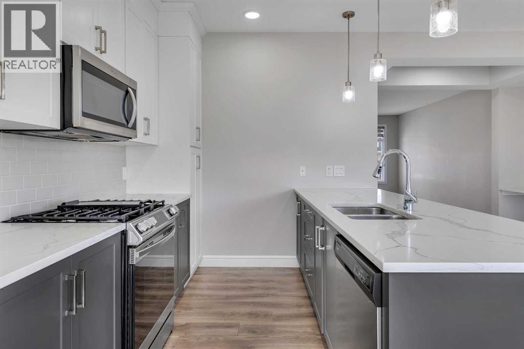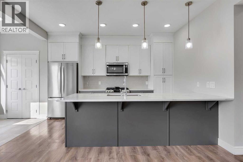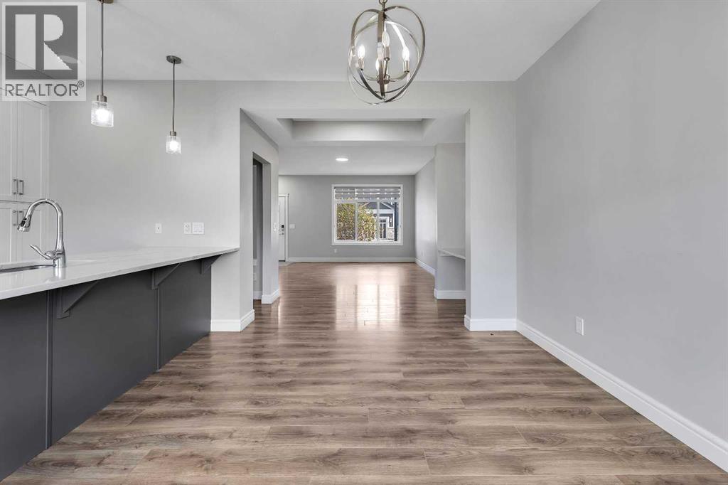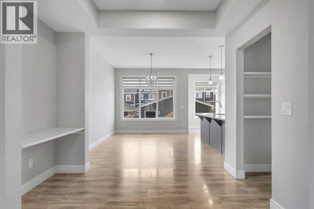 Welcome to 41 Sunrise Heights, Cochrane!This stunning family home is a must-see, offering a bright and cheerful atmosphere with thoughtfully chosen finishes throughout. From the moment you walk in, you’ll feel the warmth and comfort this home provides.At the heart of the home is the stylish kitchen, featuring quartz countertops, tall white upper cabinets paired with modern grey lowers, and a large flat island that blends beautifully into the overall design. The kitchen opens to a spacious dining room and a cozy breakfast nook—perfect for everyday family meals or entertaining guests. It’s the ideal gathering space, whether for quick weekday breakfasts or relaxed dinners with loved ones.The main floor is designed with family living in mind. A generous living room provides the perfect place to unwind, while the dining area includes a built-in desk—an ideal spot for kids to finish homework or for a convenient home office setup.Upstairs, you’ll find three well-appointed bedrooms. The primary suite is a true retreat, complete with a private ensuite that includes quartz counters, double sinks, a luxurious soaker tub, and a separate shower. The additional bedrooms are generously sized, making them perfect for children, guests, or flexible use such as a playroom or study.Step outside to discover a backyard that’s ready to be enjoyed. An oversized double detached garage offers secure parking, plenty of storage, and extra space for hobbies or a workshop. The outdoor area provides lots of room for kids to play, gardening, or hosting summer barbecues.Located just a few blocks from parks, walking paths, and biking trails, this home is ideally situated for families who love both comfort and an active lifestyle. (id:63190)