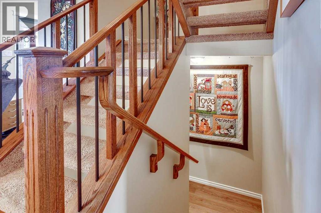 Welcome to Parkvale, a quiet mature location. Whether your looking to down size to a home with less maintenance, or may be getting ready to retire and looking for a home that is easy care with the park and trail system just steps away, all in a sought after neighborhood. This well maintained home has many upgrades over the years that your sure to enjoy. Spacious functional floor plan that is fully developed with 2 large bedrooms, 3 bathrooms, den and plenty of storage complete with built in shelving. Good size living and dining room overlooking the front yard and green space across the street. Upgrades include flooring through out, laminate, carpets, bathrooms, windows, interior doors, kitchen, cabinets, appliances, shingles and more. Spacious kitchen that has been totally upgraded with newer cabinets, soft close hardware, counter tops, backsplash, island with a swing appliance garage, pull out pantry and extra corner cabinets that finish of the kitchen. 2nd floor features 2 large bedrooms with laundry and lots of closet space. Main 4 Pc bathroom with fully tiled tub & shower. Basement offers a den area, 3PC bathroom and storage area with lots built in shelving. Enjoy the screened in rear porch and the private interlocking brick patio area. Beautifully landscaped back yard with a large single garage and a paved rear alley. No condo fees, no association fees, close to the bus stop, shopping and grocery store, library, recreation center, tennis courts and seniors Golden circle center. (id:63190)