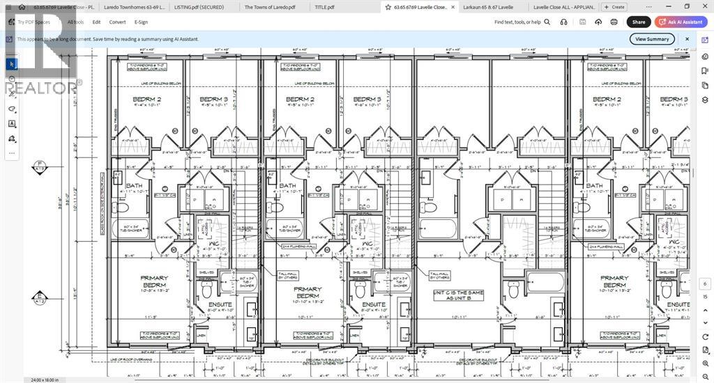 Brand new Larkaun Homes townhouse with a front attached garage! The curb appeal is complemented by the black triple pane windows and brick accents. The front entryway leads you to the tandem garage that features a walk in closet. Follow the stairs up to the second level where you will find an open style floor plan with luxury vinyl plank flooring. The kitchen features an eating bar island, quartz countertops, stainless steel appliances, soft close cabinets, full tile backsplash & a patio door out to the 16x12 rear sundeck with vinyl surface, aluminum railings and stairs down to the yard. There is a large eating area, a powder room and a living room with an electric fireplace. The third floor features 3 bedrooms, 2 bathrooms (with quartz and grouted vinyl tile) & upper floor laundry for your convenience. The king sized primary bedroom has a large walk in closet and a 5 piece ensuite with double sinks and a linen closet. Move in ready with the front/back sod and fully fenced. A fantastic location within steps from the path system and pond. (id:63190)