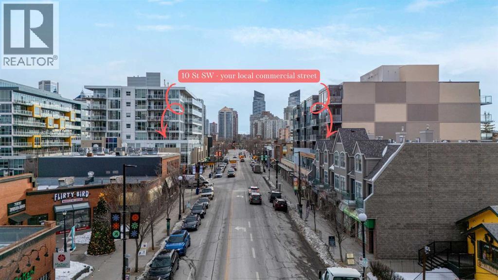 Welcome to urban sophistication in the heart of Sunnyside. This beautifully appointed single bedroom penthouse unit offers the perfect blend of modern design, functionality, and inner-city convenience. Step inside to discover soaring ceilings and expansive windows that flood the space with natural light, creating an open and airy atmosphere rarely found at this price point.The thoughtfully designed living area easily accommodates full-sized furnishings, making it ideal for both everyday living and entertaining. Clean contemporary finishes, warm flooring, and a neutral palette provide a timeless backdrop to suit any style. The open-concept layout flows seamlessly, maximizing space and comfort while maintaining a sense of separation where it matters. Be amazed by the near new condition, assigned storage locker, titled parking, wash bay in the parkade and workshop for your bike tune ups.Situated just steps from Kensington, Sunnyside LRT, boutique shops, cafés, and river pathways, this location offers effortless access to downtown Calgary while preserving a vibrant neighbourhood feel. Whether you’re a professional, downsizer, or investor, this home delivers exceptional value in one of Calgary’s most walkable and desirable communities. (id:63190)