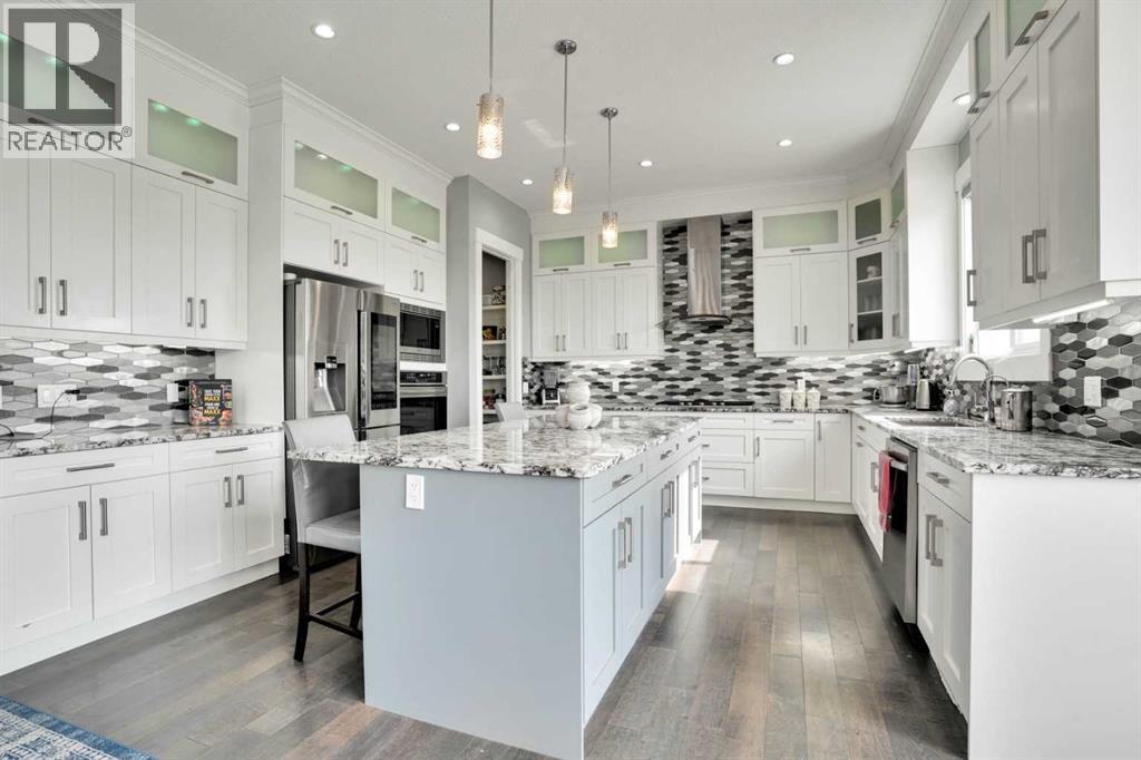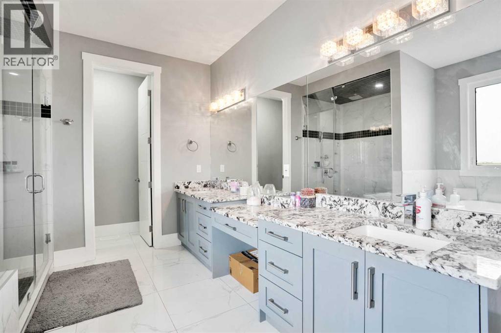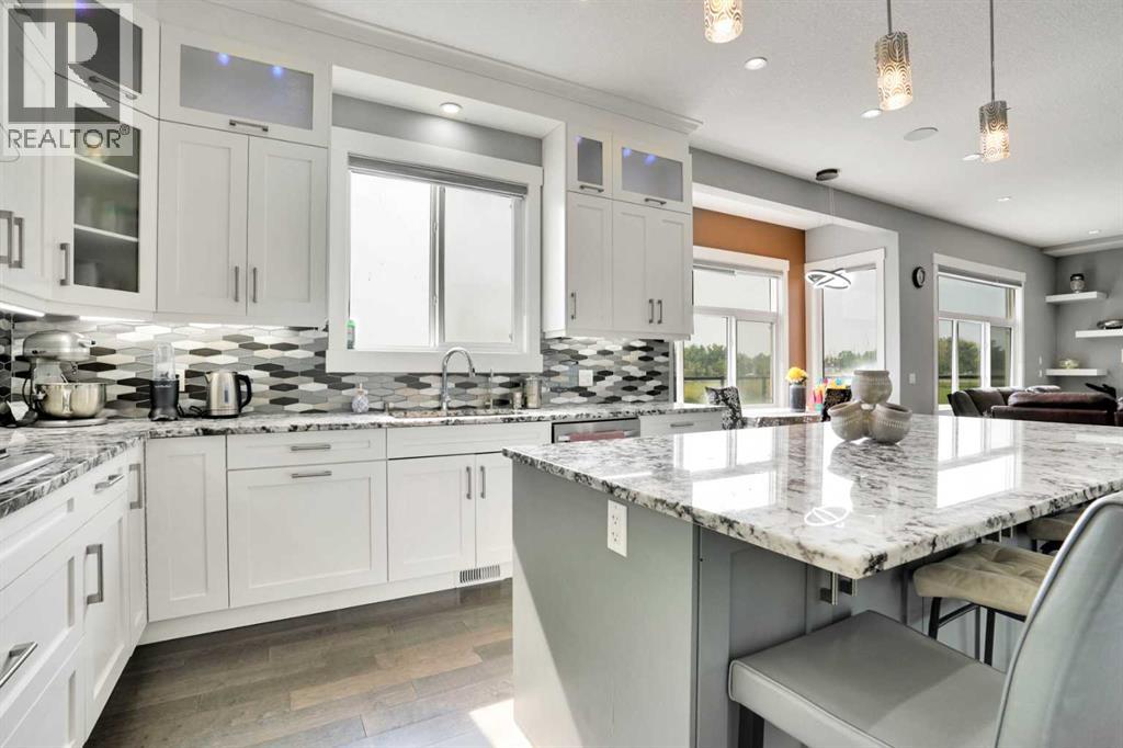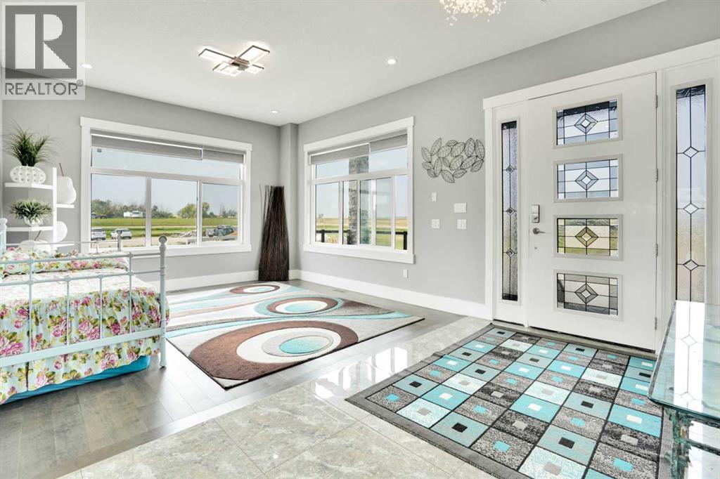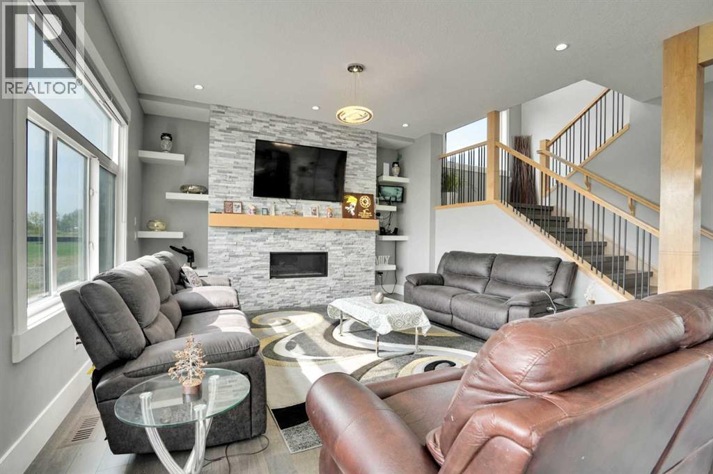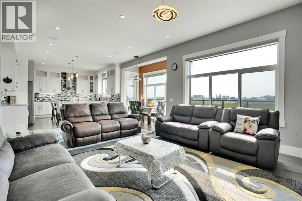 Refined Country Luxury Just Minutes from Chestermere. This 2021 custom-built estate delivers over 5,400 sq. ft. of exceptional craftsmanship across three levels on nearly 2 acres. Designed for Luxury, functionality and family living, it presents a striking two-storey exterior with terrace Balconies, dazzling stonework and an Oversized Heated Garage that accommodates 6+ vehicles. On the main level, a grand foyer opens into bright, welcoming spaces filled with large windows for Natural Light. The inviting family room features a cozy fireplace and flows into a stunning Chef’s kitchen with Granite Counters, a massive island, abundant cabinetry and a walk-in Pantry. A spacious Office that can be converted into a seventh bedroom sits next to a full bathroom, while a convenient mudroom off the garage keeps everything organized. A beautiful Deck off the kitchen – perfect for summer BBQs and entertaining. Upstairs are four generous bedrooms—each with its own ensuite, including two with Steam Showers, walk-in closets and private Balconies. A family room, flex space and convenient laundry complete this level. The primary Ensuite is a private retreat with a lavish 5-piece ensuite (granite counters, soaker tub, steam shower) and walk-in closet. The lower level is built for versatility and entertainment with a custom Wet Bar and full Media/Theatre room with washroom. The other side houses a fully self-contained 2-bedroom Legal suite complete with kitchen, bath, laundry and private entrance, while above-grade windows flood the entire level. The basement is equipped with in-floor heating for year-round comfort.with natural light. Car enthusiasts will appreciate the Attached, Heated, and Insulated garage—approximately 35’ x 74’ with high ceilings ready for a hoist, built-ins, and space for multiple vehicles. There’s even a dedicated hot-tub room already set up for your relaxation needs. Outdoors, the expansive grounds are ready for your vision—a sports court, pool, outdoor kitchen o r entertainment area. Smart-home features include Surround Sound, exterior Puck Lights, Security Cameras, and Dual high-efficiency furnaces. Situated in Rocky View County, this estate combines peaceful country living with urban convenience—just 5 minutes to Chestermere and a short drive to Calgary with quick access to Hwy 1, Stoney Trail, Deerfoot Trail and Glenmore Trail. (id:63190)