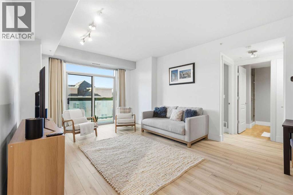Welcome this bright and spacious 2-bedroom, 2-bathroom condo on the sixth floor of Emerald Stone, offering comfort, convenience, and a prime location. The open-concept layout features 9 ft ceilings, beautiful hardwood flooring, and expansive south-facing windows that flood the space with natural light. The kitchen is both stylish and functional, complete with granite countertops, full-height cabinetry, and a convenient breakfast bar, perfect for casual dining or entertaining. The primary bedroom includes a double walk-through closet and a 4-piece ensuite, while the second bedroom sits adjacent to a 3-piece bath, making it ideal for guests or a home office. Enjoy year-round comfort with central air conditioning and the convenience of in-suite laundry. Step outside onto the sunny balcony, the perfect spot for afternoon drinks or evening BBQs. This unit also includes a titled underground parking stall with an assigned storage locker located directly in front of it. Residents of Emerald Stone enjoy access to additional amenities, including a fully equipped fitness center, recreation and party rooms, visitor parking, indoor bicycle storage, and a weekday concierge service. Located just steps from vibrant 17th Avenue, you’ll be surrounded by trendy shops, restaurants, and nightlife, with the downtown core and several inner-city parks only a short walk away. If you’re looking for modern city living in a fantastic location, this condo is the perfect fit. Don’t miss your chance to make Emerald Stone your home! Book your showing today! (id:63190)