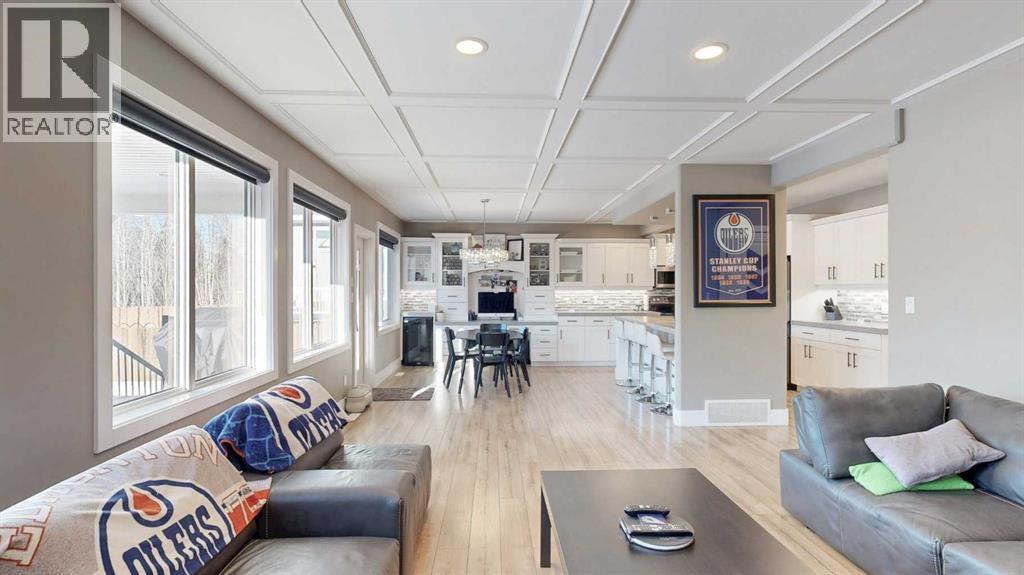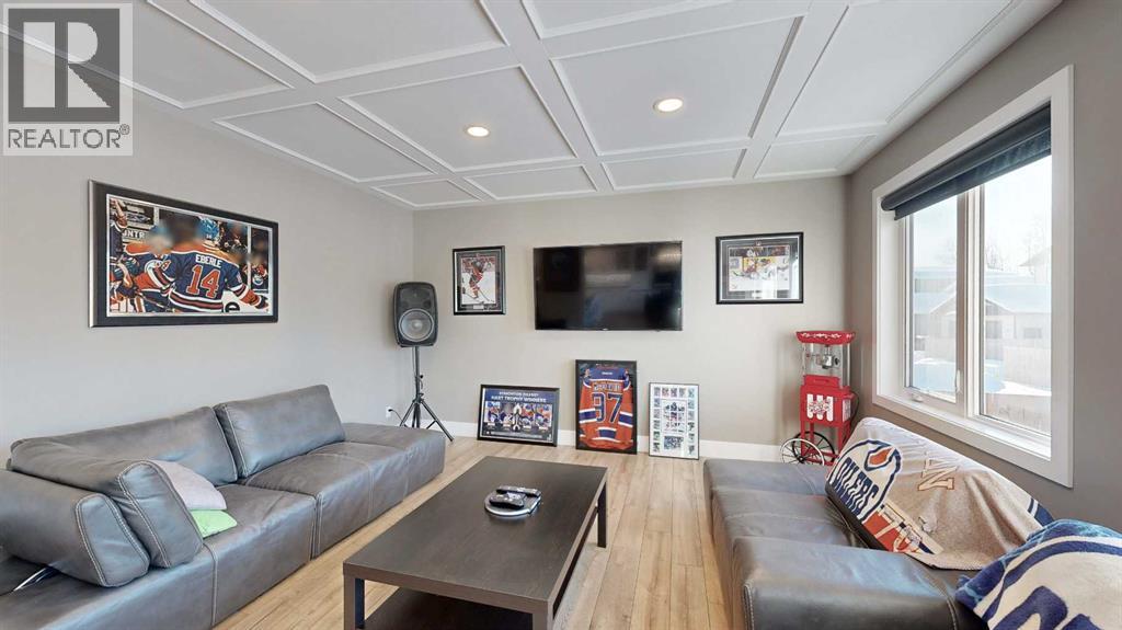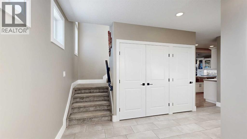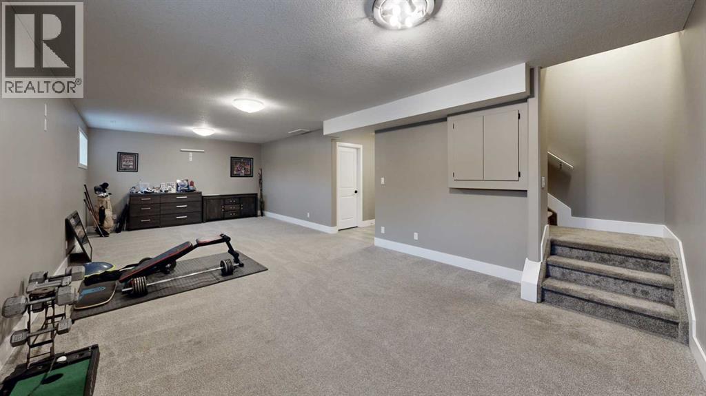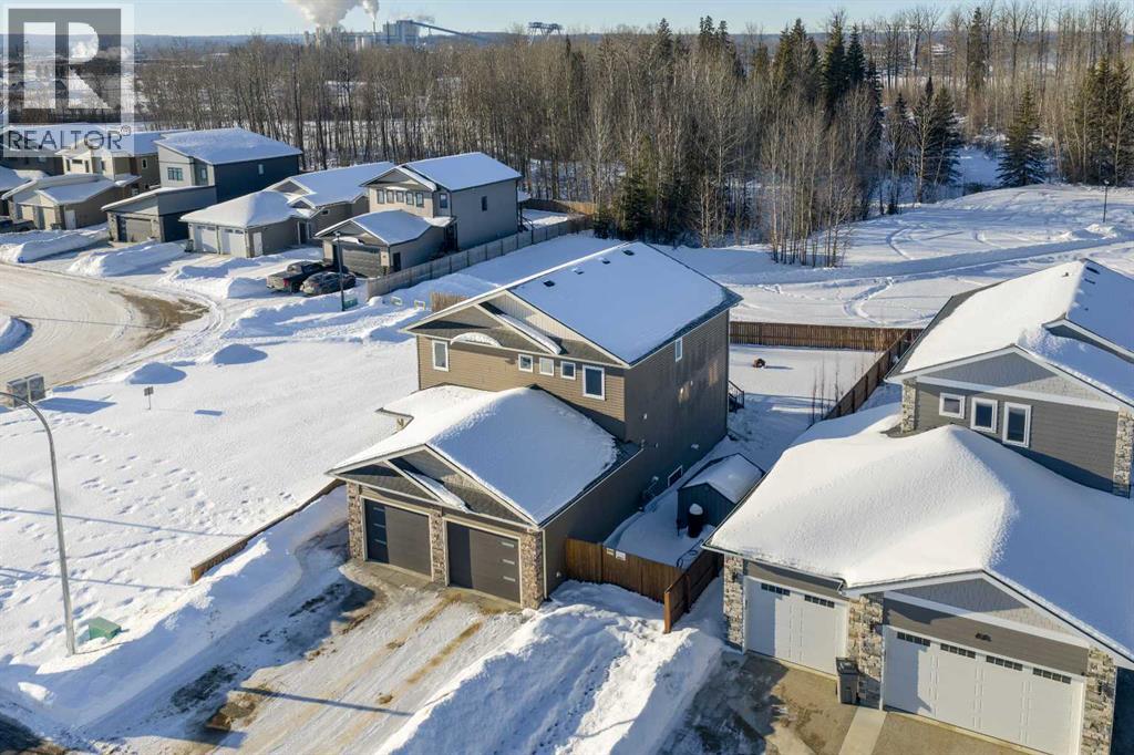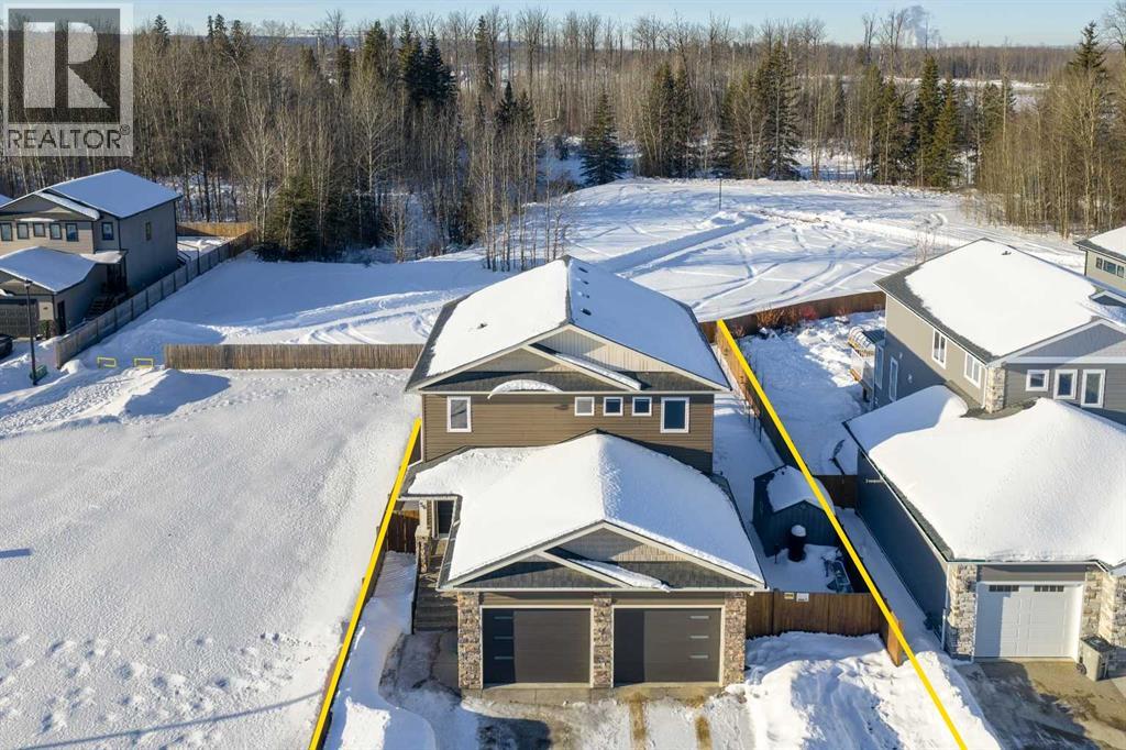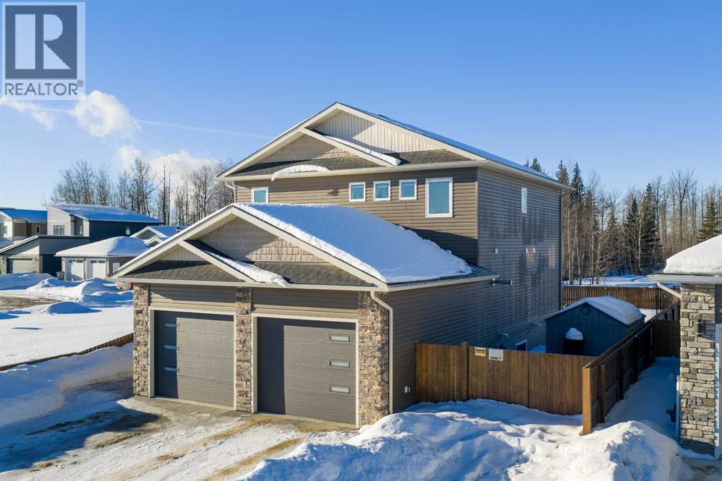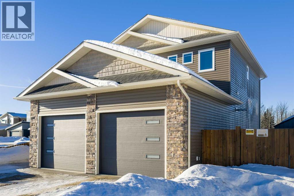 Park Lot! You’ll love this incredible location backing directly onto Rotary Park. This well-designed 2-storey home offers a fantastic open floor plan and over 3,000 sq. ft. of developed living space across all three levels.The spacious kitchen is beautifully finished with custom cabinetry, quartz countertops, under-cabinet lighting, and a pantry, making it perfect for both everyday living and entertaining. Just off the kitchen, step onto the 16’ x 12’ covered, maintenance-free deck featuring exposed aggregate and aluminum railings, ideal for year-round barbecuing and outdoor enjoyment. A convenient 2-piece bathroom completes the main level.Upstairs, you’ll find three bedrooms, two full bathrooms, and upper-level laundry, a layout designed with everyday convenience in mind. The primary ensuite features a 6-foot tub, separate shower, dual sinks, and a must-see walk-in closet with custom built-in cabinetry.The 26’ x 26’ heated garage offers excellent space, and the exterior is fully upgraded with an exposed aggregate driveway, front step, sidewalk, and town-approved RV parking beside the home. The yard is fully fenced.The finished basement adds even more living space with a fourth bedroom, an additional bathroom, and room to easily add a fifth bedroom if desired.This home truly has it all. (id:63190)