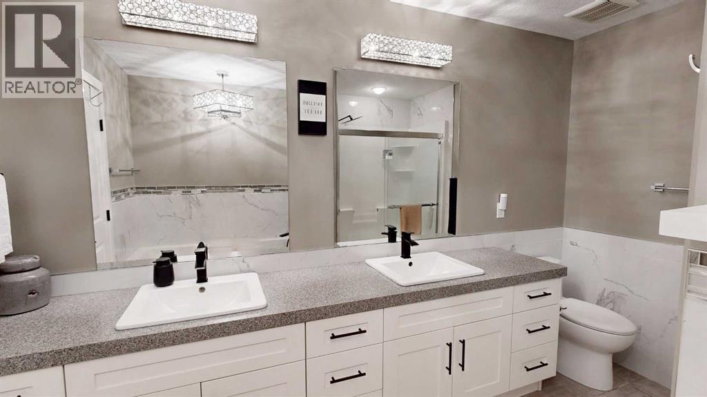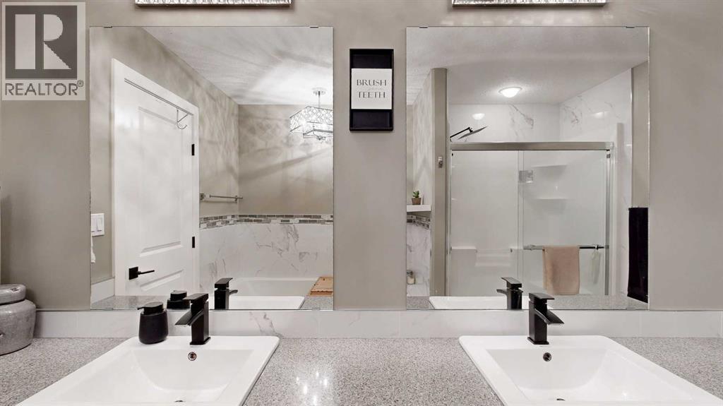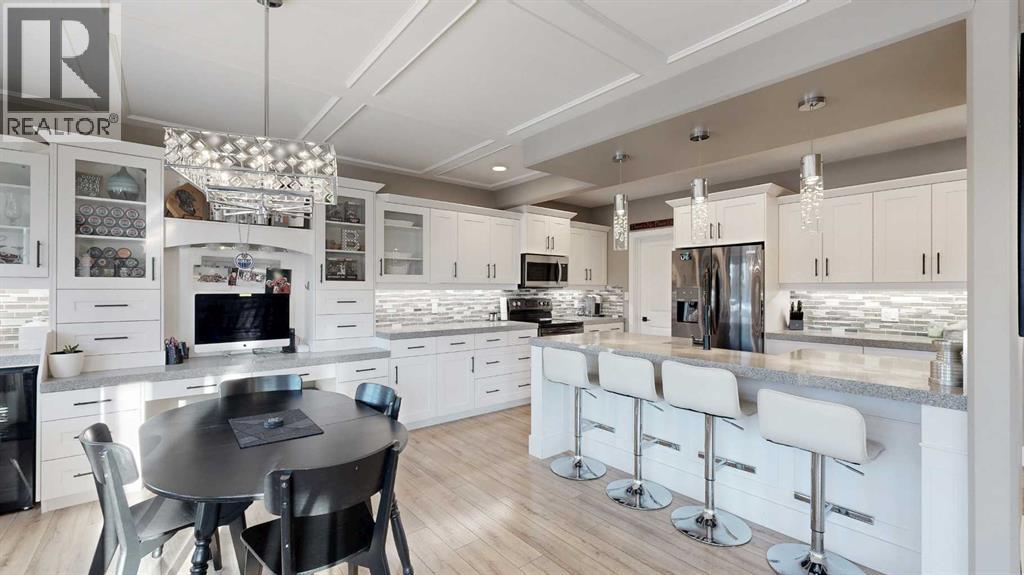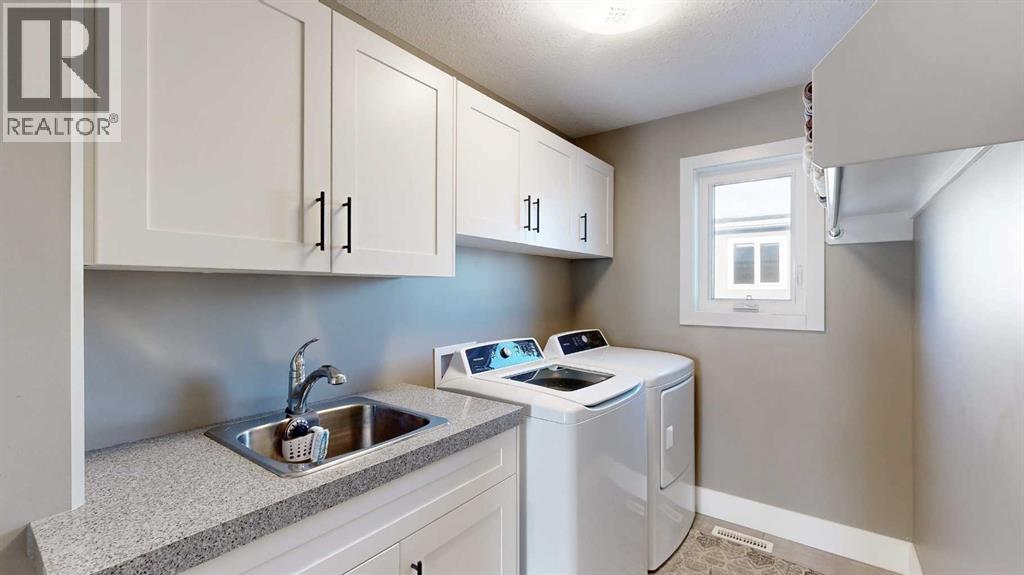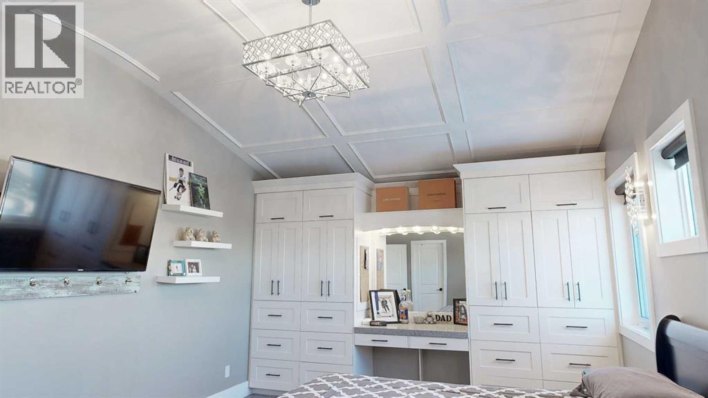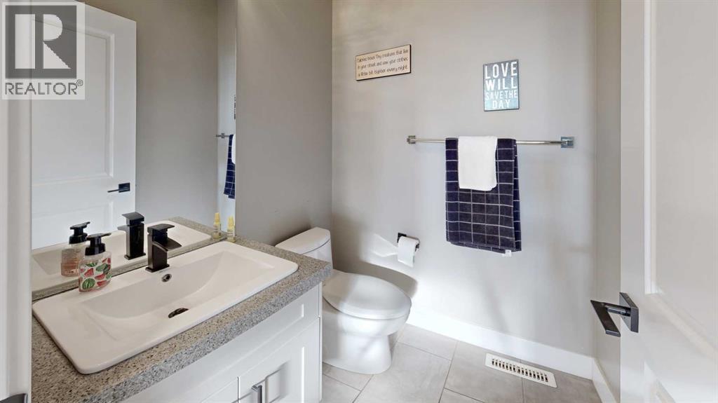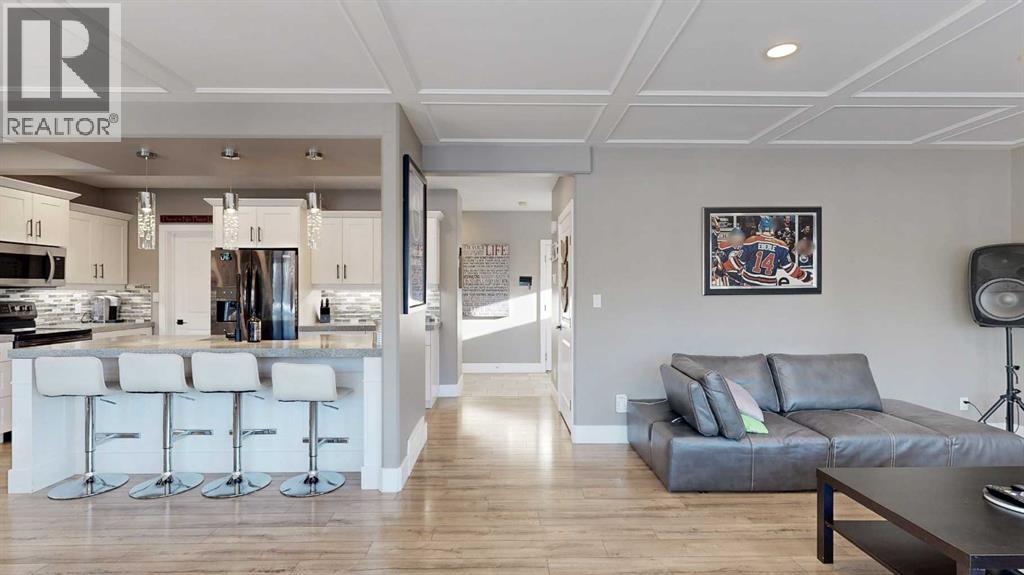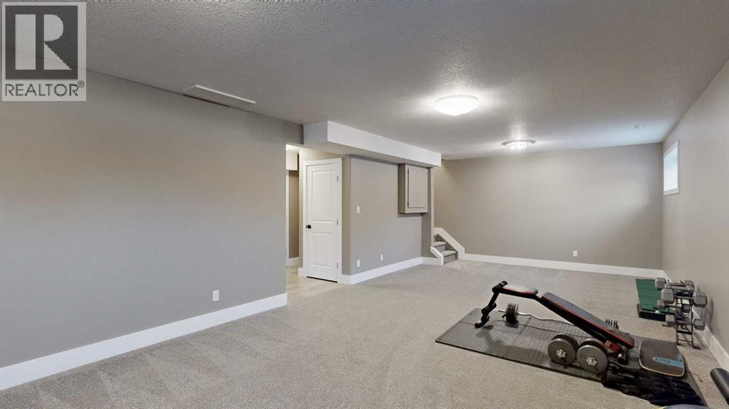 Park Lot! You’ll love this incredible location backing directly onto Rotary Park. This well-designed 2-storey home offers a fantastic open floor plan and over 3,000 sq. ft. of developed living space across all three levels.The spacious kitchen is beautifully finished with custom cabinetry, quartz countertops, under-cabinet lighting, and a pantry, making it perfect for both everyday living and entertaining. Just off the kitchen, step onto the 16’ x 12’ covered, maintenance-free deck featuring exposed aggregate and aluminum railings, ideal for year-round barbecuing and outdoor enjoyment. A convenient 2-piece bathroom completes the main level.Upstairs, you’ll find three bedrooms, two full bathrooms, and upper-level laundry, a layout designed with everyday convenience in mind. The primary ensuite features a 6-foot tub, separate shower, dual sinks, and a must-see walk-in closet with custom built-in cabinetry.The 26’ x 26’ heated garage offers excellent space, and the exterior is fully upgraded with an exposed aggregate driveway, front step, sidewalk, and town-approved RV parking beside the home. The yard is fully fenced.The finished basement adds even more living space with a fourth bedroom, an additional bathroom, and room to easily add a fifth bedroom if desired.This home truly has it all. (id:63190)