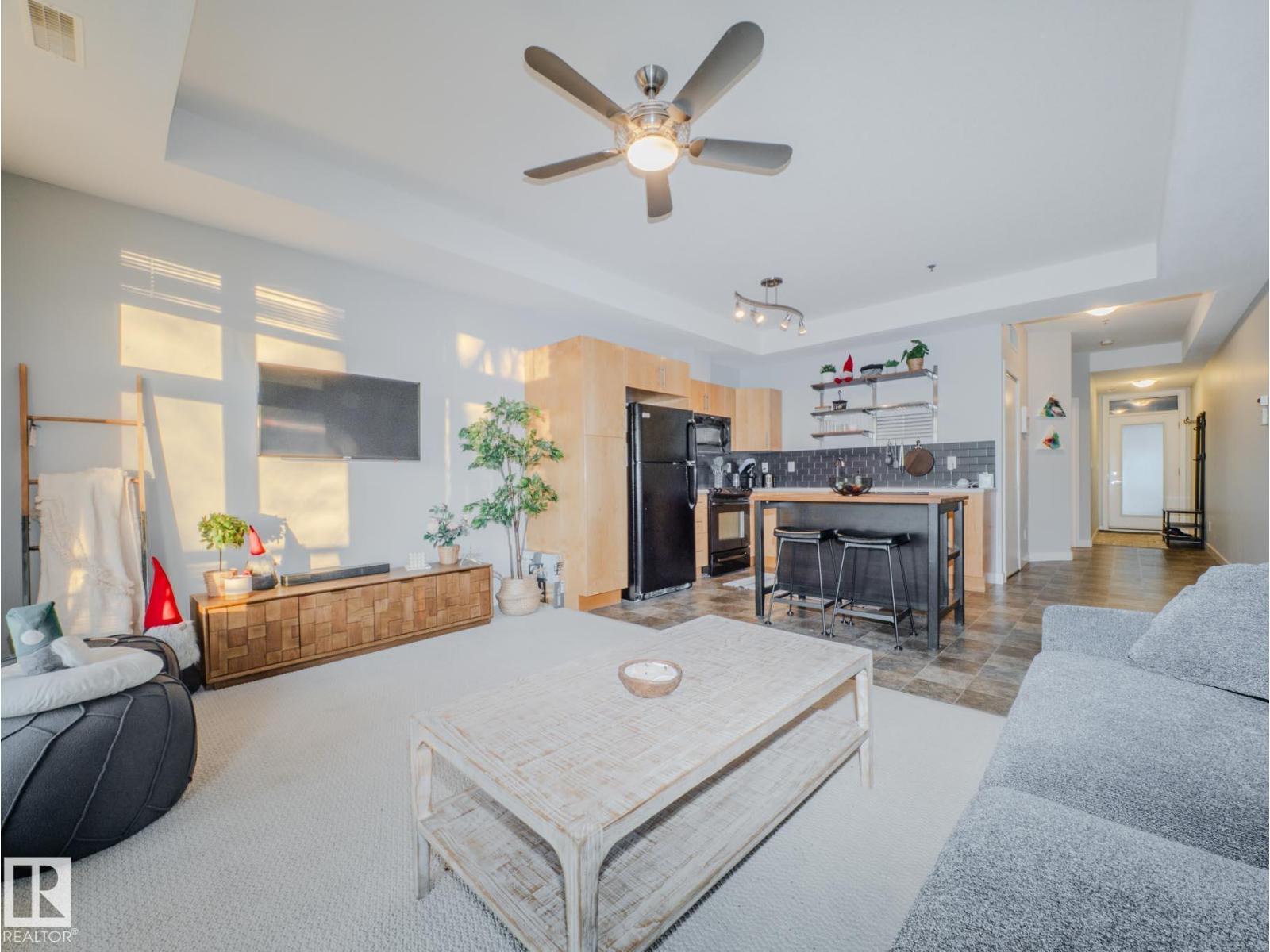 THIS IS SUCH A COOL BUILDING...ALMOST 700 SQ FT....THIS IS A LIFE STYLE...ATTN STUDENTS/PROFESSIONALS...~!WELCOME HOME!~ This 1 bed/1 bath condo in the highly sought-after Brownstones II sits on the 3rd floor and delivers 650 sq. ft. of smart, functional space—perfect for students, first-time buyers, or young professionals who want to be close to everything. The open-concept layout features a bright living room with floor-to-ceiling windows, plus patio access for some fresh air and sunshine. The kitchen brings the style with great cabinet space, open shelving, and a sleek black subway tile backsplash. You’ll also love the in-suite laundry, a clean 4-piece bathroom, and a spacious bedroom with a mirrored double closet. This professionally managed building includes a gated courtyard, elevator, and assigned parking. Walkable, central, and dialed-in for lifestyle—minutes to U of A, transit, McKernan/Belgravia LRT, and just blocks from Whyte Ave, 109 Street, University Ave++ (id:63190)