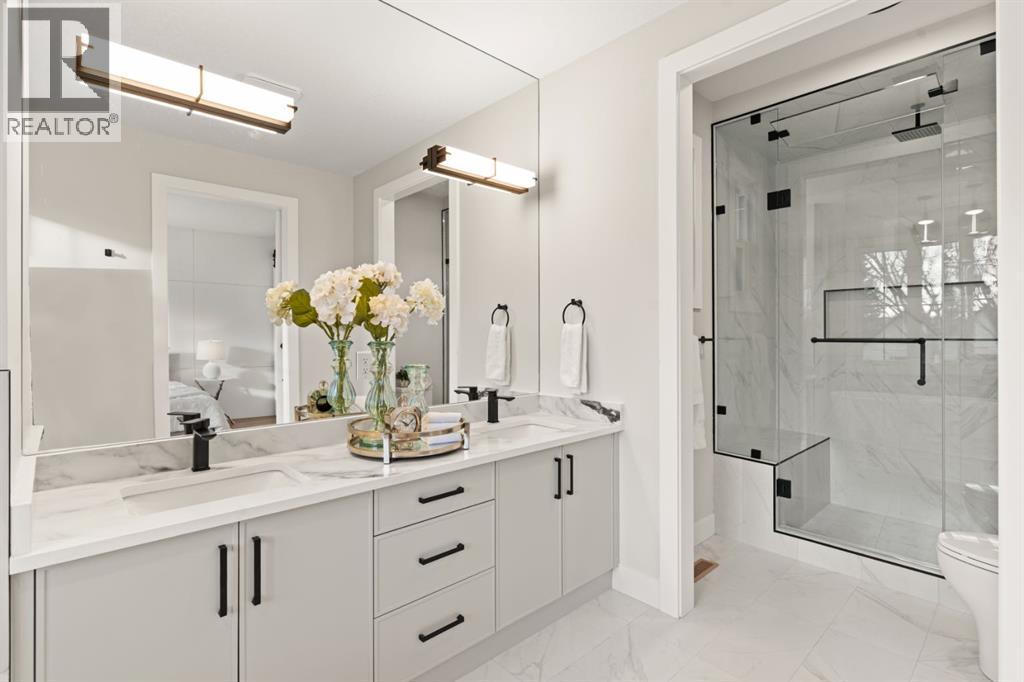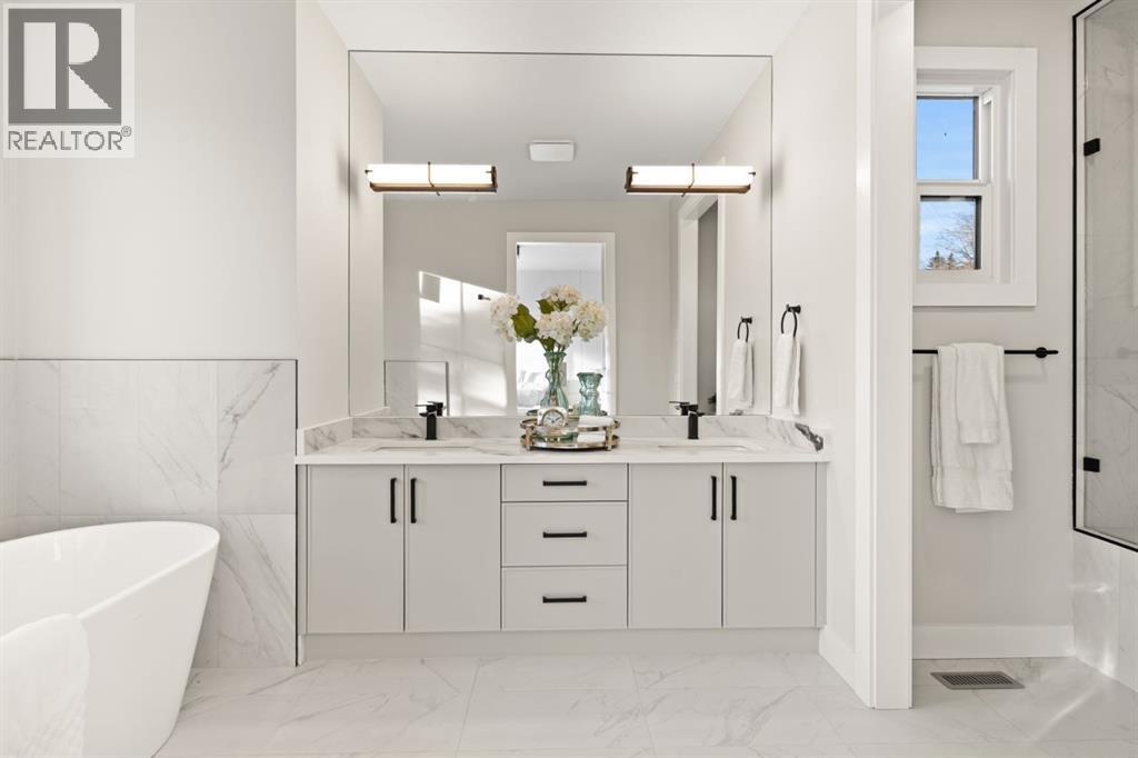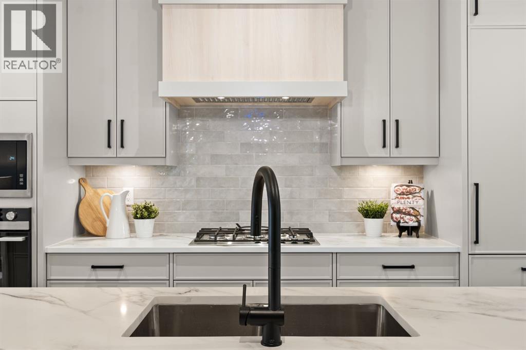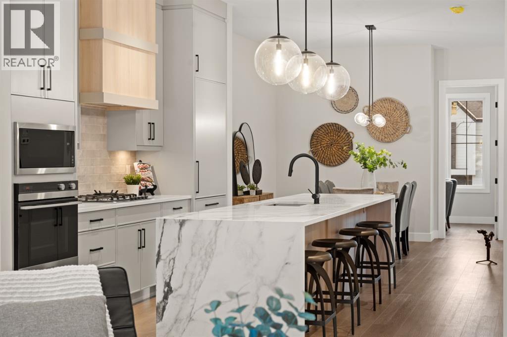 A rare offering in West Hillhurst, this brand-new semi-detached home features a highly sought-after front attached double garage and backs directly onto tranquil greenspace. Spanning over 2,200 square feet, the home offers four bedrooms and three and a half bathrooms with a layout designed for both luxury and functionality. The main floor is bright and thoughtfully designed, highlighted by a front-facing south-exposed office with oversized windows that flood the space with natural light, ideal for working from home. The open living and dining areas are anchored by a chef-inspired kitchen with premium appliances, custom cabinetry, and an oversized island, while folding patio doors off the living room seamlessly open to a large rear deck overlooking the greenspace, creating an exceptional indoor-outdoor living experience. Upstairs, the south-exposed primary retreat is filled with natural light and features a spa-like ensuite, walk-in closet, and a private balcony, while two additional bedrooms, a full bathroom, upper-level laundry, and a versatile loft space complete the second level. The fully developed lower level adds even more living space with a generous recreation room, fourth bedroom, and full bath. Ideally located steps from parks, river pathways, schools, and the vibrant amenities of Kensington, with quick access to downtown, the University of Calgary, SAIT, and Foothills Hospital, this home delivers a rare combination of luxury, light-filled design, and an exceptional inner-city lifestyle. Call today to book your tour! (id:63190)
