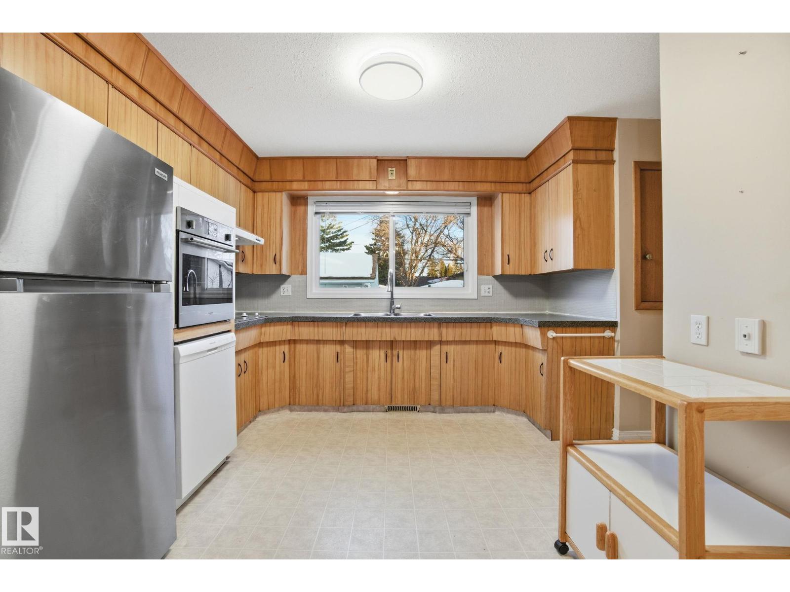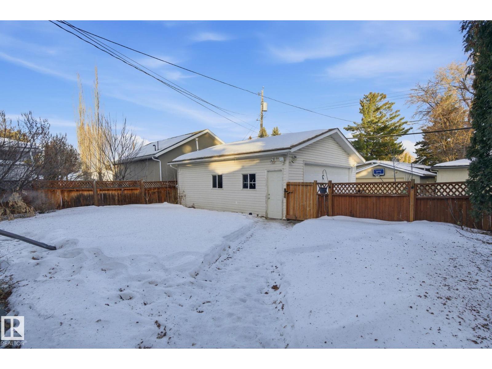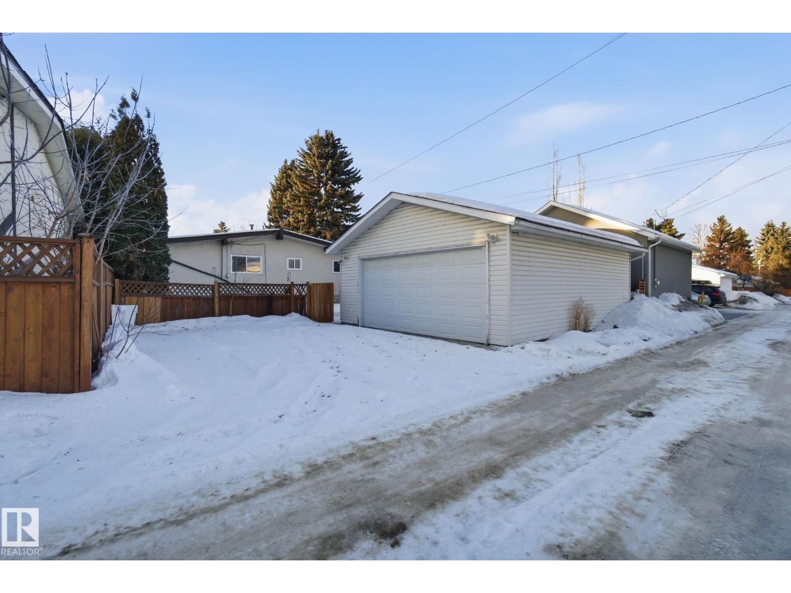Welcome to this well cared for bungalow just steps from Westbrook School and surrounded by mature trees and established homes. This spacious property offers 3 bedrooms on the main floor and 2 additional bedrooms in the fully developed basement, making it ideal for families, multi generational living, or investment opportunities. The basement features a summer kitchen and wet bar with a private entrance, providing excellent flexibility for extended family. Numerous upgrades have been completed over the years, including updated appliances, LED lighting, 100 amp electrical service, shingles on the garage, vinyl plank flooring in the basement and a newer motor on the HE furnace. Situated on a large lot, the property also boasts an oversized heated garage with 220V power. A rare opportunity to enter one of Edmonton’s most sought after neighborhoods, whether you are an investor or a discerning buyer looking for space, location, and long term value. Some photos are virtually staged. (id:63190)