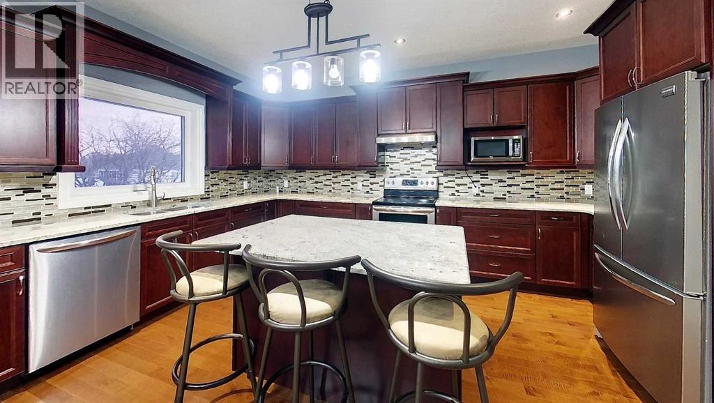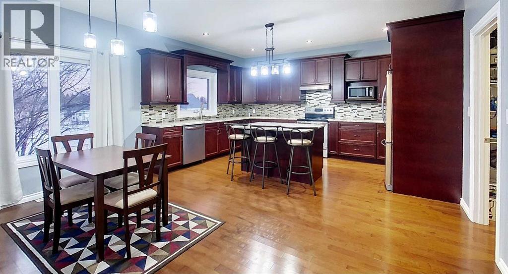 Stunning 4-Bed, 4.5-Bath Bungalow on Huge 17,114 sq ft Lot! Custom-built in 2016, this bright and spacious home features a dream kitchen with granite counters, soft-close cabinets, island, walk-through pantry, and stainless appliances. Main floor offers gleaming hardwood floors, large primary with 5-pc ensuite & walk-in closet, second bedroom, 2-pc bath, laundry, and deck overlooking a private, treed backyard. Walk-out basement includes 2 more bedrooms (one second master with ensuite), family & dining rooms, full kitchen, private entrance, roughed-in for laundry, AC, and potential legal suite. High-end features include in-floor basement & garage heat, oversized double garage, Hardy plank siding, composite decking, hot water on demand, high-efficiency furnace, RV parking, and paved driveway. No carpet. Vacant lot next door available—bundle for a great deal! (id:63190)