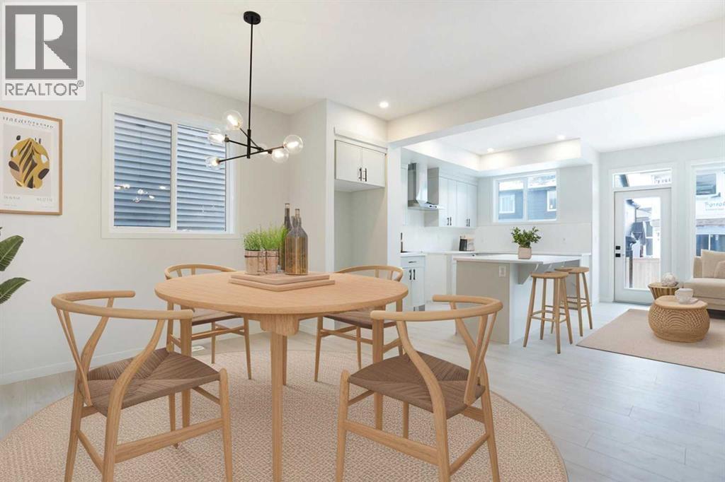 Welcome to this beautifully designed Morrison Homes Dillon I model, a striking two-storey semi-attached home is situated in the highly desirable and rapidly growing community of Sirocco at Pine Creek. Offering over 1,600 sq. ft. of thoughtfully finished living space above grade, this home combines modern elegance with practical design, complemented by a front-attached double garage and an intelligently planned layout that effortlessly balances style, comfort, and everyday functionality for families of all sizes.The main floor is designed for both entertaining and everyday living, featuring an open-concept layout bathed in natural light, highlighted by light grey luxury vinyl plank flooring that flows seamlessly throughout. The contemporary kitchen is a true centerpiece, equipped with sleek grey cabinetry accented with black hardware, quartz countertops, and a generous central island—perfect for meal preparation, casual dining, or social gatherings. Stainless steel appliances complete the kitchen, while the adjacent dining and living areas are enhanced by a striking grey tile feature wall with an electric fireplace, creating a warm, inviting, and modern focal point that effortlessly blends style and function.A thoughtfully designed mudroom with built-in cabinetry and storage provides a seamless transition from the garage, keeping everyday essentials organized and accessible. The main floor is completed with a convenient powder room, offering both practicality and style for family life and entertaining.Upstairs, the home continues to impress with three well-appointed bedrooms, including a private primary suite designed for comfort and relaxation. This retreat features a spacious walk-in closet and a beautifully finished ensuite bathroom with tiled flooring and a contemporary glass shower enclosure, offering a spa-like experience in the comfort of your own home. Two additional bedrooms are generously sized and share a full bathroom, also finished with high-qualit y modern tile. Top-floor laundry adds convenience to your daily routine, while soft carpeting throughout the upper level enhances comfort and warmth throughout the private spaces.The unfinished basement presents an exceptional opportunity for future development, providing a versatile blank canvas where additional living space, recreational areas, or extra bedrooms can be tailored to suit your family’s evolving needs and lifestyle preferences.Situated in a vibrant and growing southwest community with easy access to parks, walking and cycling pathways, local schools, and future amenities, this home combines thoughtful design, modern finishes, and long-term flexibility. From the stylish interiors to the functional layout and prime location, the Dillon I model at 49 Creekside Passage is a home that truly delivers a refined balance of comfort, elegance, and enduring value for discerning buyers seeking both quality and lifestyle. (id:63190)