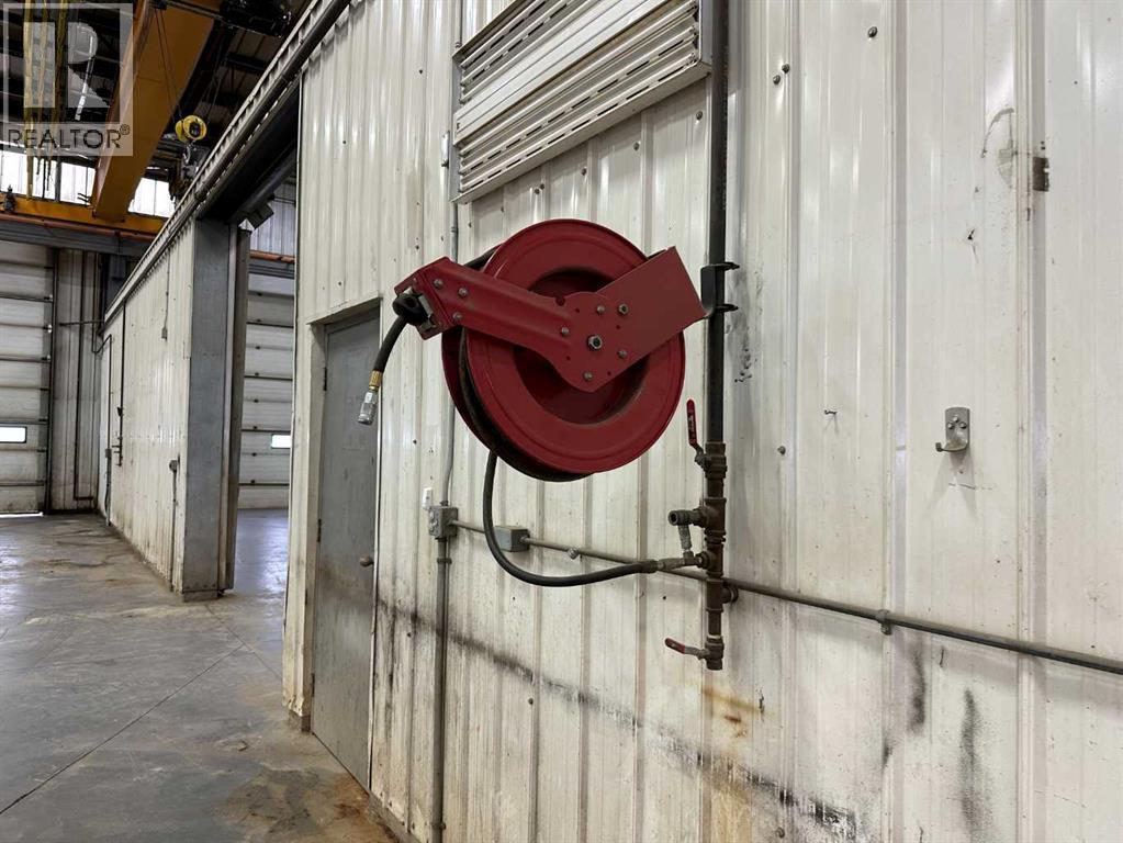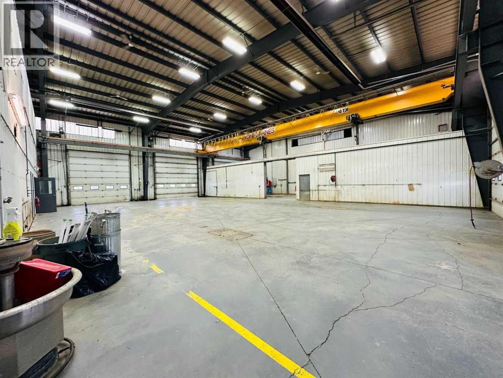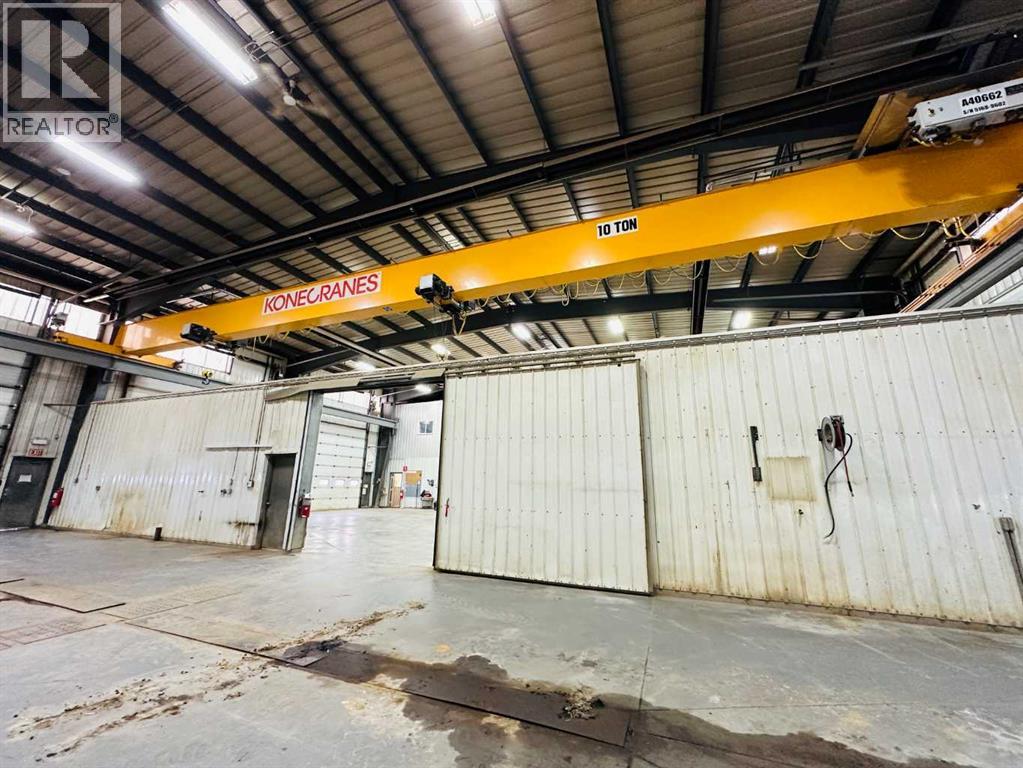 Almost 8 Acres and 4 drive through shop bays and a 10 ton crane on busy highway 2 all for a fraction of replacement cost.3 bays have 18’x18’ automatic overhead doors and 1 bay has 16’ x 16’ doors. Bays are 83’ deep with floor drains. One bay is setup as a wash bay with a Hotsy. The 10 ton crane is useable in 3 of the bays. Building also comes with a compressor and multiple air lines ran. 400 Amps of 3 phase power+ hitching rail with power. Main floor features reception and 2 offices,2 bathrooms (1 with shower) and a kitchen. Upstairs office is developed with 4 offices a boardroom/kitchen. Offices also have AC. The property is made up 7.9 Acres of well graveled and fenced yard site.Base Rent is $11,551.83 plus Additional Rent of $2853.83 for a Total of $14,405.66 plus GST. Also Available for Sale MLS# A2280546 (id:63190)