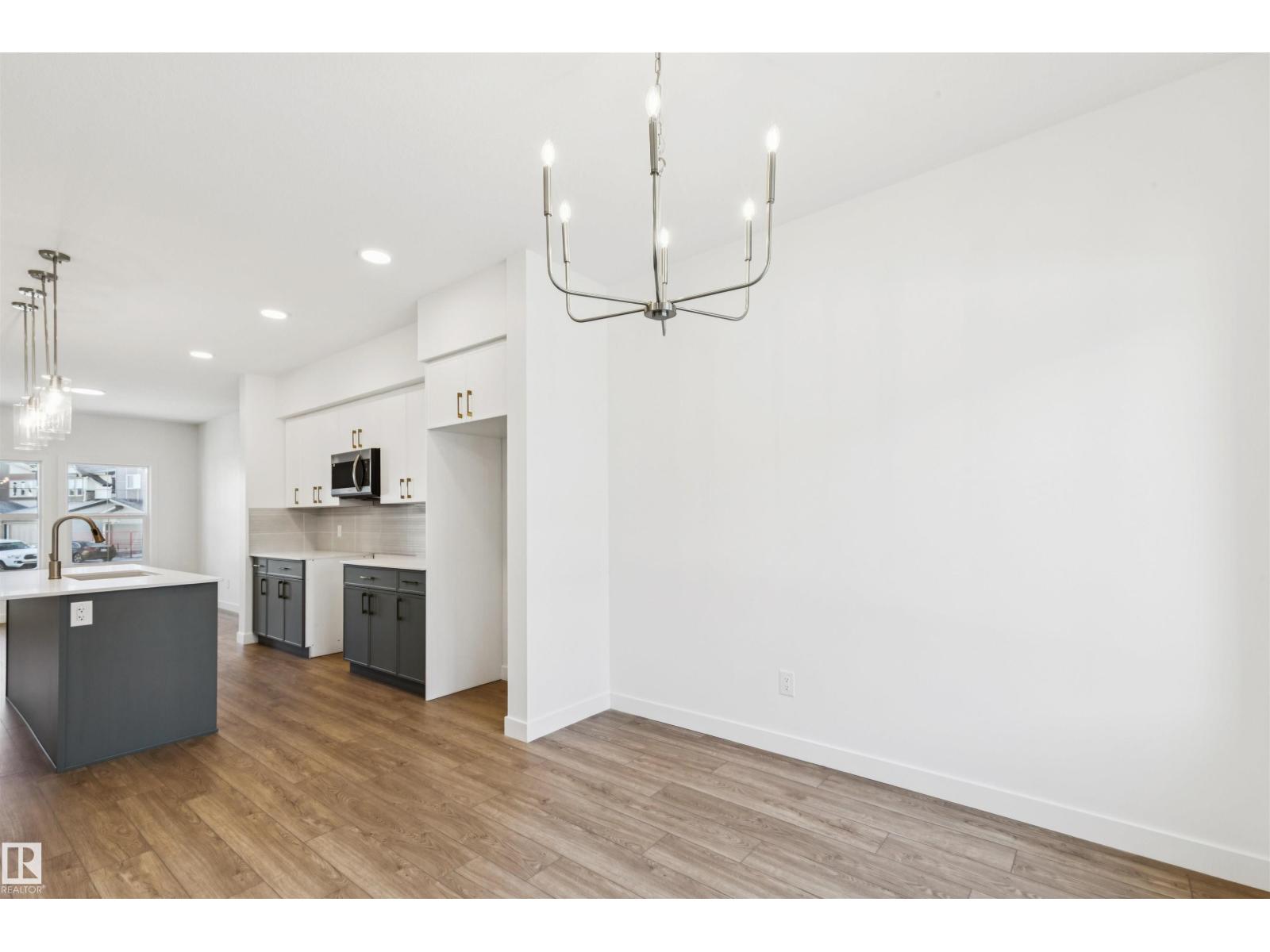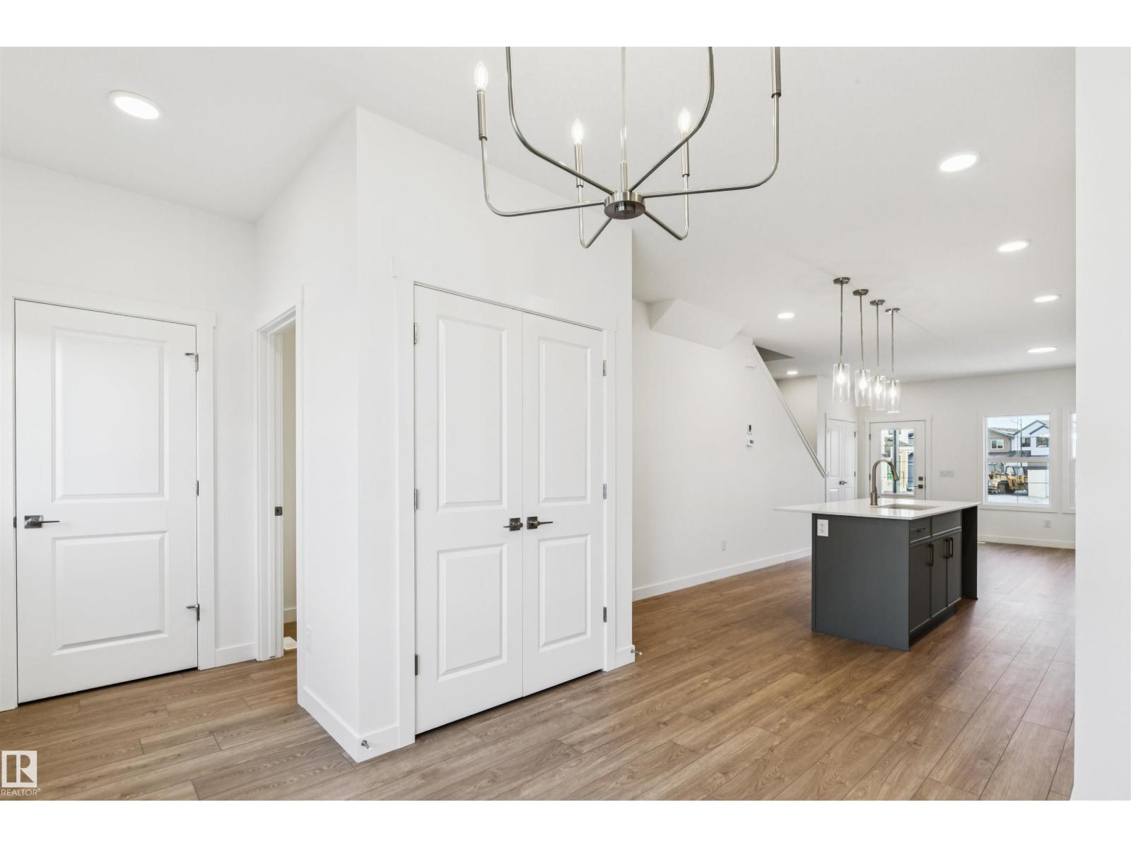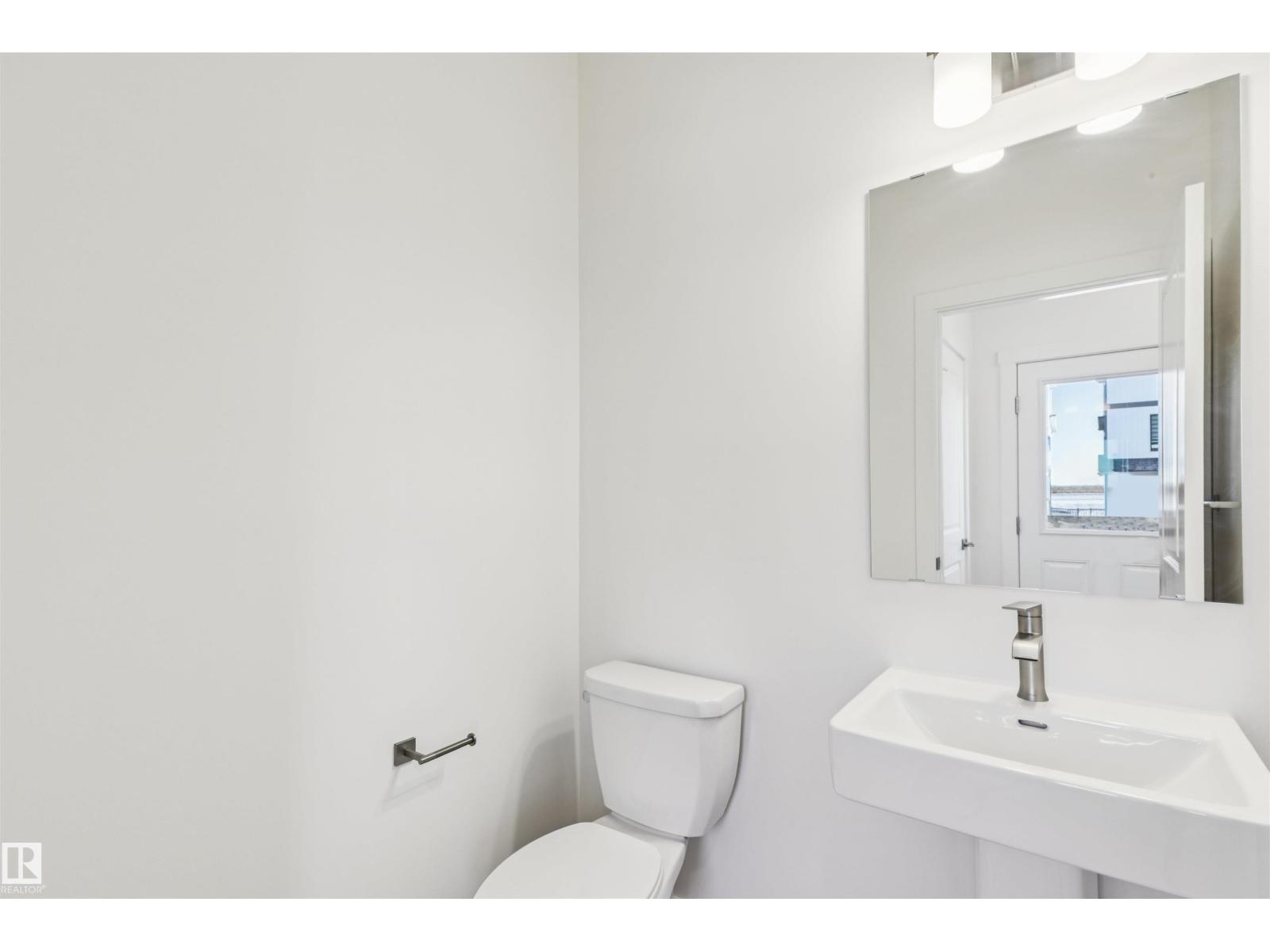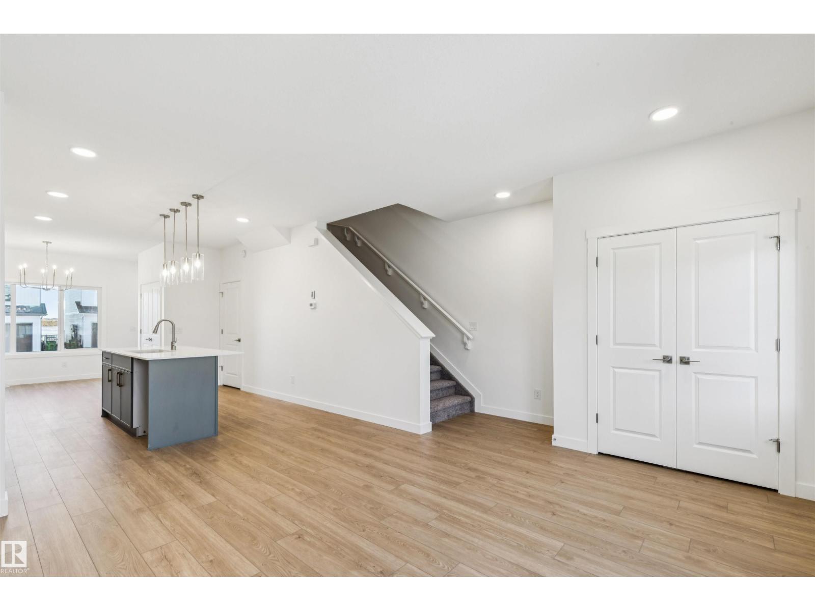 The Stellar combines modern design with everyday functionality in a bright, thoughtfully planned layout. The main floor showcases luxury vinyl plank flooring throughout, a welcoming foyer with coat closet, and a sun-filled great room framed by a large front window. At the heart of the home, the kitchen features quartz countertops, an undermount composite sink, a central island with eating ledge, profiled Thermofoil cabinetry, and a generous pantry. The rear dining area enjoys views of the backyard, while a conveniently placed powder room and back entry lead to a spacious yard and parking pad. Upstairs offers an open loft, a primary suite with walk-in closet and 3-piece ensuite with tub/shower, plus two additional bedrooms, a main 3-piece bath, and stackable laundry closet. This home includes 9’ ceilings on the main and basement, a separate side entrance, basement rough-in plumbing, and upgraded brushed nickel fixtures. (id:63190)
