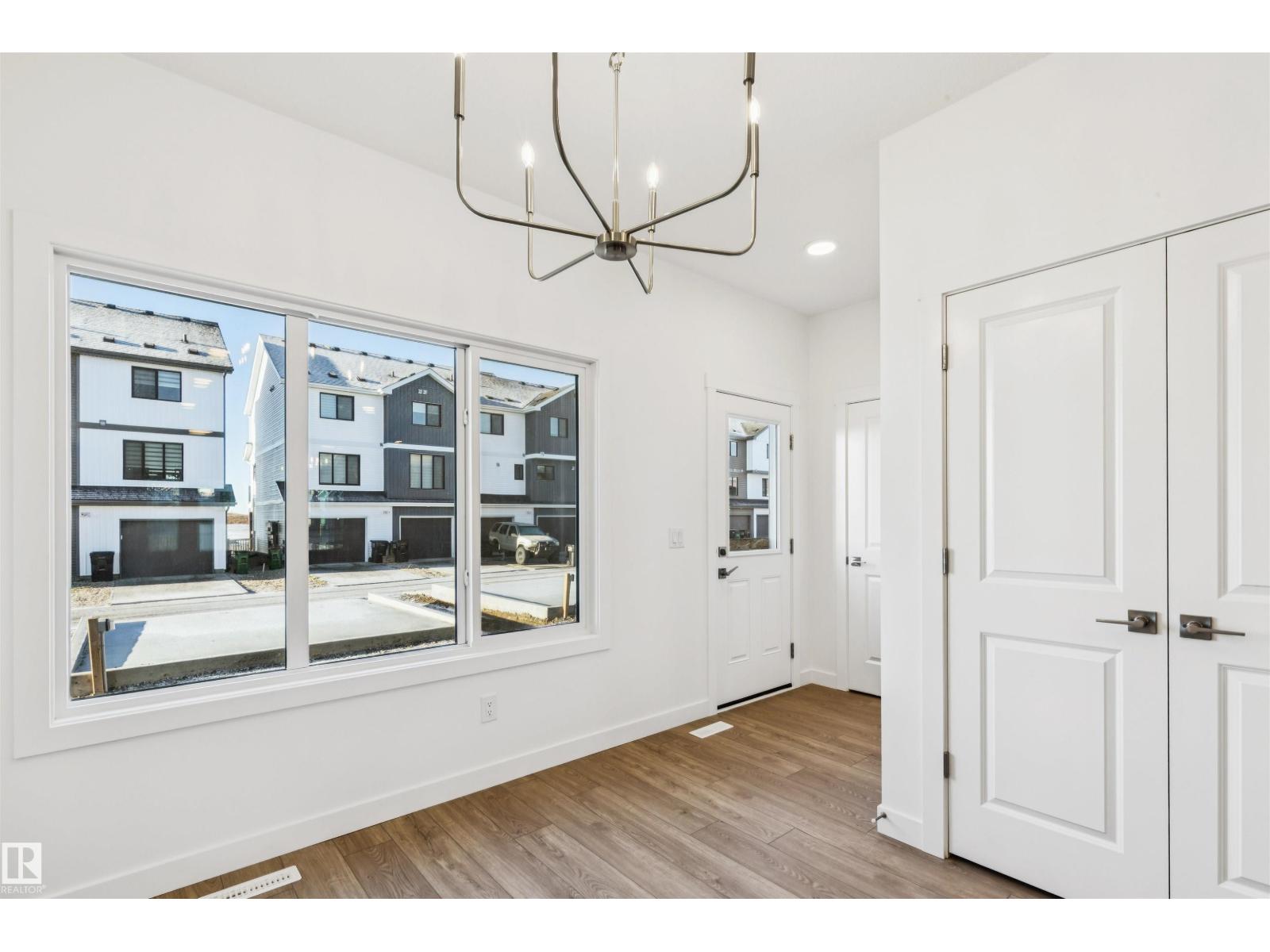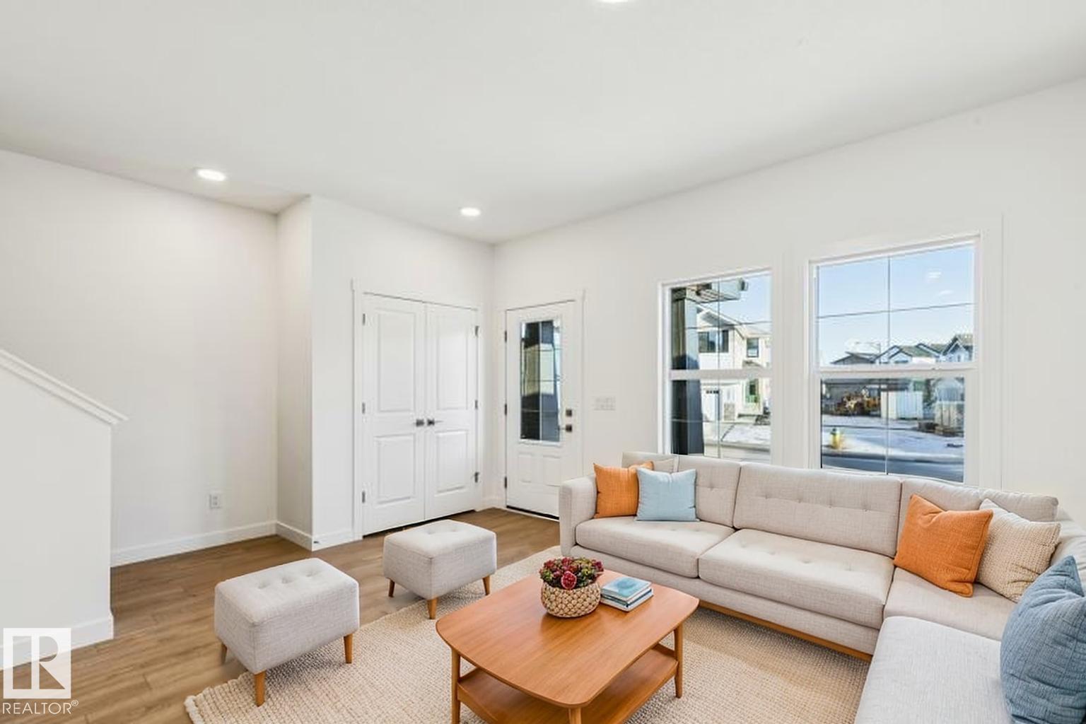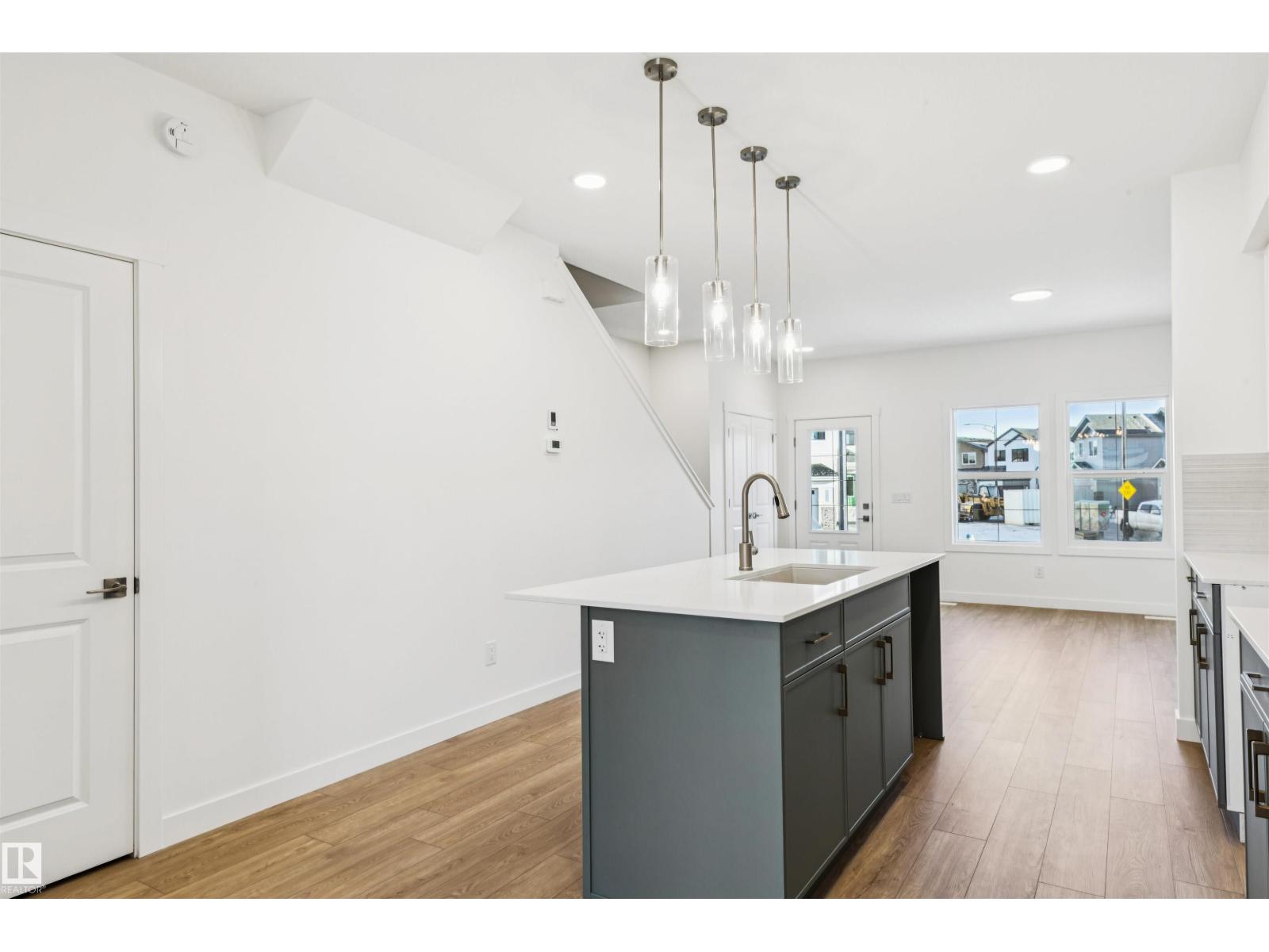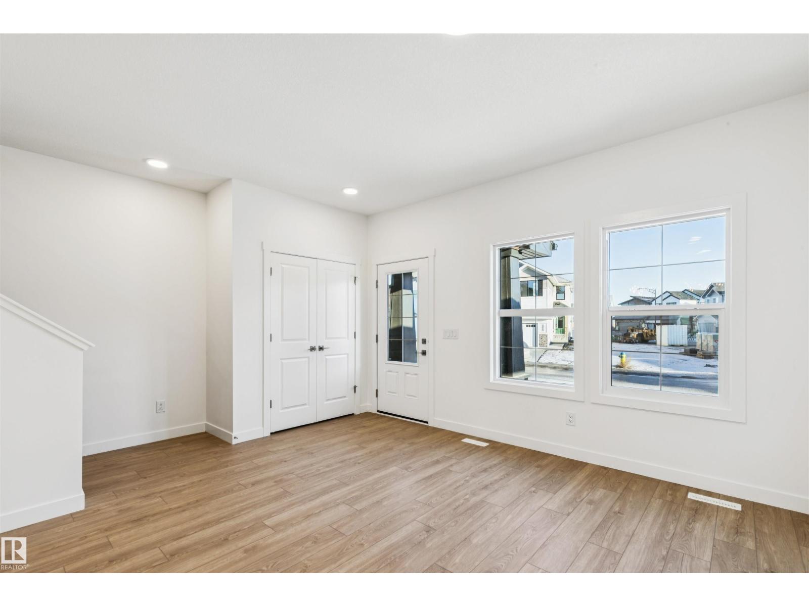 The Stellar combines modern design with everyday functionality in a bright, thoughtfully planned layout. The main floor showcases luxury vinyl plank flooring throughout, a welcoming foyer with coat closet, and a sun-filled great room framed by a large front window. At the heart of the home, the kitchen features quartz countertops, an undermount composite sink, a central island with eating ledge, profiled Thermofoil cabinetry, and a generous pantry. The rear dining area enjoys views of the backyard, while a conveniently placed powder room and back entry lead to a spacious yard and parking pad. Upstairs offers an open loft, a primary suite with walk-in closet and 3-piece ensuite with tub/shower, plus two additional bedrooms, a main 3-piece bath, and stackable laundry closet. This home includes 9’ ceilings on the main and basement, a separate side entrance, basement rough-in plumbing, and upgraded brushed nickel fixtures. (id:63190)
