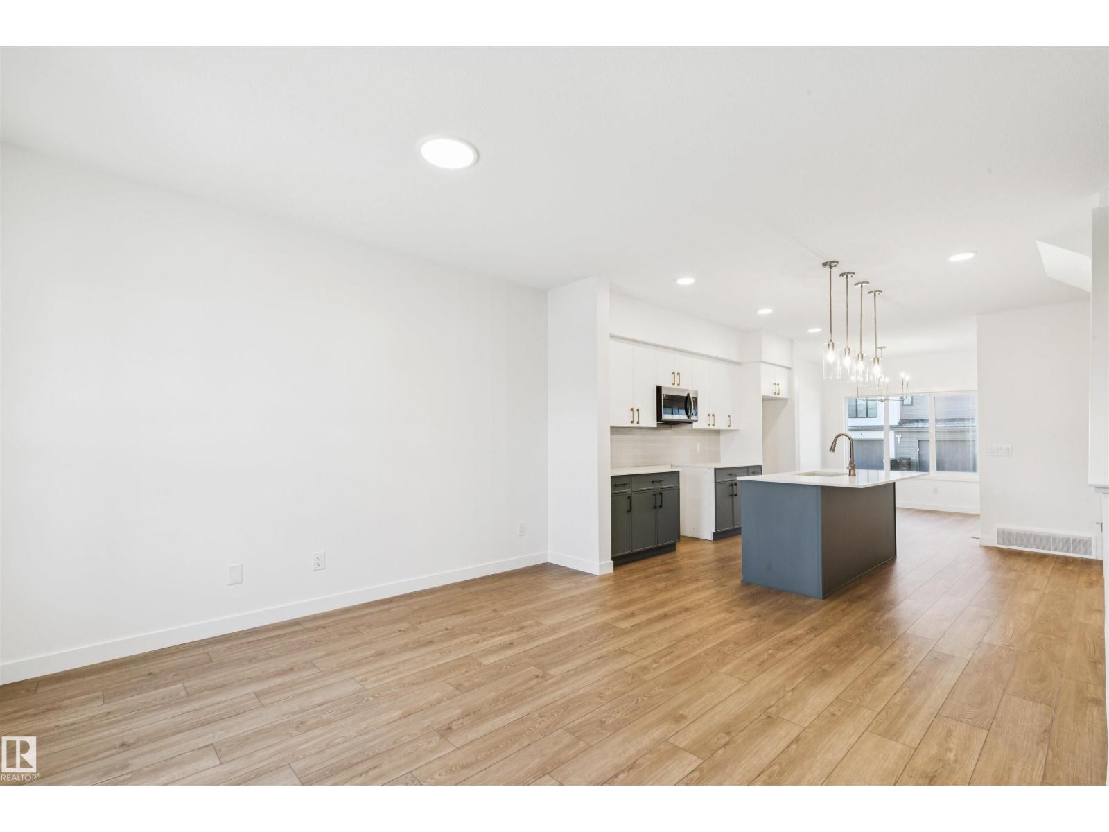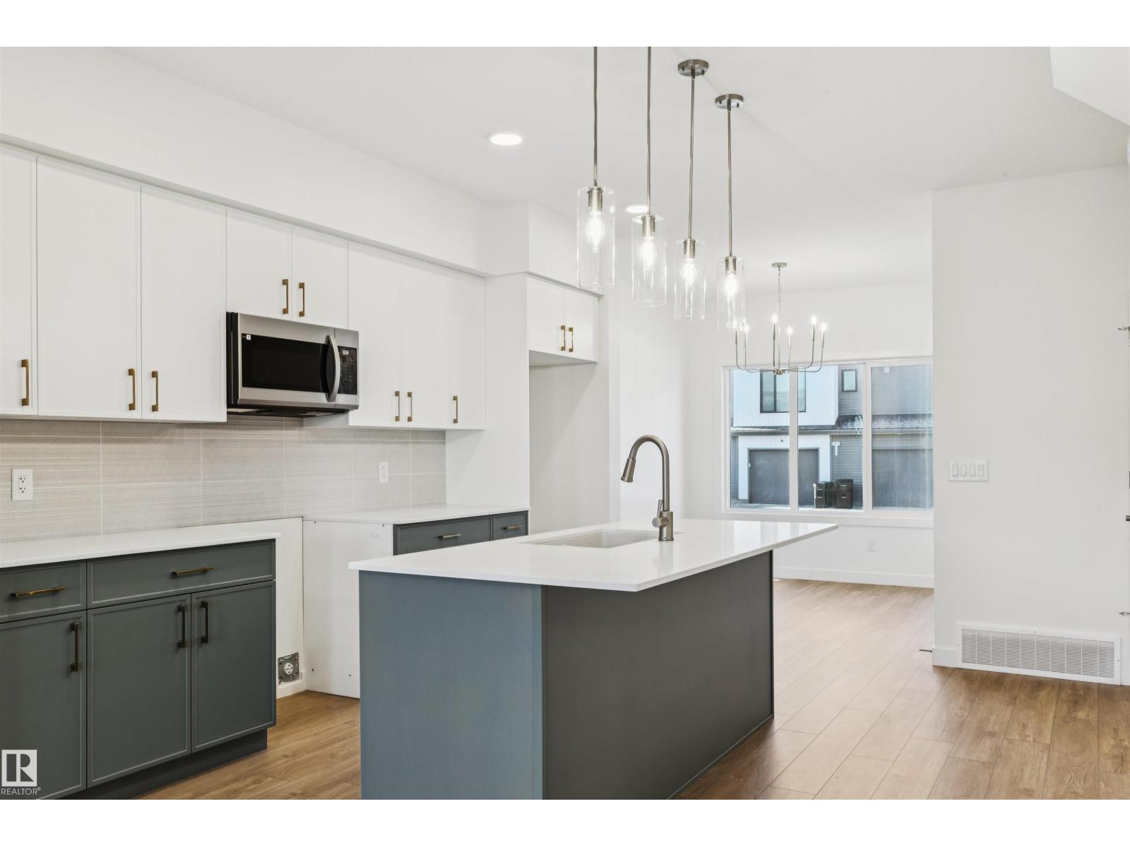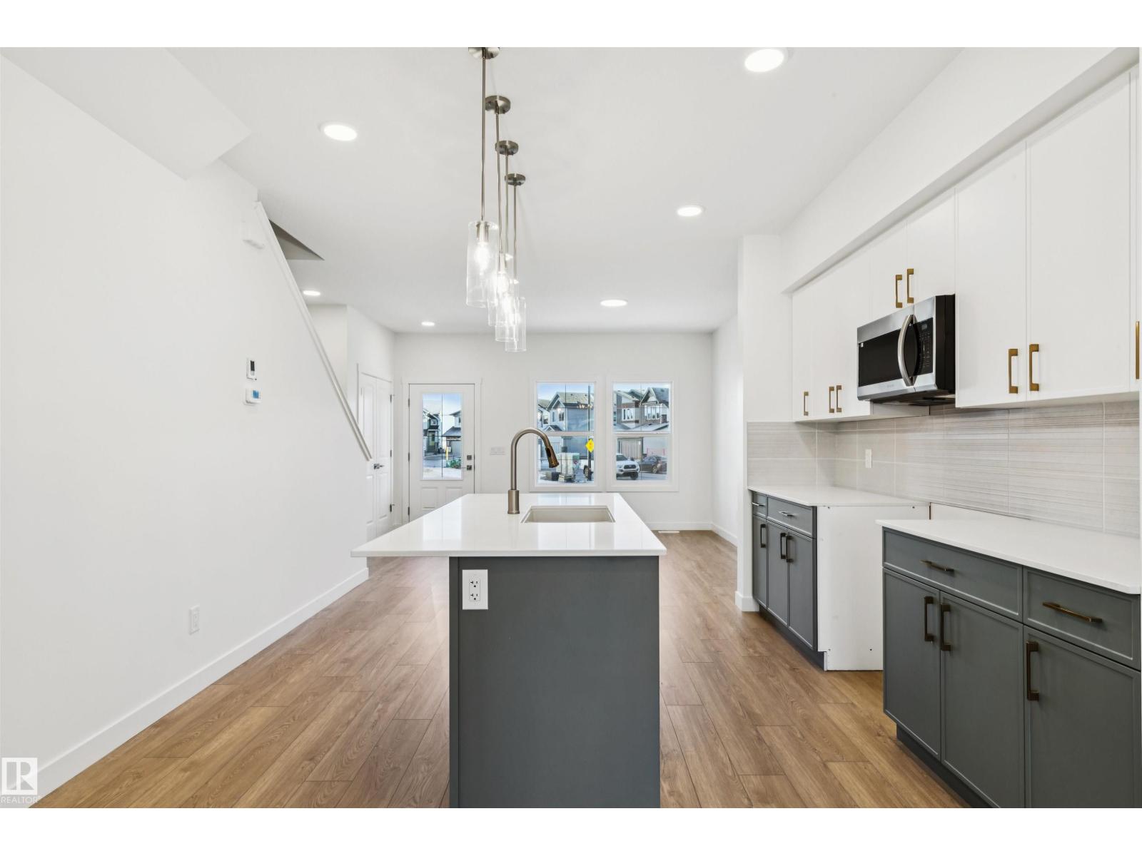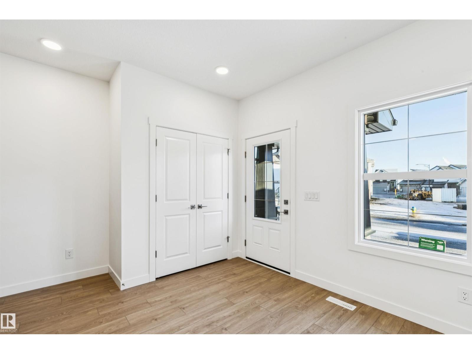 The Stellar combines modern design with everyday functionality in a bright, thoughtfully planned layout. The main floor showcases luxury vinyl plank flooring throughout, a welcoming foyer with coat closet, and a sun-filled great room framed by a large front window. At the heart of the home, the kitchen features quartz countertops, an undermount composite sink, a central island with eating ledge, profiled Thermofoil cabinetry, and a generous pantry. The rear dining area enjoys views of the backyard, while a conveniently placed powder room and back entry lead to a spacious yard and parking pad. Upstairs offers an open loft, a primary suite with walk-in closet and 3-piece ensuite with tub/shower, plus two additional bedrooms, a main 3-piece bath, and stackable laundry closet. This home includes 9’ ceilings on the main and basement, a separate side entrance, basement rough-in plumbing, and upgraded brushed nickel fixtures. (id:63190)