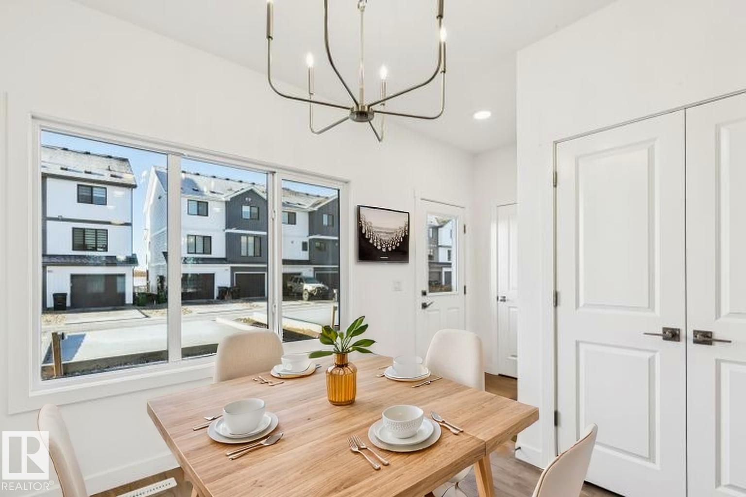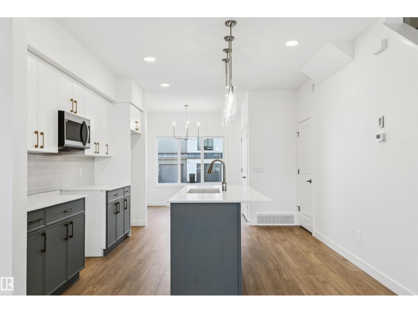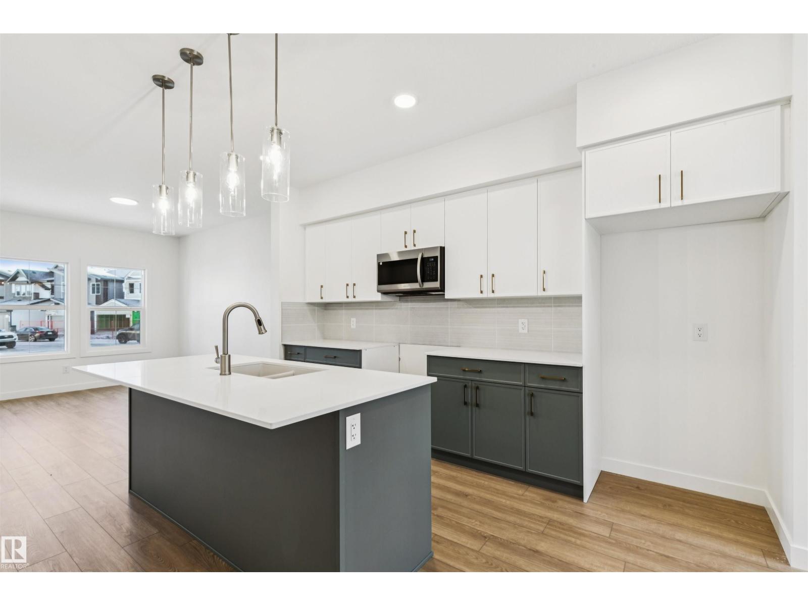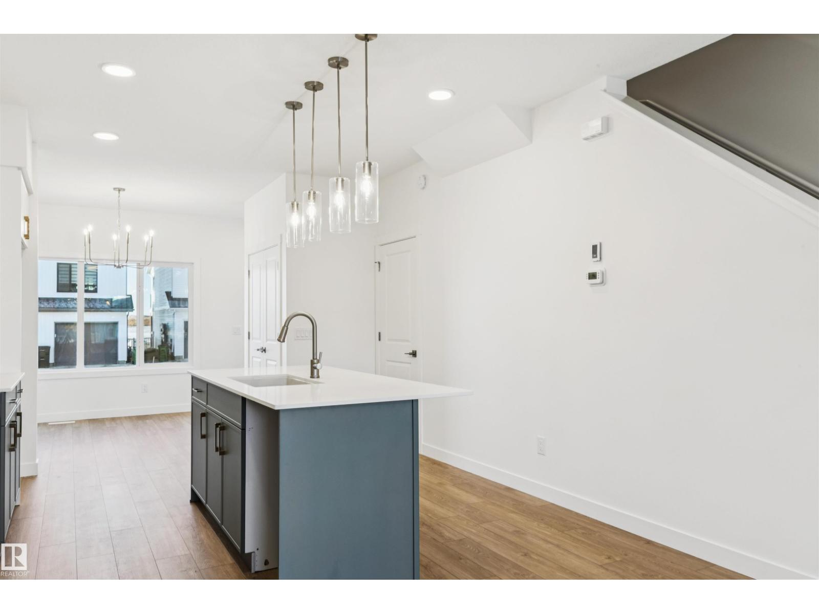 The Stellar combines modern design with everyday functionality in a bright, thoughtfully planned layout. The main floor showcases luxury vinyl plank flooring throughout, a welcoming foyer with coat closet, and a sun-filled great room framed by a large front window. At the heart of the home, the kitchen features quartz countertops, an undermount composite sink, a central island with eating ledge, profiled Thermofoil cabinetry, and a generous pantry. The rear dining area enjoys views of the backyard, while a conveniently placed powder room and back entry lead to a spacious yard and parking pad. Upstairs offers an open loft, a primary suite with walk-in closet and 3-piece ensuite with tub/shower, plus two additional bedrooms, a main 3-piece bath, and stackable laundry closet. This home includes 9’ ceilings on the main and basement, a separate side entrance, basement rough-in plumbing, and upgraded brushed nickel fixtures. (id:63190)