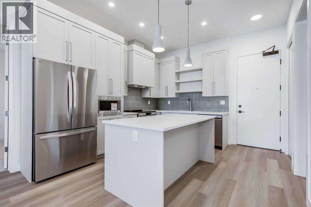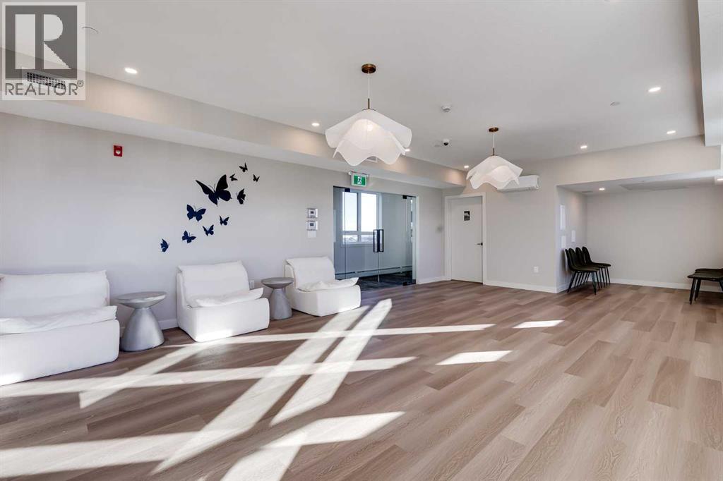 Perched on the top floor, this impressive B4 floor plan showcases 10-foot ceilings and a bright eastern-facing exposure, creating an airy, light-filled living space. The thoughtfully designed 2-bedroom, 2-bath plus den layout offers modern open-concept living, finished with quartz countertops throughout, luxury vinyl plank flooring, and contemporary recessed lighting. The primary suite features a walk-in closet and a private ensuite, while wall-unit air conditioning ensures year-round comfort.The Monarch delivers an exceptional amenity experience, including a fully equipped gym, yoga studio, boardroom, large residents’ lounge, party room with deck and BBQ, two rooftop decks, guest suite, and a dog wash station. Underground parade parking adds everyday convenience.Ideally located in the Cooper’s Crossing community, just steps from Coopers Promenade and close to schools, parks, and everyday amenities, with quick access to 8th Avenue, 40th Avenue, and Highway 2 for an easy commute to Calgary. Additional units are available, offering flexibility to suit a variety of lifestyles. A fantastic opportunity to enjoy low-maintenance, upscale living in one of Airdrie’s premier neighborhoods. (id:63190)