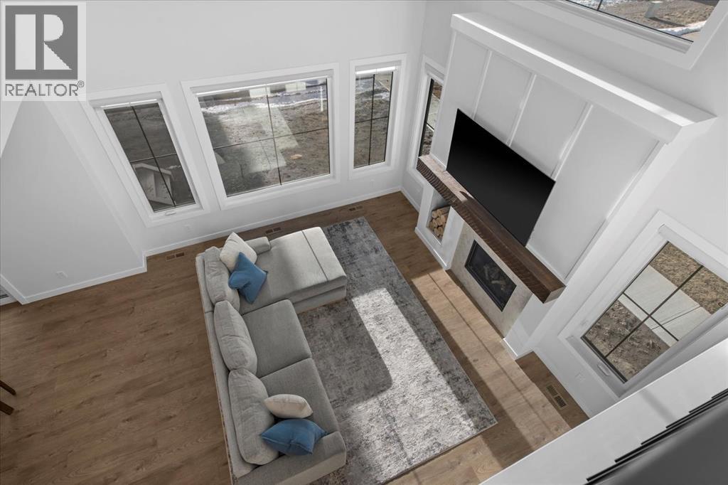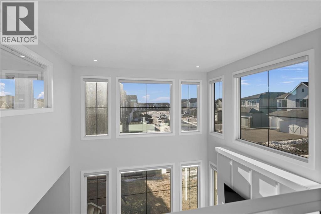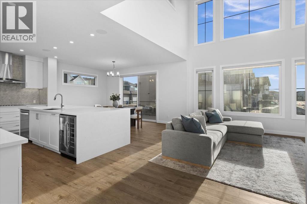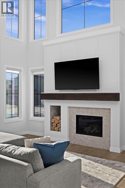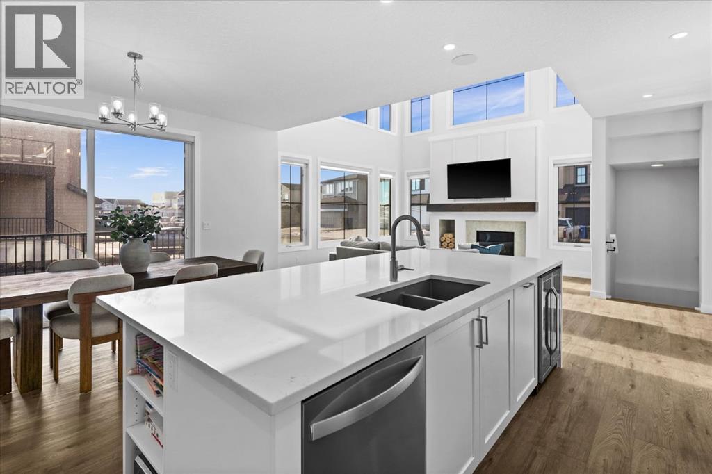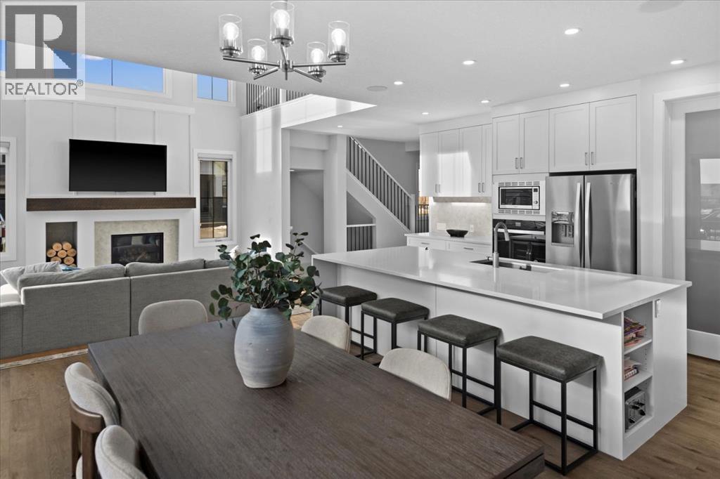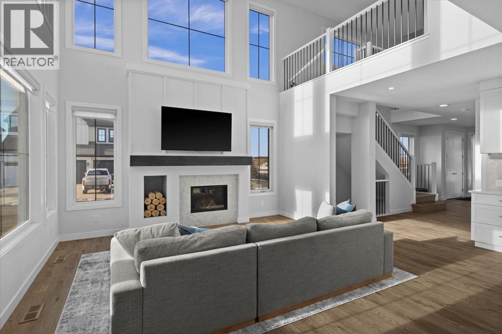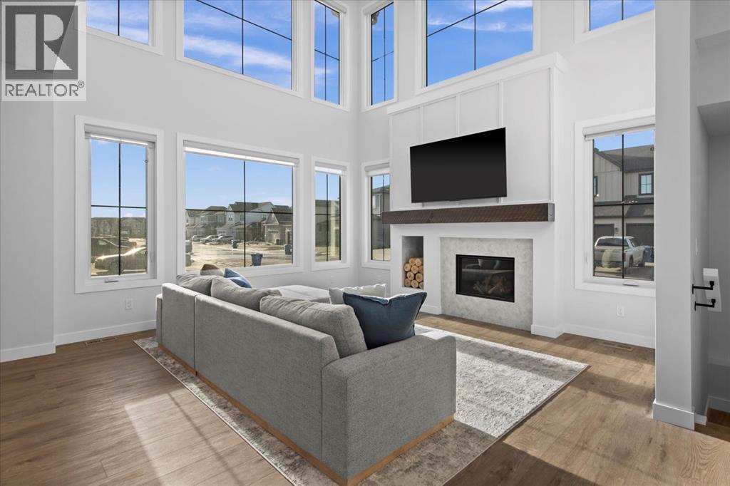 A beautifully crafted 2025-built Amber model by Sterling Homes, ideally situated on a premium corner lot in the sought-after community of Harmony. Offering over 3,750 sq ft of fully developed living space, 5 bedrooms, and more than $120,000 in upgrades, this home is truly exceptional. Barely lived in and meticulously maintained, it shows like new and is ready for immediate possession. The modern stone exterior and clean architectural lines create a striking first impression, while the corner-lot placement allows for large windows throughout and an open, airy feel. Located directly across from green space and pathways, the setting offers privacy and a strong connection to the outdoors. Inside, the open-concept main floor is designed for everyday comfort and entertaining, featuring soaring ceilings and wide plank flooring throughout the main and upper levels. The living room is anchored by a stunning floor-to-ceiling fireplace that serves as a statement feature, adding warmth and architectural presence. A private main-floor office and stylish powder room add functionality without disrupting the flow. The kitchen is the heart of the home, designed for gathering and hosting, with quartz countertops, an oversized island, stainless steel appliances, a beverage fridge, and a walk-in pantry, all open to the main living and dining areas. A custom mudroom with built-ins off the double attached garage keeps daily life organized. Upstairs, the home opens to below, enhancing the sense of space. The primary retreat offers a peaceful escape with large windows, including an additional upgraded west-facing window positioned to capture sunset and mountain views, a spacious walk-in closet, and a spa-inspired 5-piece ensuite with quartz countertops, a freestanding soaker tub, and a walk-in shower with built-ins. Two additional generously sized bedrooms with walk-in closets are located on the opposite side of the level, alongside a well-appointed 5-piece bathroom. The bonus room feature s built-in benches and large windows overlooking the green space and park, creating an inviting space for relaxed family time, while the upper laundry room is conveniently located nearby. The fully finished basement completes the home with a large recreation area perfect for games nights and entertaining, a wet bar, and double French doors leading to a versatile space ideal as a private theatre, home office, or guest room, along with a fifth bedroom and full bathroom. Built with family living in mind, this home offers generous spaces and a layout that supports everyday routines. Outside, a rear deck invites summer evenings, while the unfinished landscaping provides a blank canvas for your outdoor vision. All of this is paired with the exceptional amenities Harmony is known for, including lake access, golf, scenic pathways, and a vibrant community atmosphere. (id:63190)
