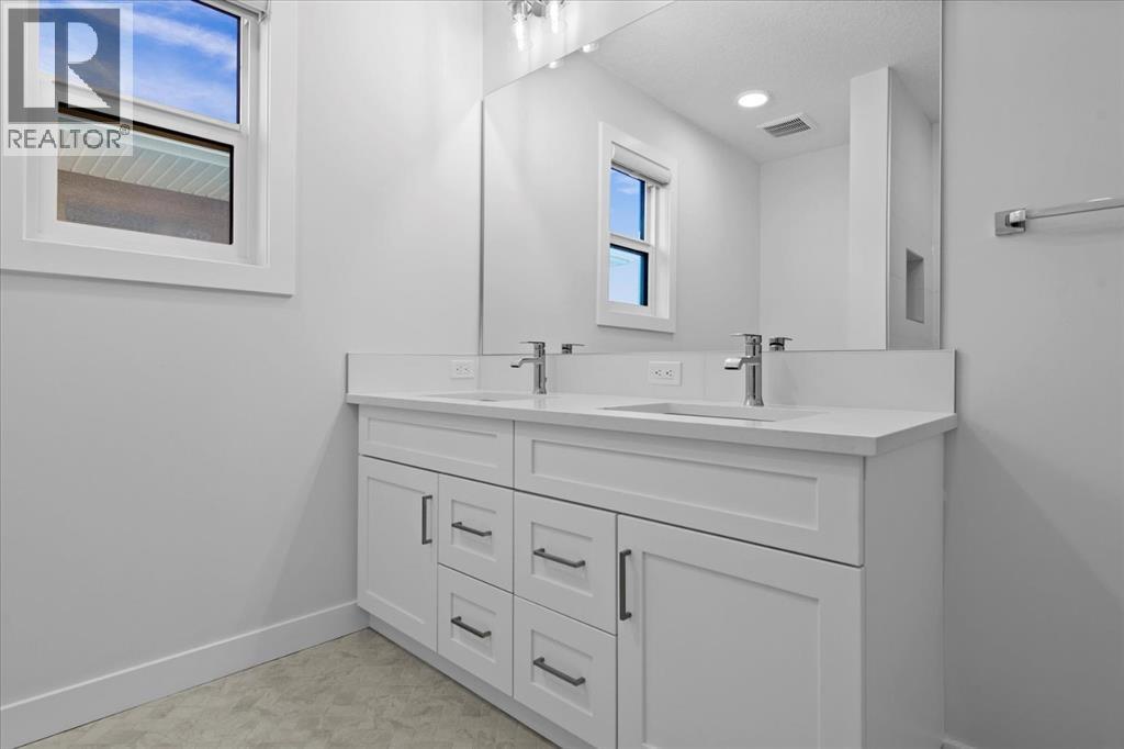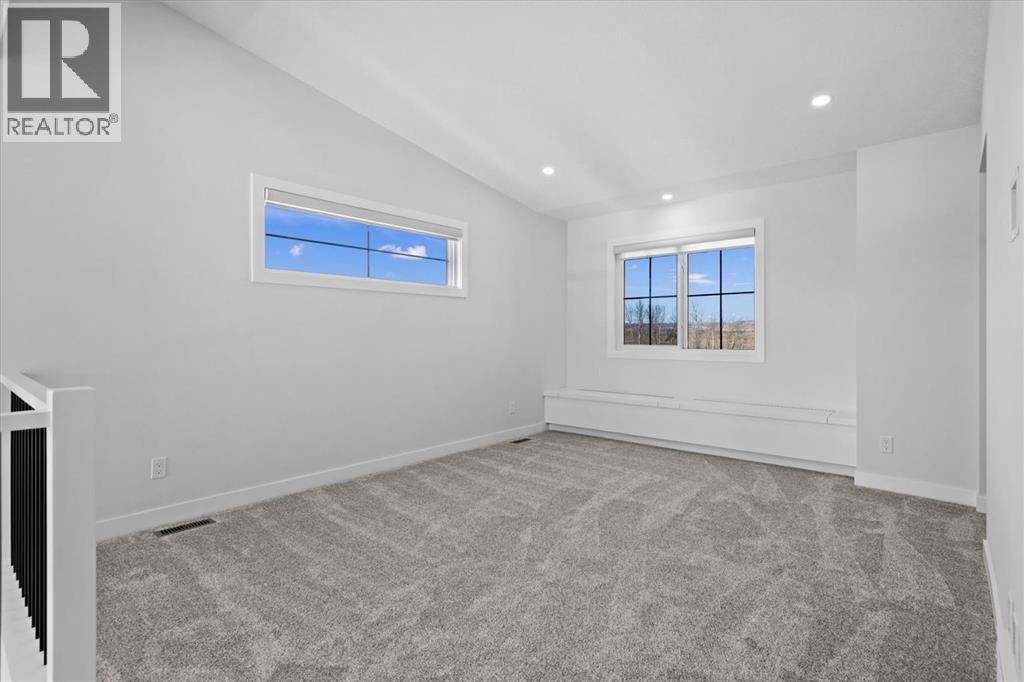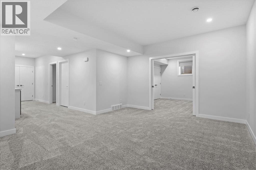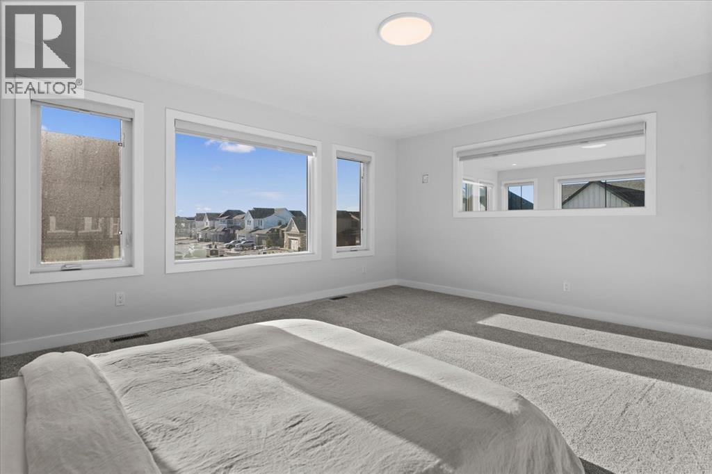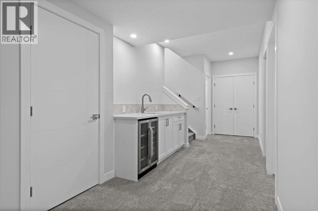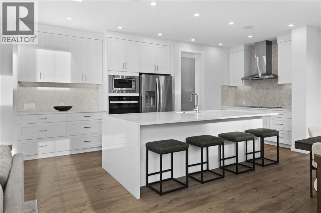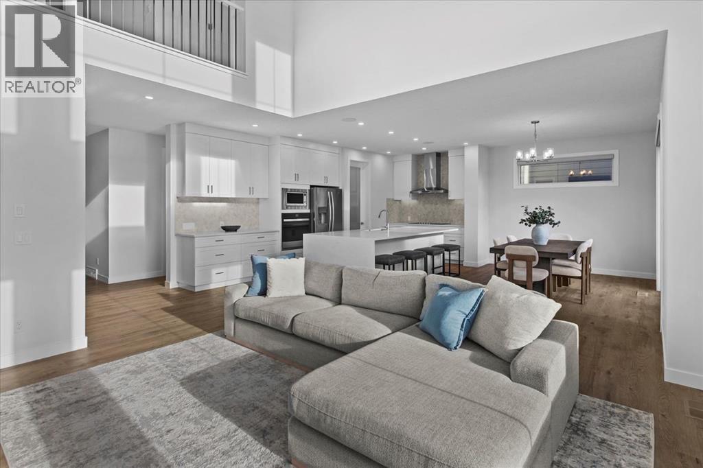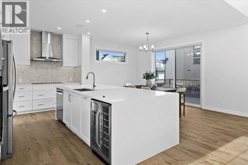 A beautifully crafted 2025-built Amber model by Sterling Homes, ideally situated on a premium corner lot in the sought-after community of Harmony. Offering over 3,750 sq ft of fully developed living space, 5 bedrooms, and more than $120,000 in upgrades, this home is truly exceptional. Barely lived in and meticulously maintained, it shows like new and is ready for immediate possession. The modern stone exterior and clean architectural lines create a striking first impression, while the corner-lot placement allows for large windows throughout and an open, airy feel. Located directly across from green space and pathways, the setting offers privacy and a strong connection to the outdoors. Inside, the open-concept main floor is designed for everyday comfort and entertaining, featuring soaring ceilings and wide plank flooring throughout the main and upper levels. The living room is anchored by a stunning floor-to-ceiling fireplace that serves as a statement feature, adding warmth and architectural presence. A private main-floor office and stylish powder room add functionality without disrupting the flow. The kitchen is the heart of the home, designed for gathering and hosting, with quartz countertops, an oversized island, stainless steel appliances, a beverage fridge, and a walk-in pantry, all open to the main living and dining areas. A custom mudroom with built-ins off the double attached garage keeps daily life organized. Upstairs, the home opens to below, enhancing the sense of space. The primary retreat offers a peaceful escape with large windows, including an additional upgraded west-facing window positioned to capture sunset and mountain views, a spacious walk-in closet, and a spa-inspired 5-piece ensuite with quartz countertops, a freestanding soaker tub, and a walk-in shower with built-ins. Two additional generously sized bedrooms with walk-in closets are located on the opposite side of the level, alongside a well-appointed 5-piece bathroom. The bonus room feature s built-in benches and large windows overlooking the green space and park, creating an inviting space for relaxed family time, while the upper laundry room is conveniently located nearby. The fully finished basement completes the home with a large recreation area perfect for games nights and entertaining, a wet bar, and double French doors leading to a versatile space ideal as a private theatre, home office, or guest room, along with a fifth bedroom and full bathroom. Built with family living in mind, this home offers generous spaces and a layout that supports everyday routines. Outside, a rear deck invites summer evenings, while the unfinished landscaping provides a blank canvas for your outdoor vision. All of this is paired with the exceptional amenities Harmony is known for, including lake access, golf, scenic pathways, and a vibrant community atmosphere. (id:63190)
