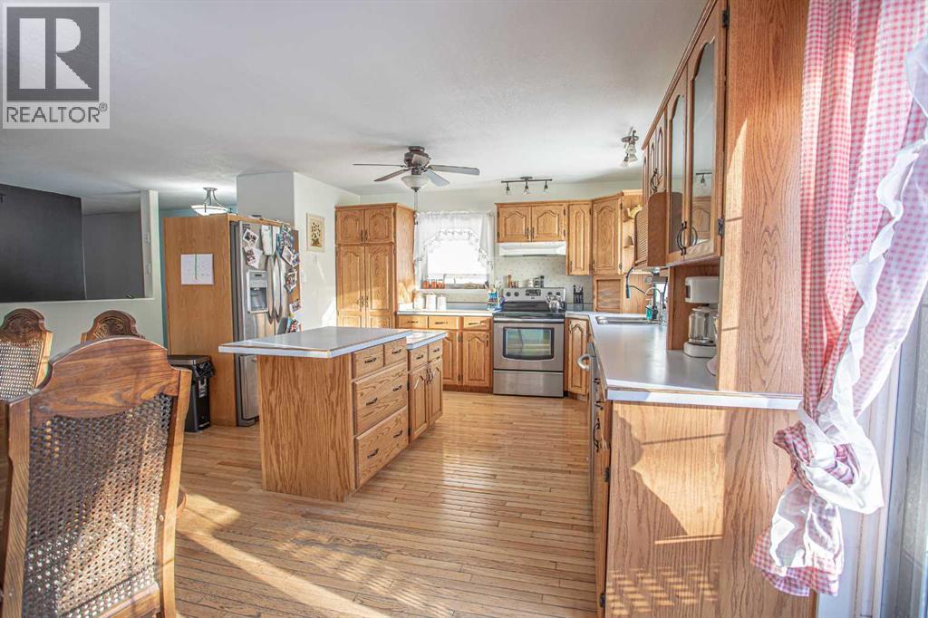 Country living awaits !! This 5 Bedroom, 2 1/2 Bath home rest peacefully on 14 + acres is sure to mark off everything and more ! It’s perfect for those seeking a slice of country life while still being only a short drive from town. Gaze out at the country setting through the garden doors while enjoying your morning coffee or witnessing the beautiful sunrise on your covered veranda . The aroma of the freshly baked bread resting on the counter and home grown produce lingers as you prepare meals in the bright "Country" Kitchen with an abundance of cupboards and a fantastic walk-in pantry, flowing into the great size eat-in Dining Room where meals will be shared around the table with the ones you hold near and dear to your heart, The Sitting Room with wall space to showcase all your special artwork and family photos ,a corner wood stove to keep you warm in the cool nights after building snowmen or sledding enjoying a cup of cocoa , while also keeping the gas bills lower. The main bath offers plenty of space as well as the main floor Laundry Room with a perfectly placed bathroom for easy access when working outside right by the door. A good-sized Primary Bedroom is tucked away with a stunning view overlooking the majestic trees , there is another two bedrooms on the main level . The lower level is home to the Family Room to spend time together watching movies and playing games, 2 pc bathroom .There is a cold storage room to keep your produce from the bounty of your garden and another 2 bedrooms. Enjoy long summer days basking in the sun or working in your gardens, with a dugout close to keep your garden watered . This property allows you to embrace all the pluses of acreage life . If you have any projects you’re working on, the detached garage gives you the perfect space to fix up that old clunker you’re trying to get running or store your quad or snowmobile during their off-seasons and still have room to keep your car out of the elements. A wonderful outdoor area i s sure to be the scene of quiet reflective mornings, peaceful afternoon naps, and savoring memorable moments with the ones you love while enjoying endless-starry Northern night skies around a campfire singing, sharing stories while roasting marshmallows. This acreage is yearning to be used to its full potential, where children are running around laughing, building tree forts, or your four legged family members, a huge thriving garden, maybe add a few animals and chickens? and all the wonders that can only be found enjoying the country living . The only question may be, are you ready to start living this lifestyle ? (id:63190)