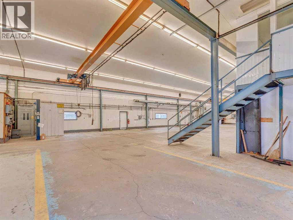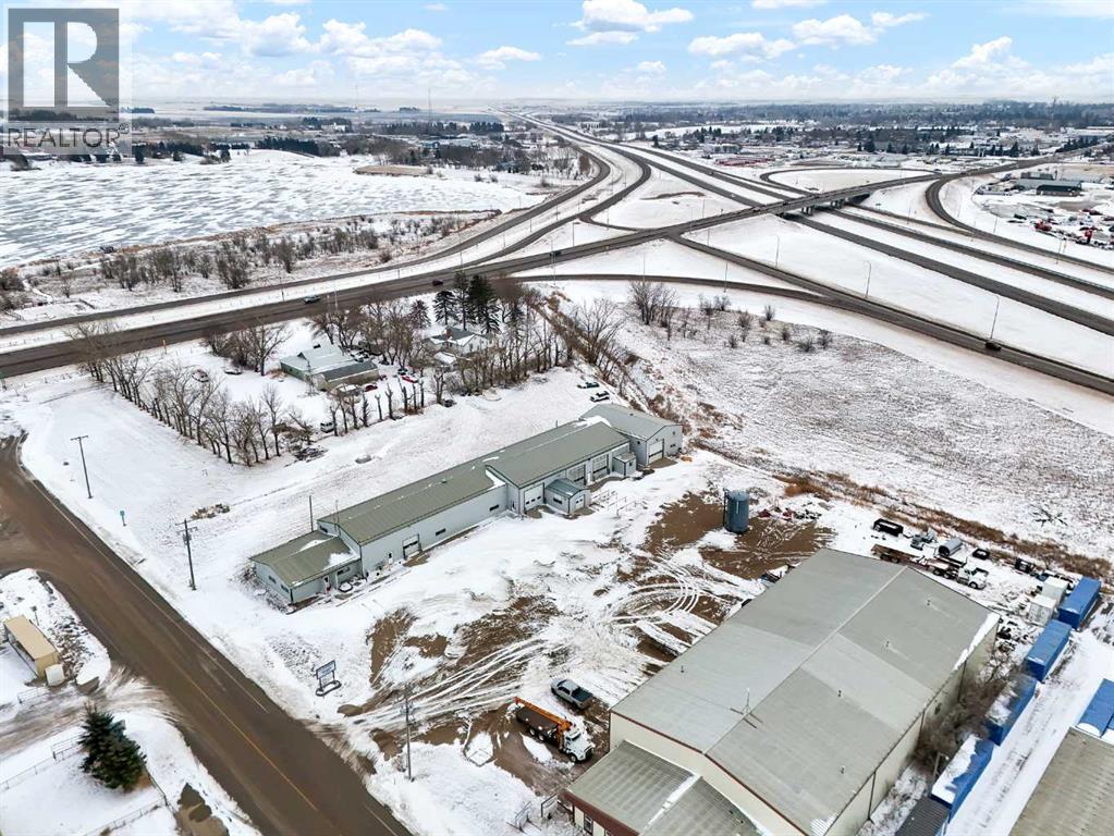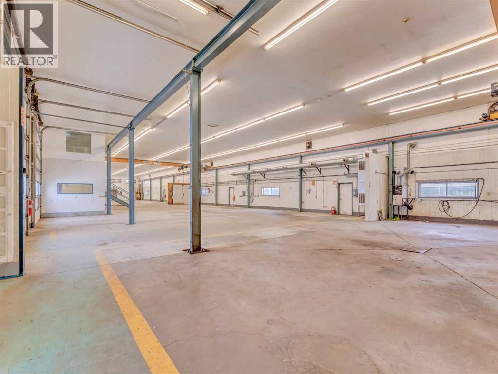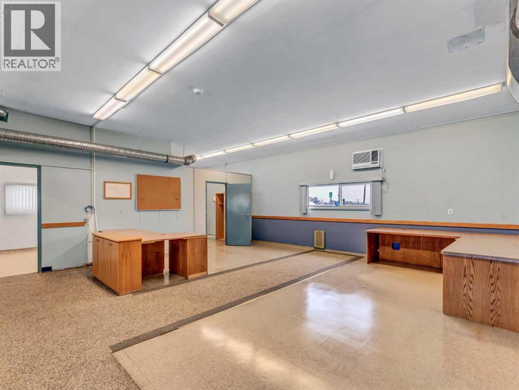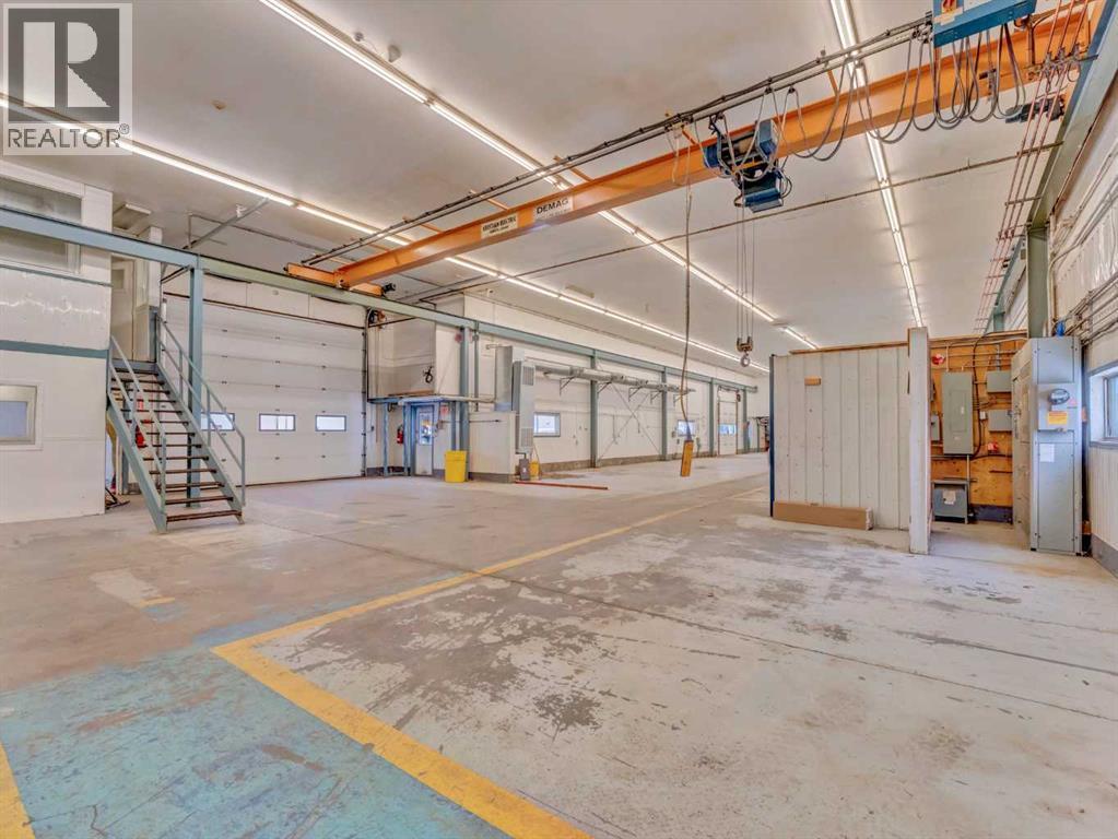 Strategically located just north of Brooks, this highly visible industrial property offers excellent access to the Trans-Canada Highway, directly by the Duchess HWY (873). Situated on 0.94 acres, the site features a well-designed 12,000+ sq. ft. shop complemented by a functional office and staff area. The shop includes 6 bays equipped with three 2-tonne overhead cranes, ideal for heavy-duty or service-based operations. The office component offers a reception area, two private offices, and a lunch room, while staff amenities include a locker room and two bathrooms. With ample yard space, efficient layout, and prime highway exposure, this property is exceptionally suited for industrial, mechanical, or fabrication businesses seeking both functionality and visibility. (id:63190)