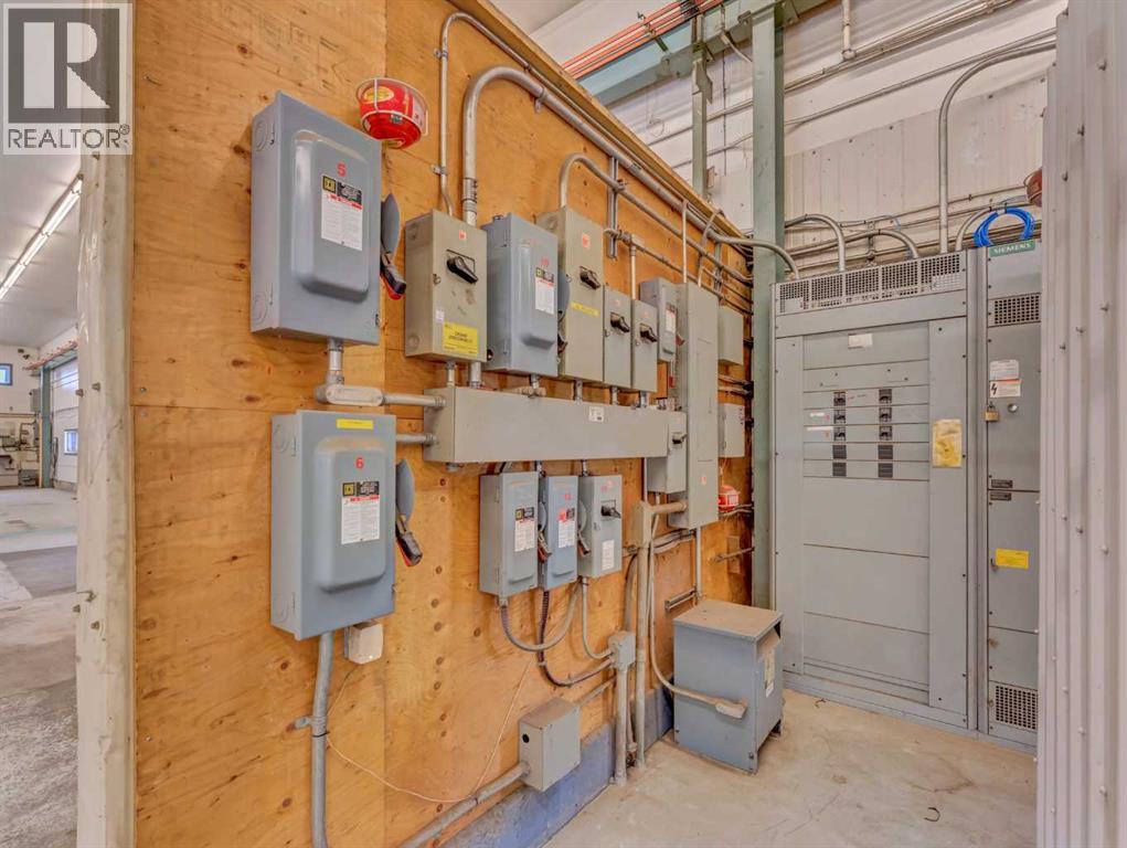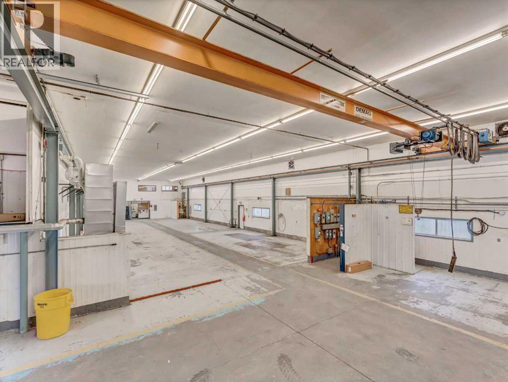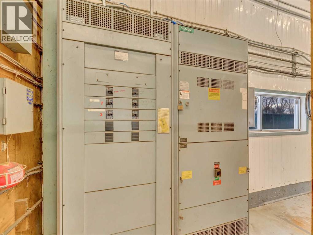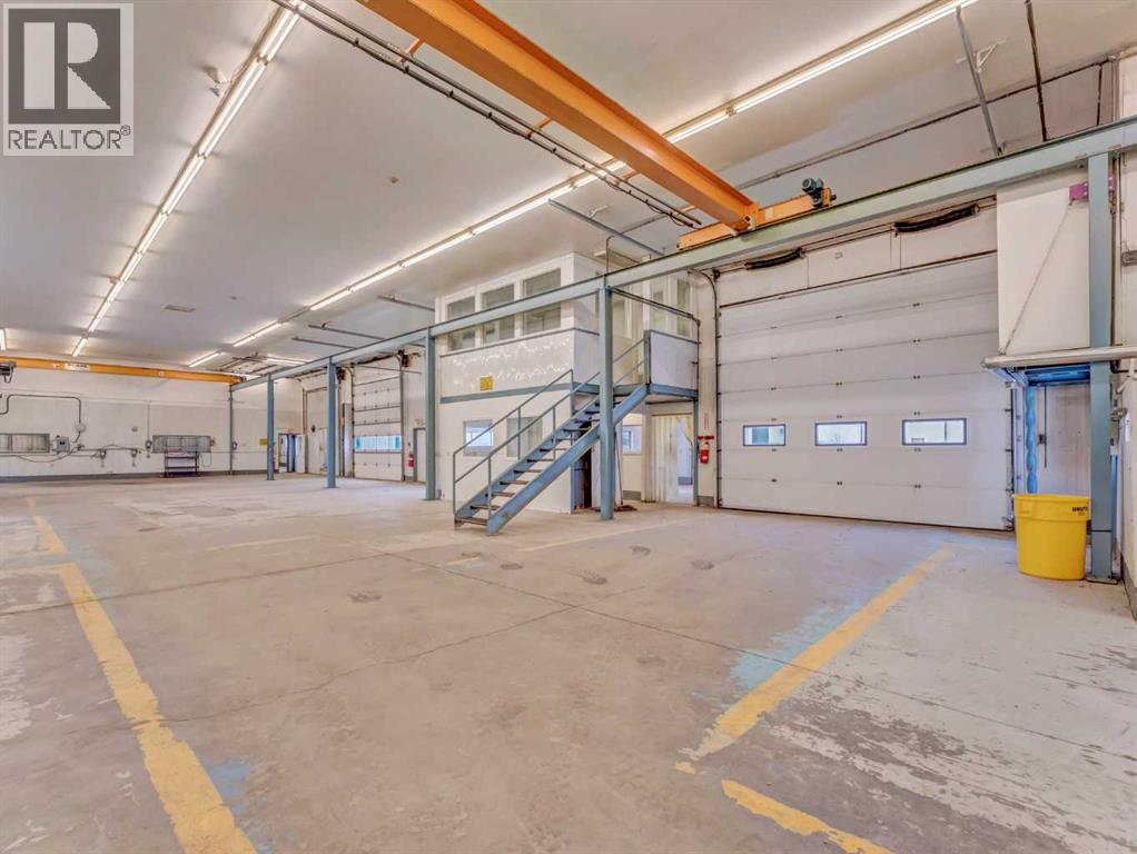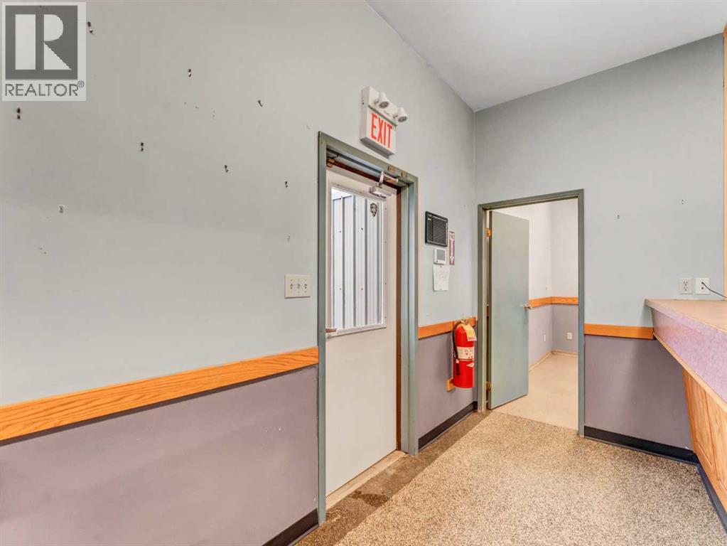 Strategically located just north of Brooks, this highly visible industrial property offers excellent access to the Trans-Canada Highway, directly by the Duchess HWY (873). Situated on 0.94 acres, the site features a well-designed 12,000+ sq. ft. shop complemented by a functional office and staff area. The shop includes 6 bays equipped with three 2-tonne overhead cranes, ideal for heavy-duty or service-based operations. The office component offers a reception area, two private offices, and a lunch room, while staff amenities include a locker room and two bathrooms. With ample yard space, efficient layout, and prime highway exposure, this property is exceptionally suited for industrial, mechanical, or fabrication businesses seeking both functionality and visibility. (id:63190)