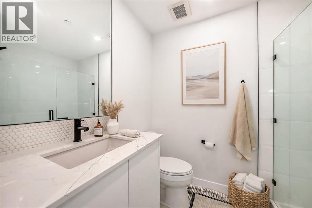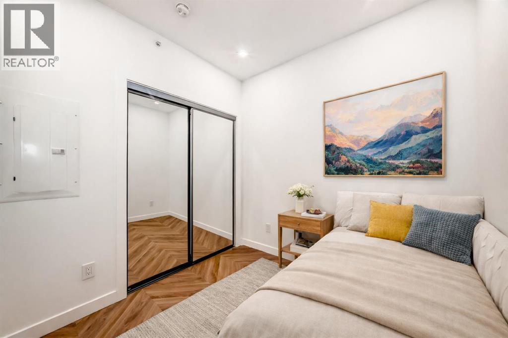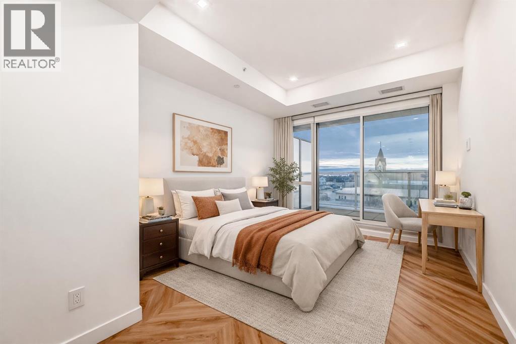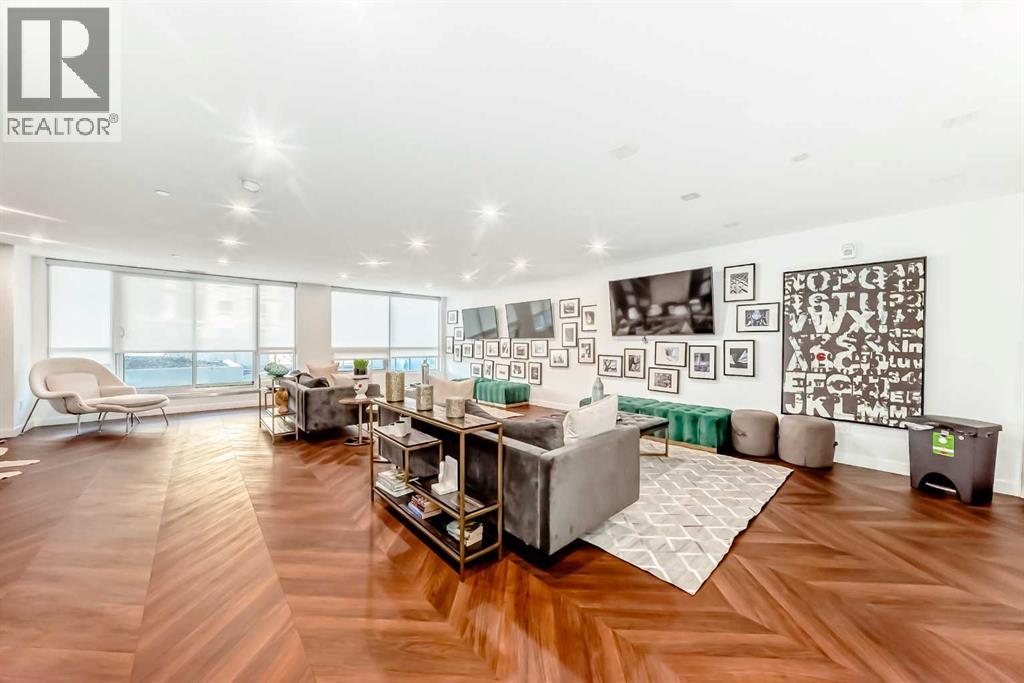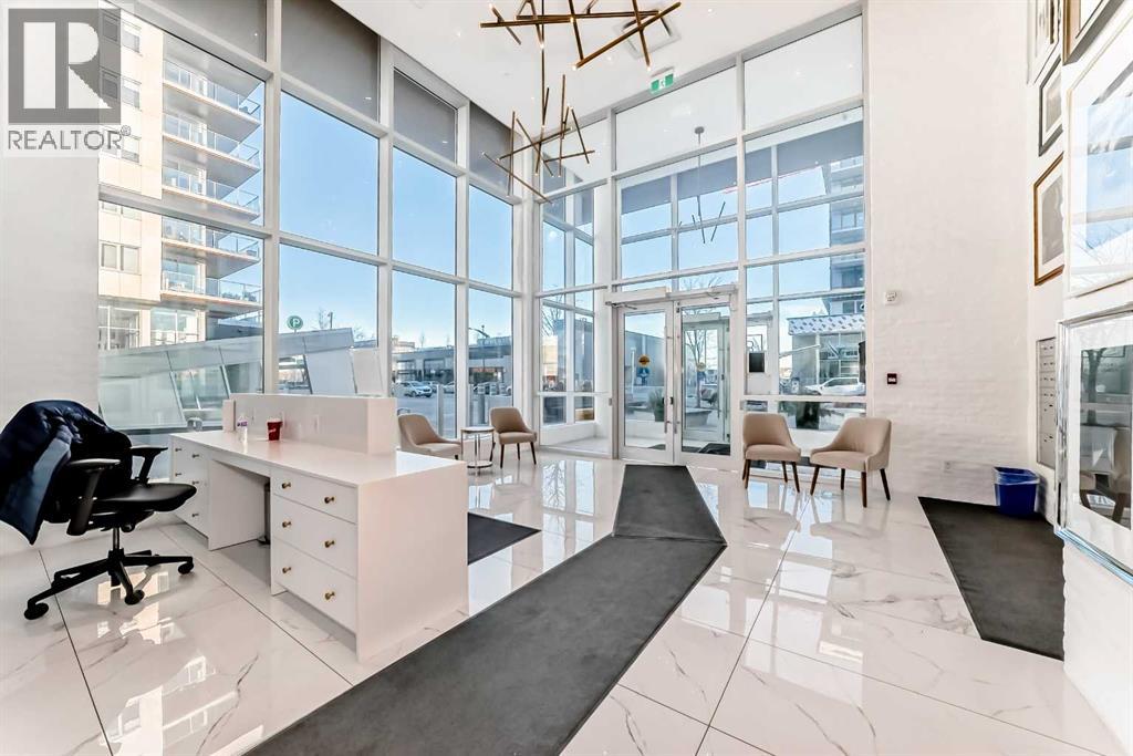 Welcome to Gateway by TRUMAN, ideally located in the vibrant, master-planned West District. This concrete-constructed residence offers modern luxury, thoughtful design, and exceptional urban convenience. This two-bedroom, two-bathroom home with titled underground parking features chevron wide-plank flooring, designer lighting, and flat-painted ceilings for a timeless, upscale feel. Floor-to-ceiling windows flood the space with natural light and capture mountain views, while central air conditioning ensures year-round comfort. The chef-inspired kitchen blends style and function with matte custom cabinetry, brushed-gold accents, quartz countertops and backsplash, under-cabinet lighting, and a generous eating bar. Premium appliances include a gas cooktop, wall oven, 36” Fisher & Paykel integrated refrigerator, paneled dishwasher, and statement hood fan. The open living and dining areas extend to a private terrace, ideal for outdoor lounging and entertaining. The primary suite features a walk-in closet and spa-inspired ensuite with quartz counters, mosaic tile, and a glass-enclosed shower. The second bedroom offers flexibility as a guest room or home office with access to a stylish four-piece bath. Additional highlights include in-suite laundry, ample storage, and secure underground parking. Residents enjoy premium amenities such as a rooftop patio, owner’s lounge, concierge, seperate bike & general storage lockers, EV charging, and visitor parking.Surrounded by parks, walking paths, boutique shopping, cafés, and dining, this home offers elevated living in one of Calgary’s most sought-after communities. (id:63190)