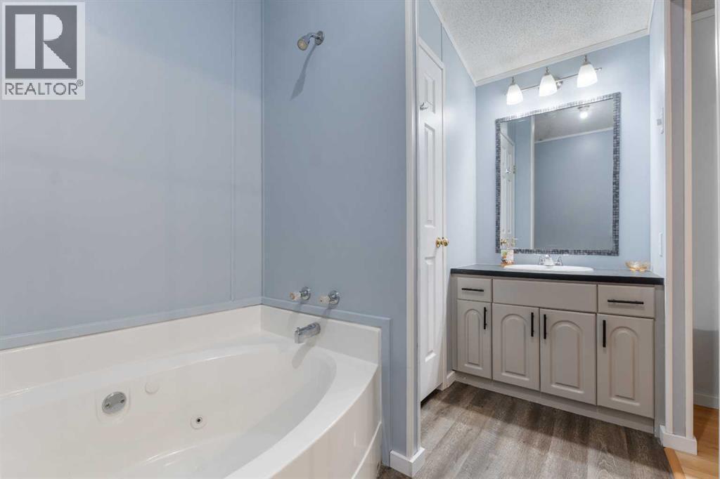 Bright and Open. This family has been updating this home. In the summer of 2025, the roof was redone professionally, and a new living room glass was installed in January. The kitchen cabinets were repainted, floors replaced, and some appliances are also recent. The living room includes a cozy electric fireplace with a mantel. Calm and relaxing colours. The primary bedroom features a walk-in closet and an en-suite bathroom with a large soaker tub adjacent to the separate water closet. Total of 3 bedrooms and 2 full baths. A fully fenced yard, located at the back of the cul-de-sac, is chain-link and is pie-shaped for a large backyard. (id:63190)