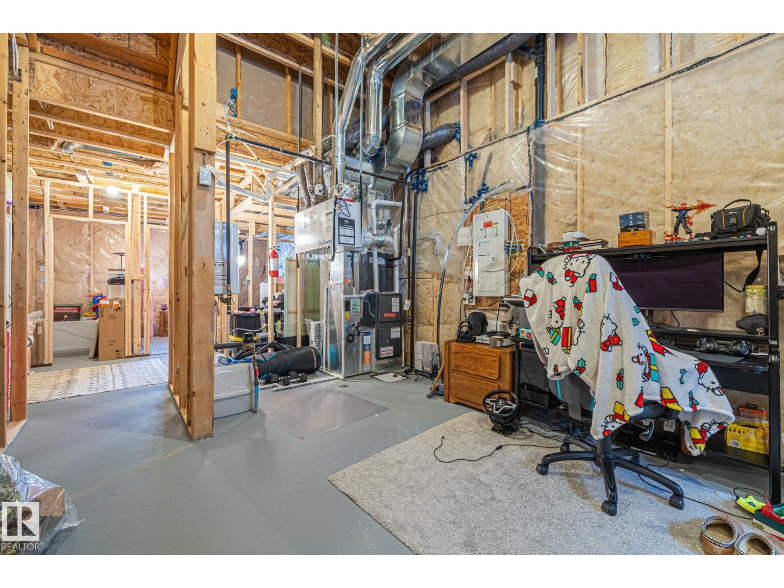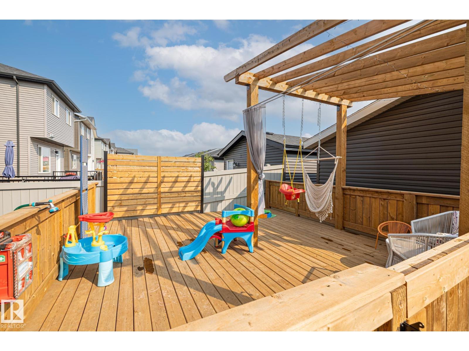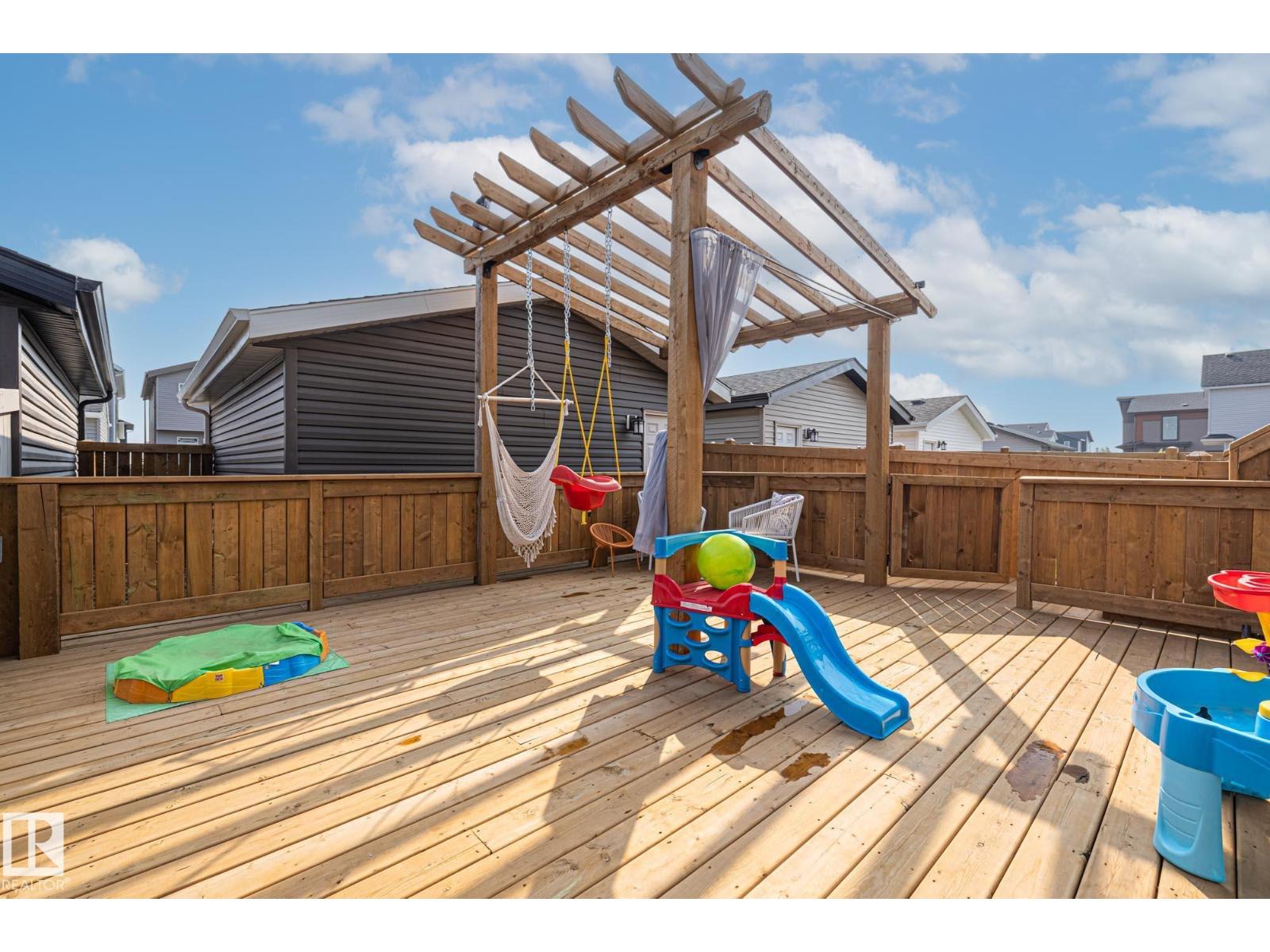 RARE Jayman built layout with large vaulted ceilings on the main floor, plus 9 foot tall basement ceiling height included a 13 foot vaulted basement living room height (golf simulator potential)! Finished in December of 2023, this home has been well loved and upgraded including a fully fenced backyard with a HUGE deck, dog run, landscaping, double car garage, Central A/C, blinds throughout, and finally, a fully framed, basement layout with plumbing and electrical work already completed making for an easy basement development project! Other perks include quartz countertops, SOLAR PANELS, a high end furnace filtration system, HRV, and fully finished landscaping. At first glance new homes might feel 'turnkey' but most home builders will leave a lot of things up to you.. including landscaping, a fence, A GARAGE, A/C, a backyard deck, blinds, etc. this is the only house in Marquis that is actually TURN KEY! With zero immediate future expenses! (id:63190)