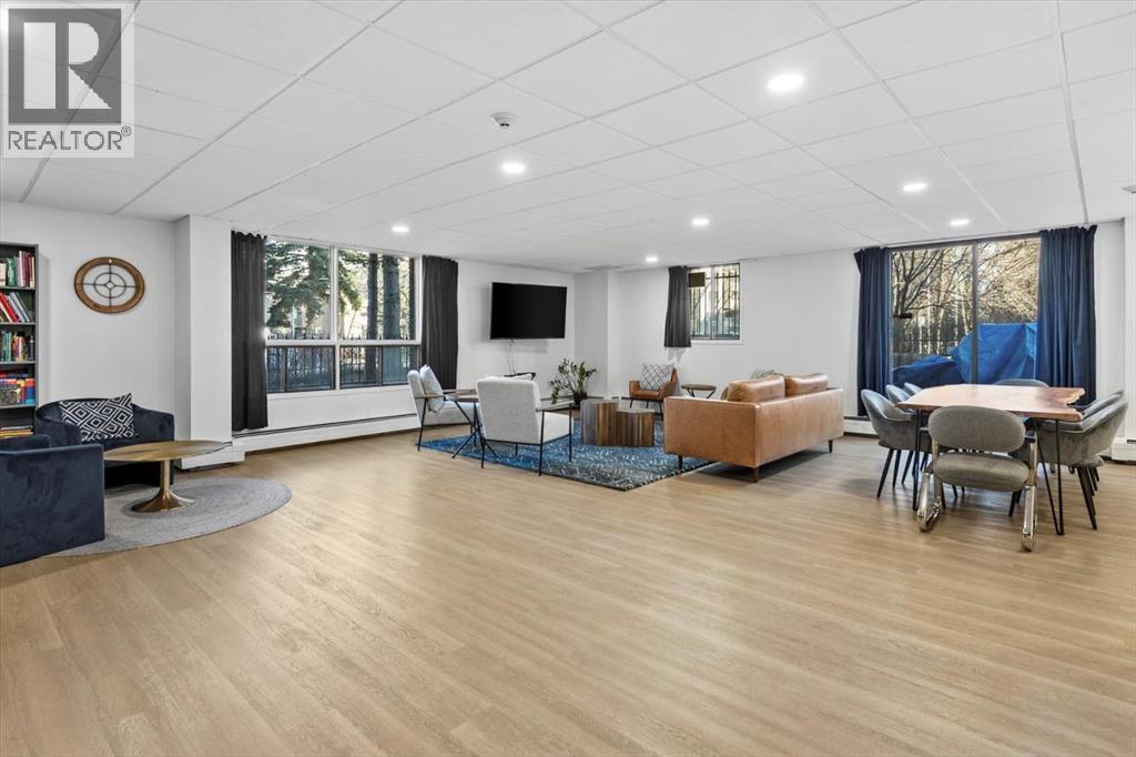 Are you looking for an airy condo in a premium location with a sunny south exposure, and a shared rooftop terrace? What about over 1150sqf with numerous renovations, a large balcony and steps from the restaurants and shoppes of 17th Avenue? This open concept home features A/C, in home storage, an updated kitchen and bathrooms set behind a spacious foyer. A well-managed complex right in the heart of the Beltline, Cozart is amenity rich with onsite management, a party room, Sky Lounge, gym and car wash. In addition to being super transit accessible - walk to work, or out to meet friends at local treasures like Betty Lou’s Library, Alumni or The Sweatered Hen. Many condos in the DT have you walk right into the living area, but this home has a grand tiled entrance foyer, and as you walk into the space – take note the natural light cascading through bright windows. The oversized kitchen with eat up island provides plentiful storage and counter space, plus a custom built in dry bar/buffet. The dining area sets the scene for many a dinner party, and the living room allows you to host numerous friends for games night, or to watch your favourite shows. The primary suite is set back from the living area and easily fits a king size bed plus has room for a reading nook, with closet storage, built in library shelving and an ensuite bathroom complete with soaker tub and stand-up shower. Also find a second bedroom that is great for a guest room, home office or den, a 3-piece bathroom and in suite storage/laundry room. An assigned underground parking stall and storage locker complete this offering. Whether you are downsizing or moving up to a bit more space, this home is ready for a new owner. Enjoy year-round views from the rooftop patio that also has a cherished solarium lounge. This building is well managed, well maintained and celebrates community - please note this is a dog free building. Come and have a look before She Gon’! (id:63190)