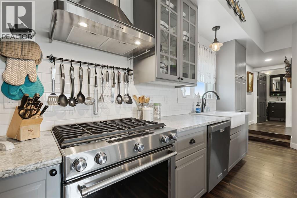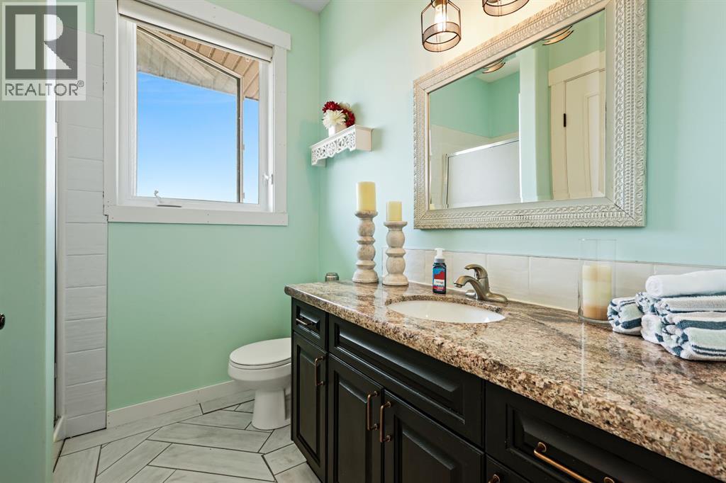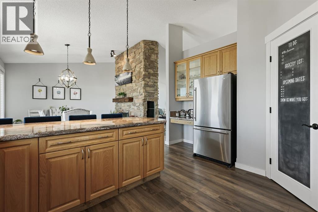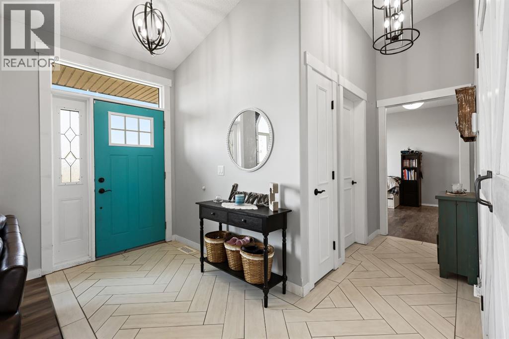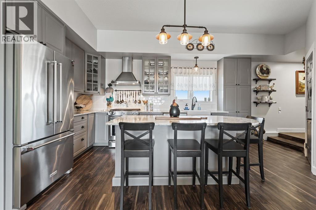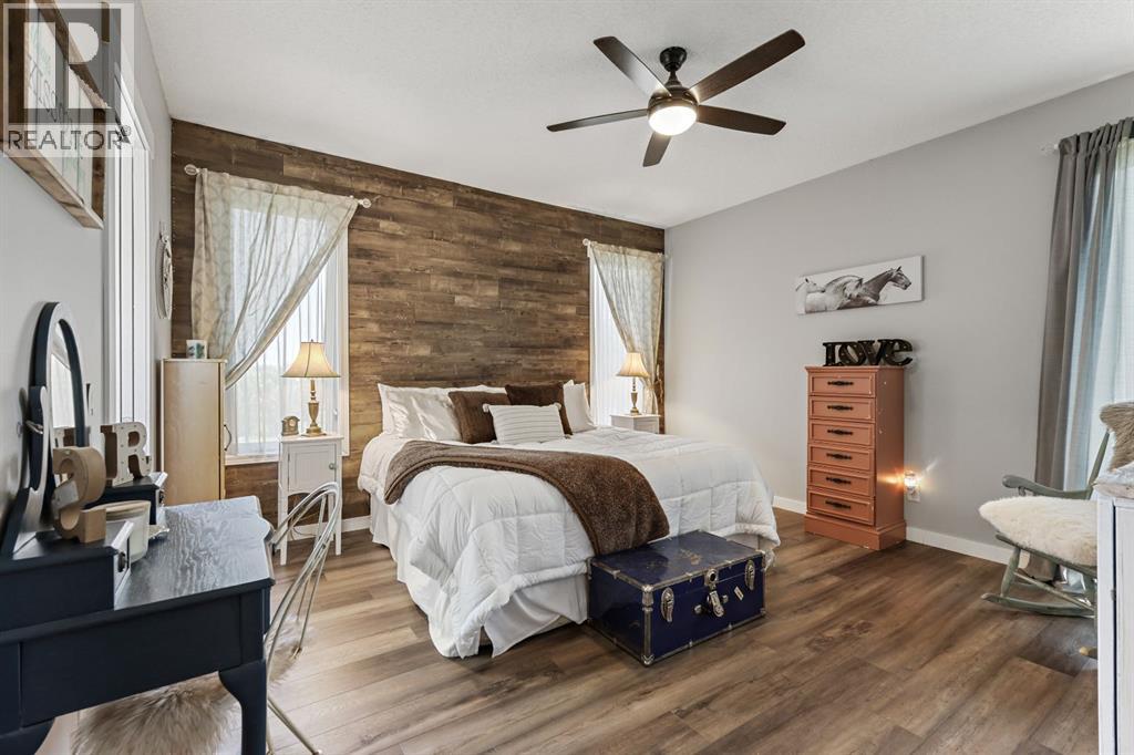 Welcome to your dream retreat—set on 4.05 fully fenced acres with stunning views and only 15 minutes from Calgary and Chestermere. This beautifully maintained bungalow offers just over 3,000 sq.ft. of developed living space, including a thoughtfully designed illegal in-law suite, making it ideal for multi-generational living or added rental potential.The main residence features a spacious primary bedroom filled with natural light from its south- and east-facing windows. The elegant ensuite includes a walk-in shower, soaker tub, and dual sinks, while the walk-in closet is equipped with built-in shelving and access to a massive 2,000 sq.ft. poured concrete crawl space—perfect for all your storage needs. Two additional bedrooms and a four-piece bathroom are located in the main wing. The open-concept living and dining room is centered around a stunning floor-to-ceiling, double-sided stone fireplace. With vaulted ceilings and a wood-burning insert with gas start, it adds warmth and charm to the space while creating a seamless flow between living and dining areas. The kitchen is bright and welcoming with plenty of cabinetry, a large walk-in pantry, Brazilian granite countertops, DuraCeramic tile flooring, and a breakfast bar. East-facing windows and patio doors lead to a cozy outdoor seating area—perfect for morning coffee, evening BBQs, or relaxed entertaining. Heading down the hallway to the in-law suite, you’ll pass a convenient three-piece bathroom and a den—perfect for a home office or quiet reading nook. The shared laundry room is both functional and stylish, offering a window for natural light, a utility sink, countertop for folding, and beautiful cabinetry for extra storage. The in-law suite was thoughtfully laid out with comfort in mind. The kitchen features a modern-country style with an apron sink overlooking a charming window, a gas stove for the home chef, and an island for additional prep space or casual dining. The open-concept living room is cozy and inv iting, and a west-facing window captures breathtaking sunsets. The large bedroom offers a peaceful place to unwind at the end of the day, while the three-piece bathroom includes a walk-in shower, built-in shelving, and a mirrored cabinet for extra storage. Recent upgrades include new shingles and updated front siding, giving the home great curb appeal and long-term value. Outside, a 31'4 x 26'0 barn—including a separate storage room—offers versatile options for a workshop or animal shelter. A tranquil pond is fed by the adjacent canal, and the property is accented with mature deciduous trees and shrubs for added beauty and privacy. For evening enjoyment, gather around the cozy firepit area under the stars—perfect for roasting marshmallows and making lasting memories. This sought-after acreage combines space, privacy, and quick access to city amenities. Whether you're looking to escape the hustle of urban life or find a perfect place for your family to grow, this property is truly one of a kind. (id:63190)
