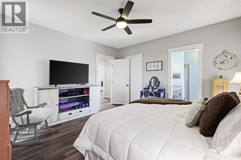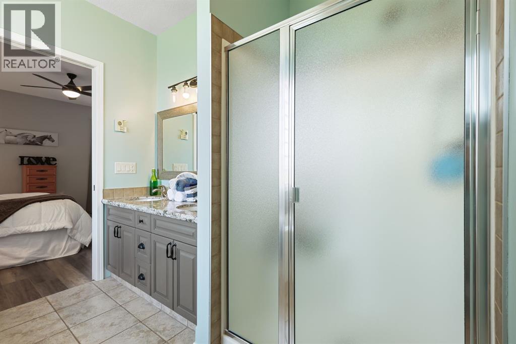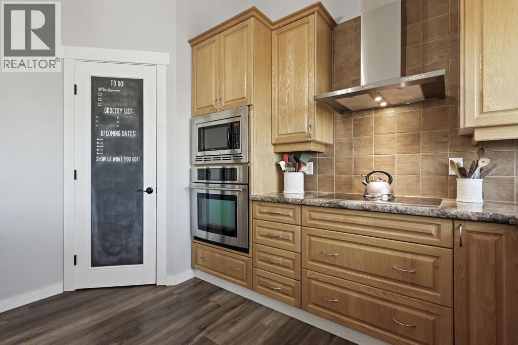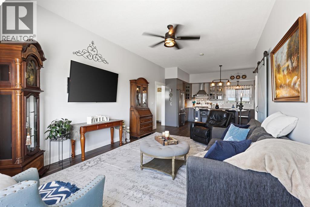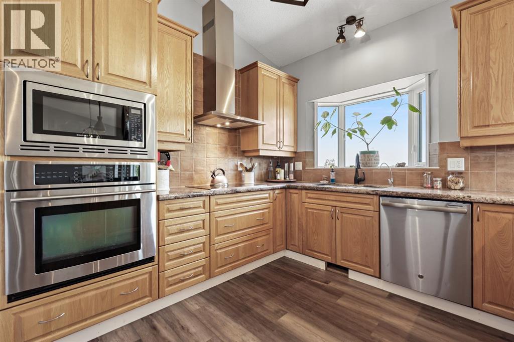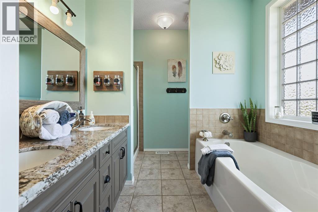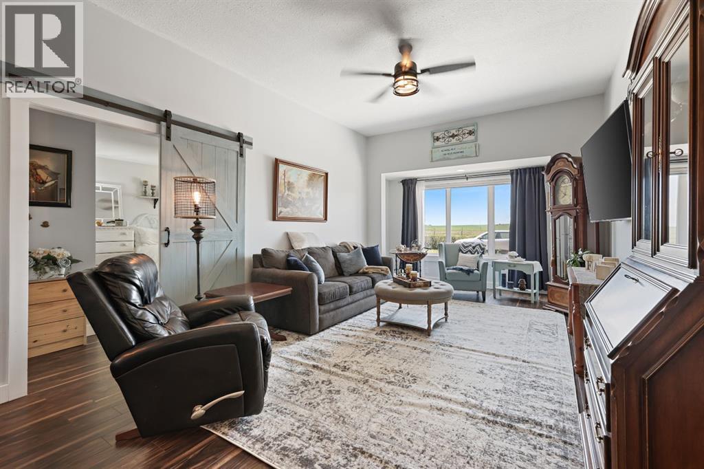 Welcome to your dream retreat—set on 4.05 fully fenced acres with stunning views and only 15 minutes from Calgary and Chestermere. This beautifully maintained bungalow offers just over 3,000 sq.ft. of developed living space, including a thoughtfully designed illegal in-law suite, making it ideal for multi-generational living or added rental potential.The main residence features a spacious primary bedroom filled with natural light from its south- and east-facing windows. The elegant ensuite includes a walk-in shower, soaker tub, and dual sinks, while the walk-in closet is equipped with built-in shelving and access to a massive 2,000 sq.ft. poured concrete crawl space—perfect for all your storage needs. Two additional bedrooms and a four-piece bathroom are located in the main wing. The open-concept living and dining room is centered around a stunning floor-to-ceiling, double-sided stone fireplace. With vaulted ceilings and a wood-burning insert with gas start, it adds warmth and charm to the space while creating a seamless flow between living and dining areas. The kitchen is bright and welcoming with plenty of cabinetry, a large walk-in pantry, Brazilian granite countertops, DuraCeramic tile flooring, and a breakfast bar. East-facing windows and patio doors lead to a cozy outdoor seating area—perfect for morning coffee, evening BBQs, or relaxed entertaining. Heading down the hallway to the in-law suite, you’ll pass a convenient three-piece bathroom and a den—perfect for a home office or quiet reading nook. The shared laundry room is both functional and stylish, offering a window for natural light, a utility sink, countertop for folding, and beautiful cabinetry for extra storage. The in-law suite was thoughtfully laid out with comfort in mind. The kitchen features a modern-country style with an apron sink overlooking a charming window, a gas stove for the home chef, and an island for additional prep space or casual dining. The open-concept living room is cozy and inv iting, and a west-facing window captures breathtaking sunsets. The large bedroom offers a peaceful place to unwind at the end of the day, while the three-piece bathroom includes a walk-in shower, built-in shelving, and a mirrored cabinet for extra storage. Recent upgrades include new shingles and updated front siding, giving the home great curb appeal and long-term value. Outside, a 31'4 x 26'0 barn—including a separate storage room—offers versatile options for a workshop or animal shelter. A tranquil pond is fed by the adjacent canal, and the property is accented with mature deciduous trees and shrubs for added beauty and privacy. For evening enjoyment, gather around the cozy firepit area under the stars—perfect for roasting marshmallows and making lasting memories. This sought-after acreage combines space, privacy, and quick access to city amenities. Whether you're looking to escape the hustle of urban life or find a perfect place for your family to grow, this property is truly one of a kind. (id:63190)