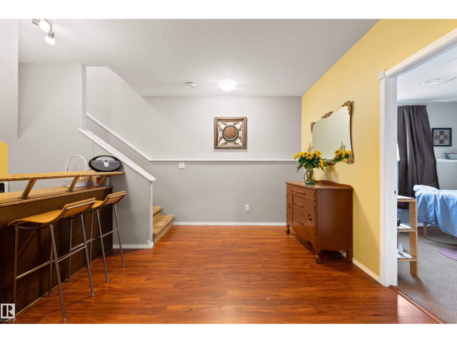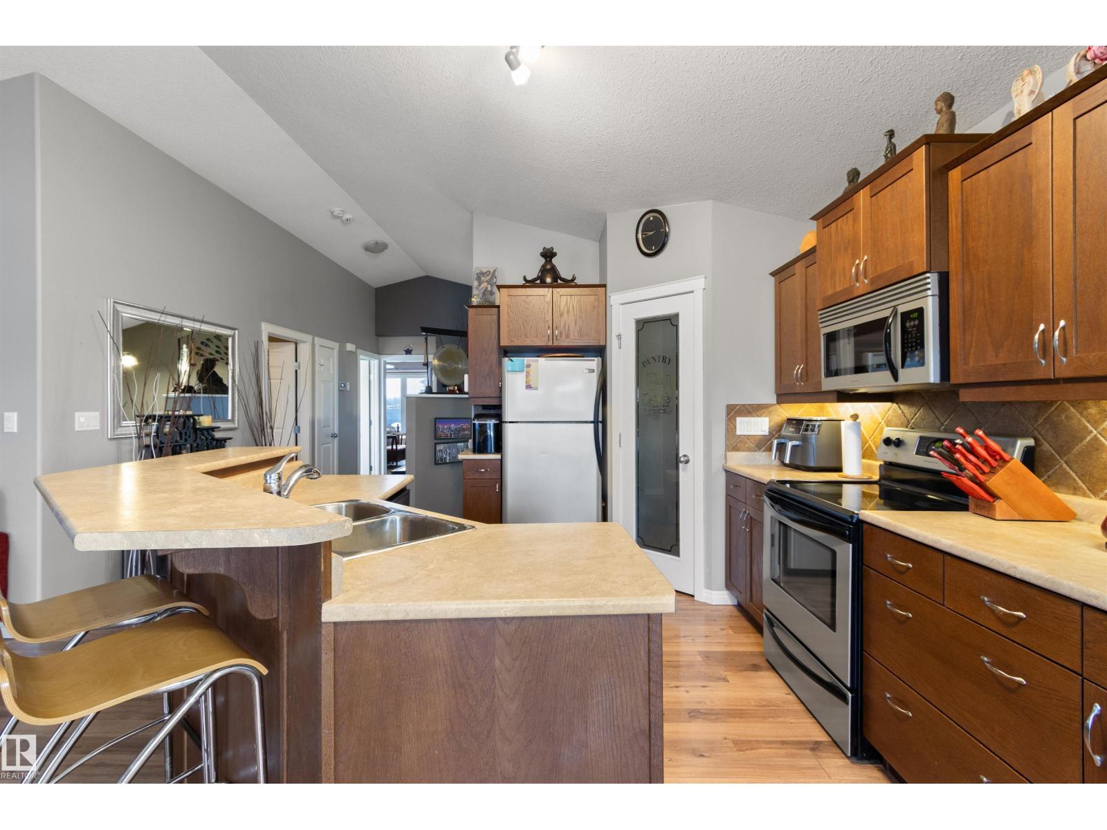 Located in Drayton Valley’s newest subdivision, Meraw Estates, this beautiful corner-lot home offers 4 bedrooms, 2 full bathrooms, a fully finished basement, and a double detached garage with back-alley access. The location is ideal—just steps from a brand-new school, playgrounds, and walking paths, with shopping, groceries, pharmacies, and more all within easy walking distance. The inviting front entrance features a spacious foyer with vaulted ceilings. Upstairs, you’ll find a bright, open-concept layout with a beautiful kitchen offering ample counter and cupboard space, flowing nicely into the large living area and out to the patio/deck—perfect for entertaining. The primary bedroom is generously sized with a walk-in closet and convenient pocket-door access to the main floor 4-piece bathroom. A second bedroom completes the upper level. Downstairs boasts 9’ ceilings and a large family room with a dry bar, along with two additional bedrooms, a 3-piece bathroom, and a walk-up door providing backyard access. (id:63190)
