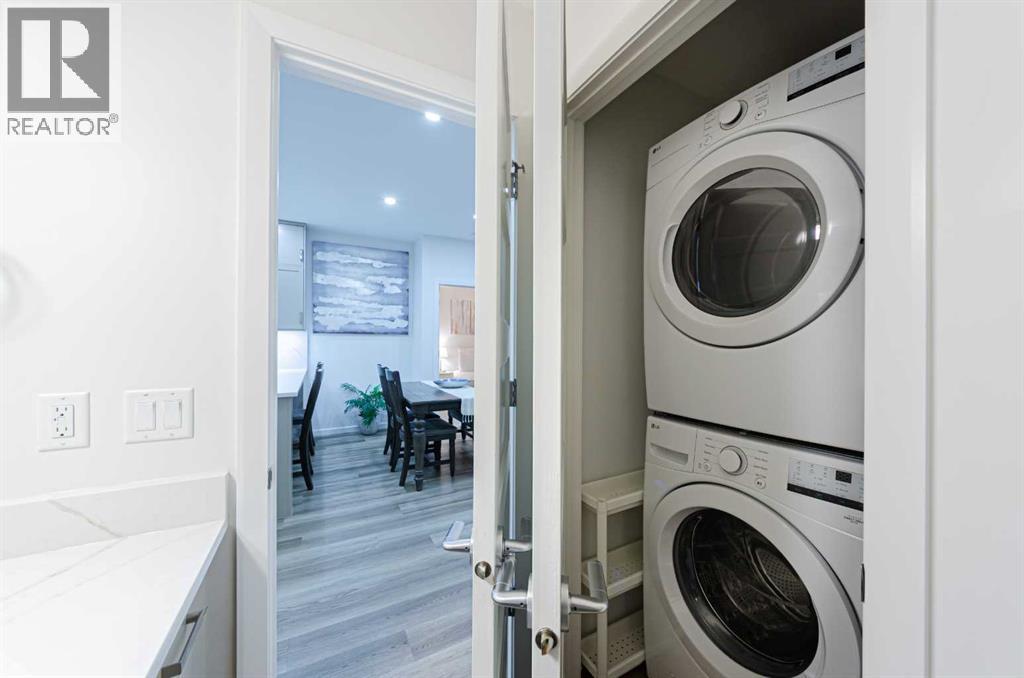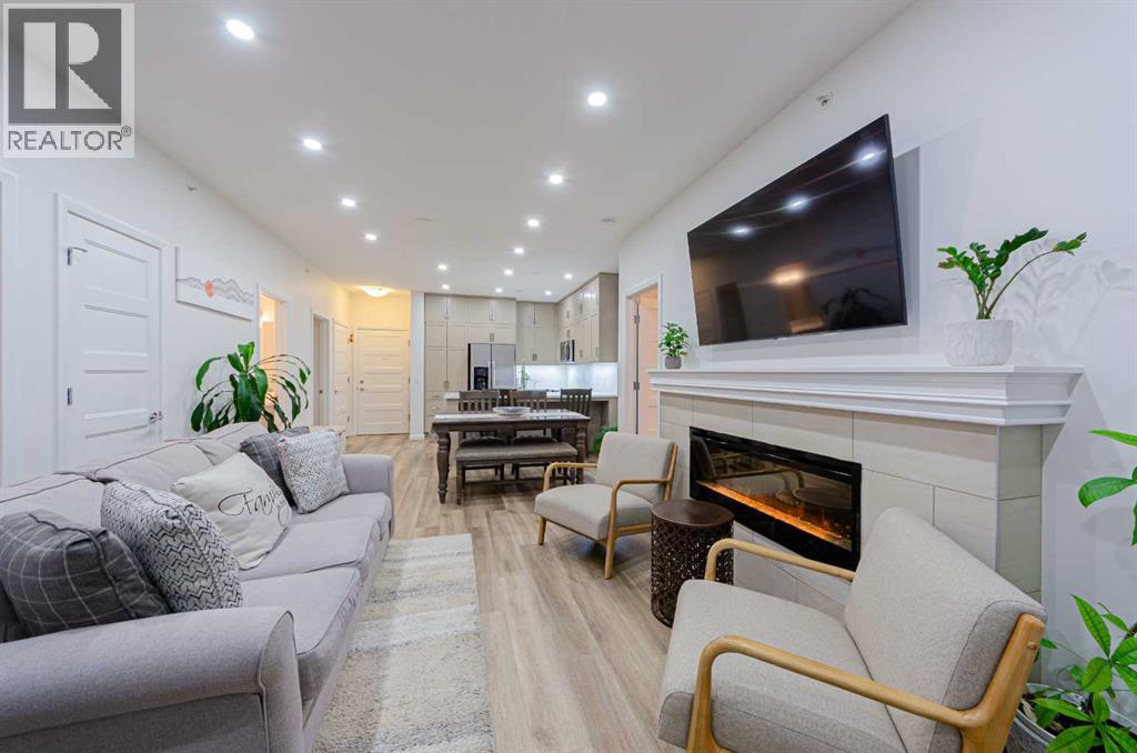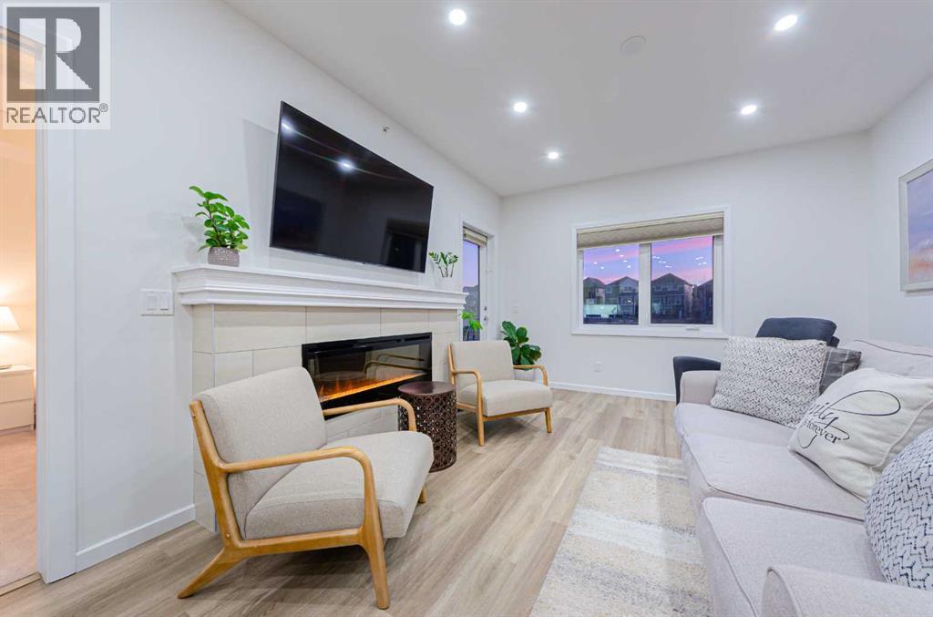 Welcome to The Pinnacle at Kincora, a boutique, meticulously crafted condominium by Cove Properties—one of Calgary’s most trusted and award-winning multifamily developers, renowned for quality construction and thoughtful design.Nestled in one of Kincora’s most peaceful enclaves, this elegant 2-bedroom plus den (or home office), 2-bath residence offers an exceptional blend of comfort, style, and functionality, all within walking distance to scenic parks, pathways, and everyday shopping conveniences.Offering 1,000 sq. ft. of spacious single-level living, this beautifully upgraded home showcases quartz countertops throughout, designer tile, luxury vinyl plank flooring, and refined fixtures and finishes. The kitchen is equipped with high-end Frigidaire stainless-steel appliances, a one-year-old microwave, and cabinetry enhanced with LED lighting, creating both style and practicality.Enjoy year-round comfort with a portable A/C unit, and appreciate thoughtful upgrades including 16 pot lights that add warmth and brightness throughout the home.A rare find in condo living, this unit includes two titled parking stalls—one heated underground and one convenient outdoor stall directly in front of the building—plus bike storage, offering outstanding flexibility and convenience.Step outside to your private, comfortable balcony, complete with wood-style flooring, a gas line, and a one-year-old, barely used Weber BBQ—perfect for relaxing or entertaining.Situated in a secure, maintenance-free, 18+ building, The Pinnacle at Kincora offers a unique combination of luxury, tranquility, and effortless living. Pets are permitted with board approval.This is a rare opportunity to own a beautifully upgraded home in an exceptional community—don’t miss your chance to make it yours. (id:63190)