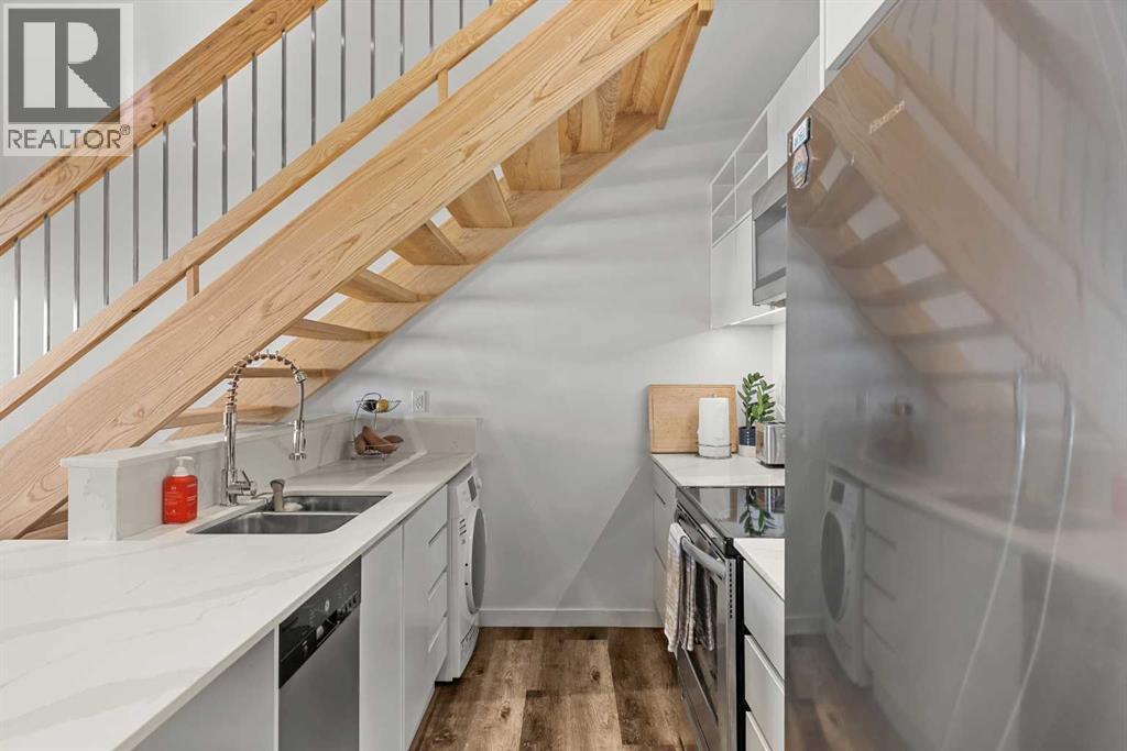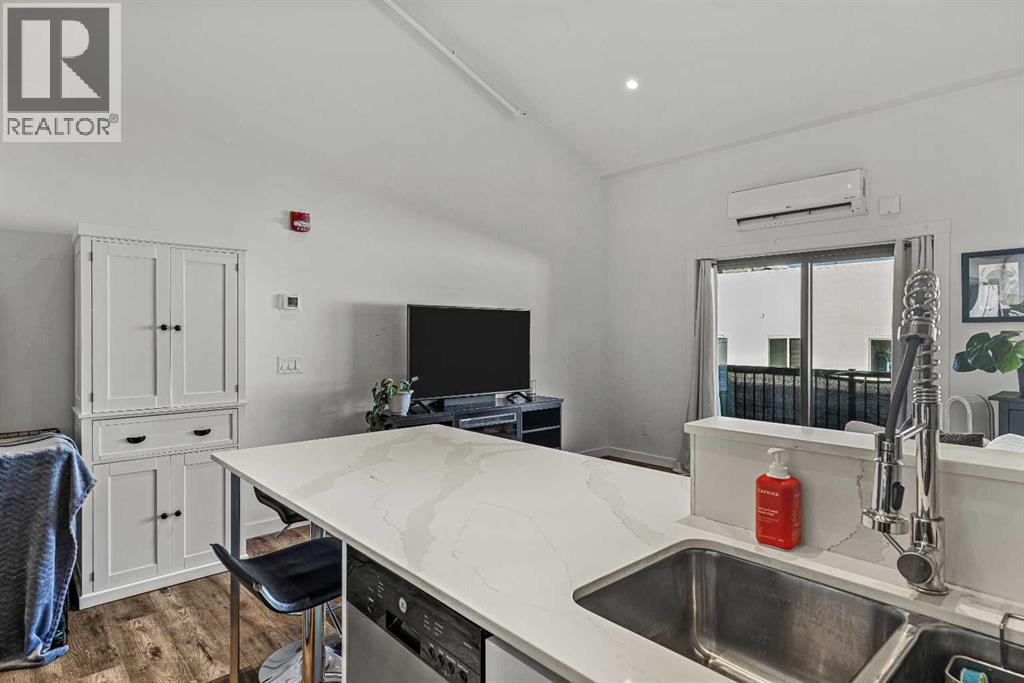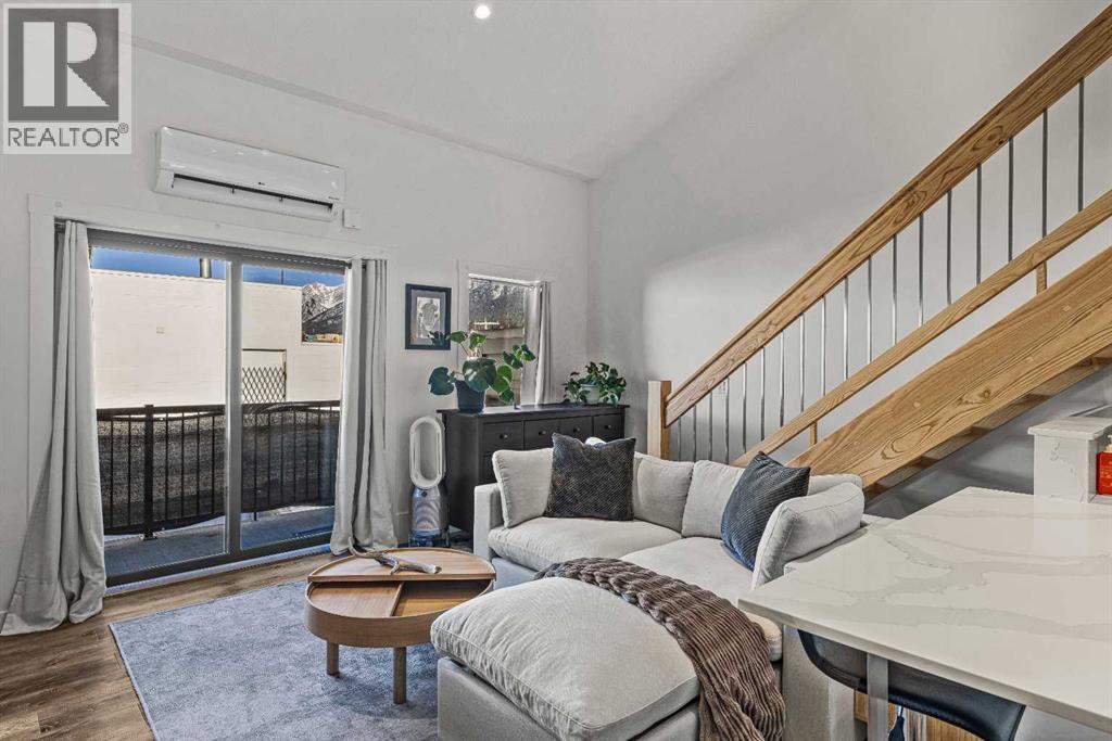 Welcome to Canmore living, where mountain views and everyday convenience come together. This west-facing 1-bedroom, loft-style home offers just over 605 sq. ft. of well-designed living space, with an open, airy layout that maximizes natural light and showcases the stunning mountain scenery that defines life in Canmore.Soaring ceilings and large windows create a bright, inviting main living area that brings the outdoors in. The kitchen features granite countertops, while the functional loft bedroom offers a flexible layout ideal for everyday living or working from home.Ideally located in a highly walkable neighbourhood, this home is steps from schools, the Canmore Arena, Canmore Golf & Curling Club, and the skate park. Walking and biking trails are right outside your door, grocery stores are minutes away, and quick highway access makes commuting to the mountains or the city effortless. Additional conveniences include secure bike storage, a separate storage locker, and access to industrial washers and dryers in the building—perfect for larger loads.Whether you’re a first-time buyer or looking to get into Canmore ownership, this loft at I Place delivers an exceptional blend of location, views, and lifestyle.Please note: short-term rentals are not permitted. Book your private showing today! (id:63190)