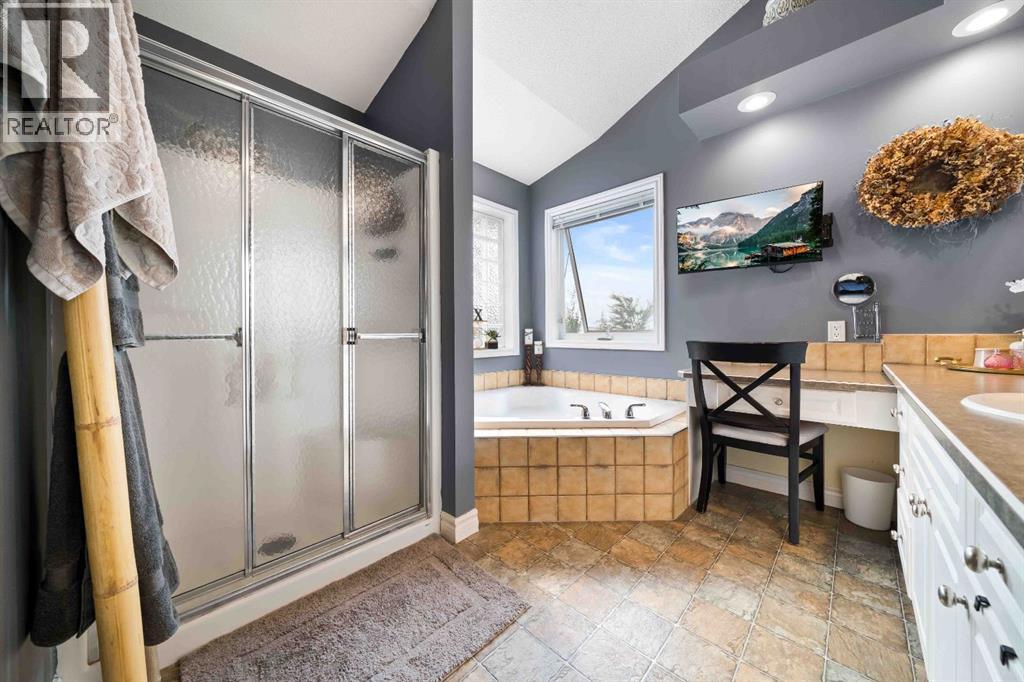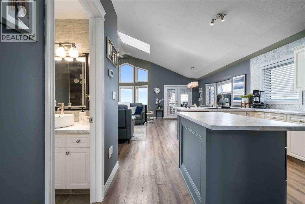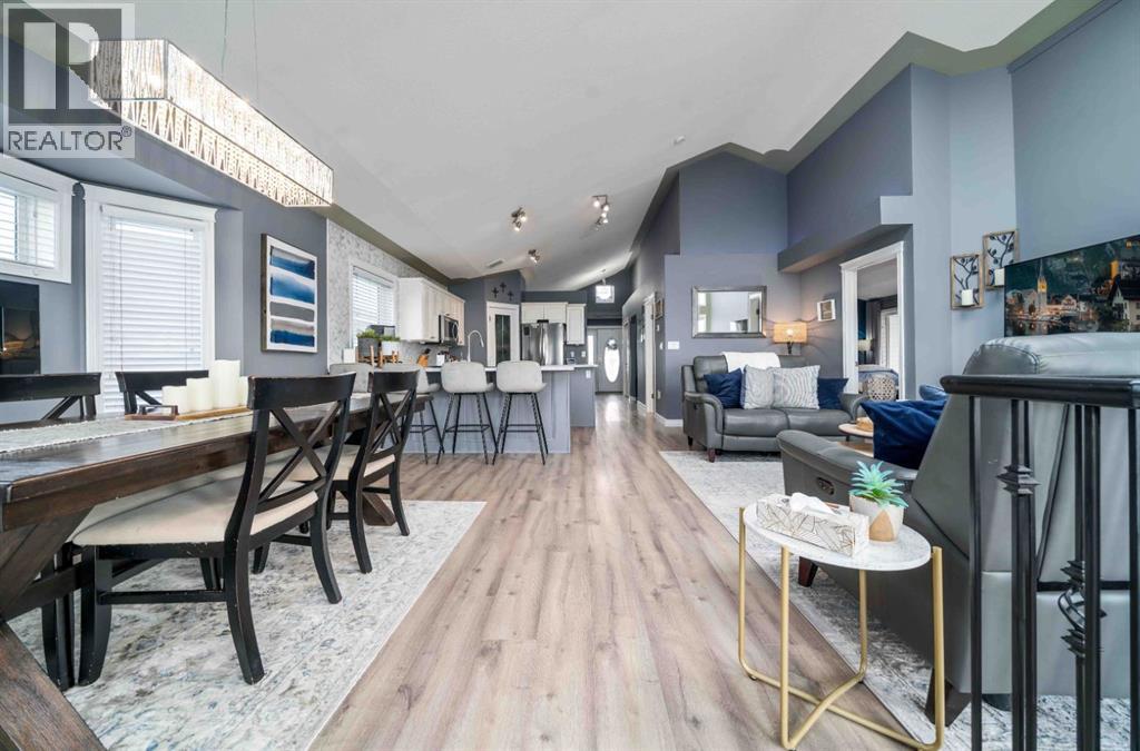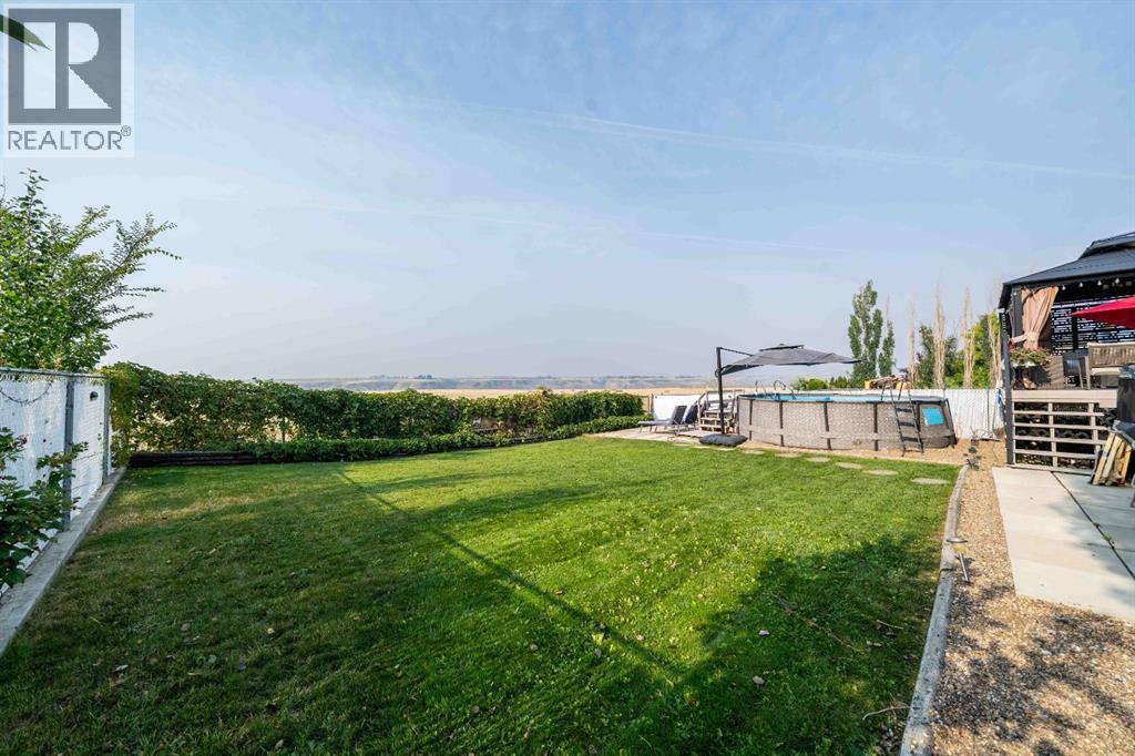 Welcome to 110 Redcliff Way SW, a bright and inviting walkout bungalow just six houses from the edge of the Redcliff Golf & Country Club, and only a one-minute drive to the clubhouse. With vaulted ceilings, skylights, and large windows framing stunning panoramic views of the coulees, this home blends peaceful living with thoughtful functionality. At the front of the home, a flexible room currently used as a butler’s pantry offers extra prep space, cabinets, and a second fridge — but could also serve as a home office, sitting area, or den. Just off the heated and insulated double garage, you'll find a boot room with closet for storing all your outdoor gear. The main living area opens into a bright, open-concept kitchen/dining/living space. Enjoy crisp white cabinetry, newer laminate countertops, stainless steel appliances, a corner pantry, breakfast bar, and island — perfect for family meals and entertaining. A 2pc guest bathroom is conveniently located just off the kitchen. From the spacious dining area, step out onto your deck with a built-in gazebo, ideal for soaking in the expansive prairie skies and coulee views. Watch summer storms roll in or unwind in the hot tub after a long day. The large backyard includes a sprawling grassed area, paved patio, above ground pool and underground sprinklers for easy lawn maintenance. The primary bedroom retreat features a vaulted ceiling, walk-in closet, plus a 4pc ensuite with a jetted tub, shower, oversized vanity, and large mirror. Downstairs, the fully finished basement boasts 9-foot ceilings, a cozy living area with fireplace, double-door bedroom (currently a music room), two additional large bedrooms, a 4-piece bathroom, and a fifth bedroom currently used as a home gym. A separate laundry room and utility/storage space add even more function. This home checks all the boxes for relaxed living just steps from the golf course, with room for guests, hobbies, and hosting — both indoors and out. 110 Redcliff Way SW — Lifestyle , space, and scenery, all in one. (id:63190)