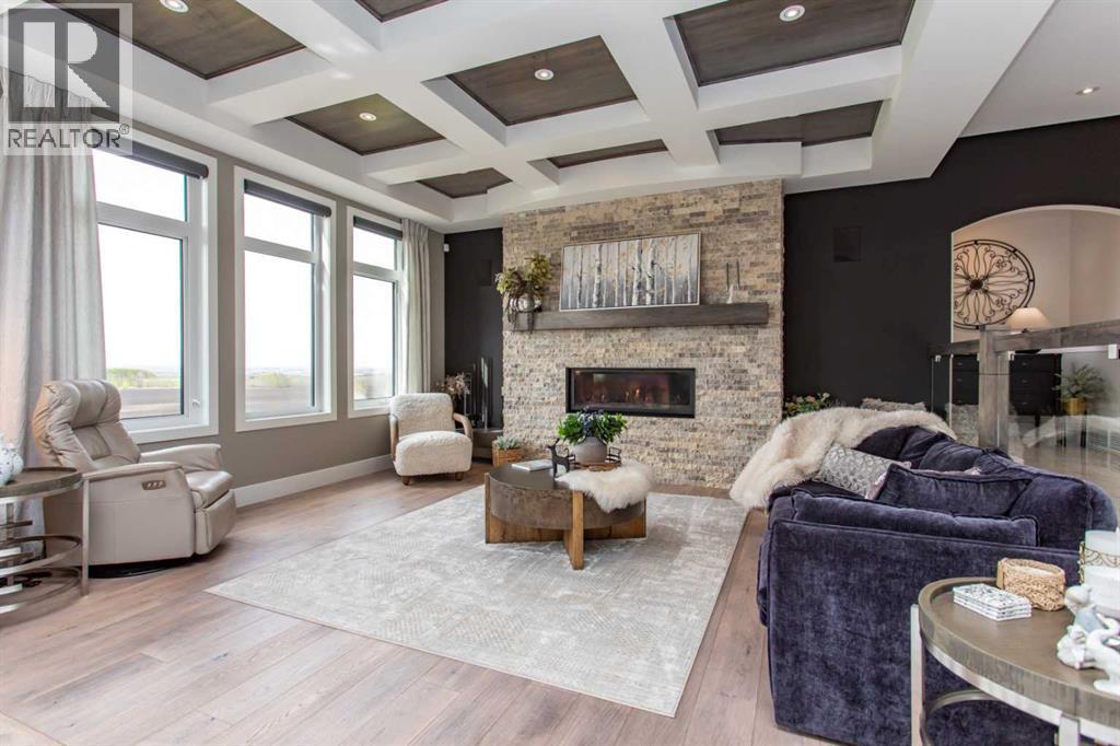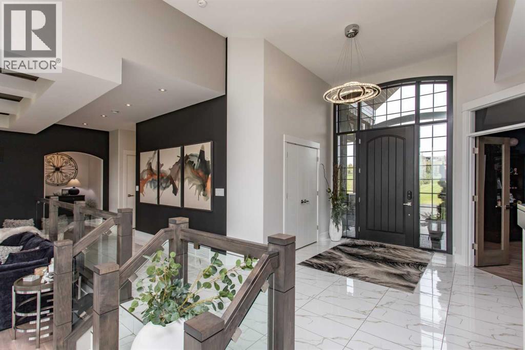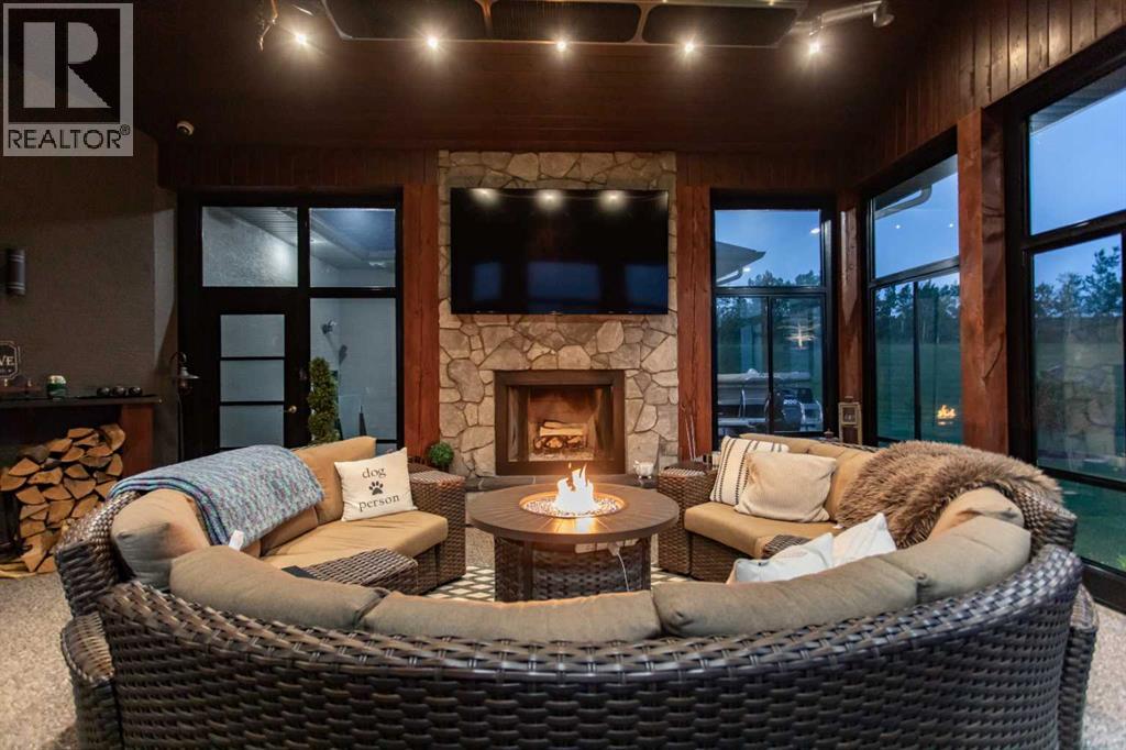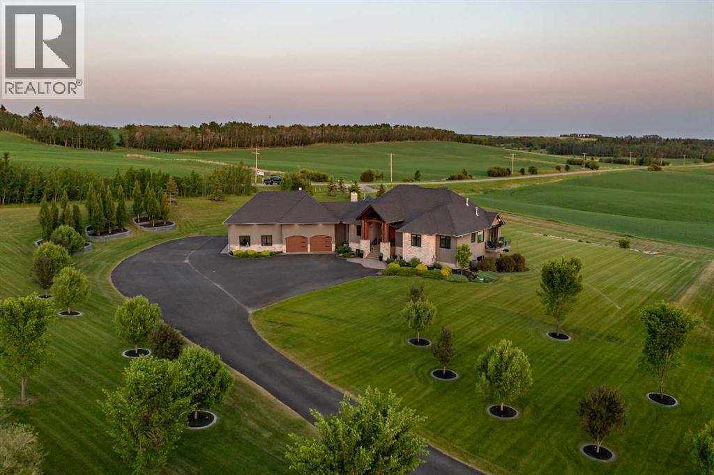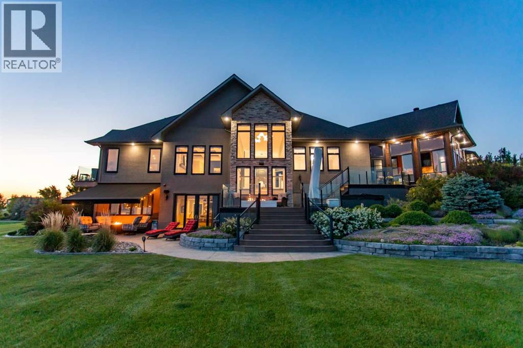 EXPERIENCE UNRIVALED LUXURY LIVING IN THIS BREATHAKING WALKOUT BUNGALOW ON 3.06 ACRES. Welcome to a lifestyle of ELEGANCE and sophistication in this custom-built masterpiece by the renowned SORRENTO CUSTOM HOMES, one of Red Deer's most prestigious builders. This stunning walkout bungalow offers the perfect blend of privacy, space and high-end living. Boasting 4 spacious bedrooms and 4.5 lavish bathrooms, this home is designed for comfort and style. The heart of the home dazzles with QUARTZ countertops, polished tiled floors and rich hardwood flooring, showcasing the exquisite craftsmanship & attention to detail throughout. The primary bedroom features tray ceilings, 2-sided gas fireplace with stone to ceiling, private balcony, glass railing and awning. Indulge in SPA-LIKE LUXURY everyday in this 5-piece ensuite that redefines indulgence. Greeted by heated floors, 6 ft soaker tub, custom steam shower, water closet, and makeup desk! The walk-in closet is completed with bench storage seating, lots of custom built in drawers, and a shoe rack. The main floor features a laundry room with sink and lots of cabinetry, a spacious office with custom built in maple cabinets, drawers and bookcase. THE ULTIMATE THREE SEASON ESCAPE~ where comfort meets outdoor living. The CROWN JEWEL of this extraordinary home is the 3-season room that is designed to captivate and indulge. Host summer parties, or enjoy a quiet, fire-lit evening. The built-in BBQ, framed by sleek granite countertops that offer both STYLE & durability for effortless entertaining. As the sun sets, gather around the wood burning fireplace, where crackle of the flames set the mood for cozy nights & memorable conversations. All of this while taking in the breathtaking views of the city lights ~ A DAZZLING BACKDROP that transforms every evening into a private retreat. Step into the lower level that's anything but ordinary. This fully developed basement is a masterpiece of comfort, design, & functionality - every inch tho ughtfully crafted for elevated living. Completed with operational in floor heat, gas fireplace, full size wet bar with NEW BEVERAGE fridge, and incredible theatre room with ambient lighting that sets a relaxing and inviting mood. A spacious designated gym equipped with treadmill, elliptical & workout bench. Step outside through walkout doors onto a stamped concrete patio, a serene escape surrounded by professional landscaping, stone retaining wall, mulched flower beds and fully irrigated. Other great features include: pavement to your front door, rock water fountain, epoxy floors in garage, with drains, a 2-pc bath in garage, wash sink, Hayley cabinets, RV parking with power & sewer dump, solar power gate, insulated theatre room, ensuite custom steam shower, walnut & maple cabinets, custom wine room, water filtration system, reverse osmosis, newer hot tub, maintenance free decking with farmless glass railing. This estate home offers a RARE opportunity to enjoy the finest luxuries in life, everyday. (id:63190)