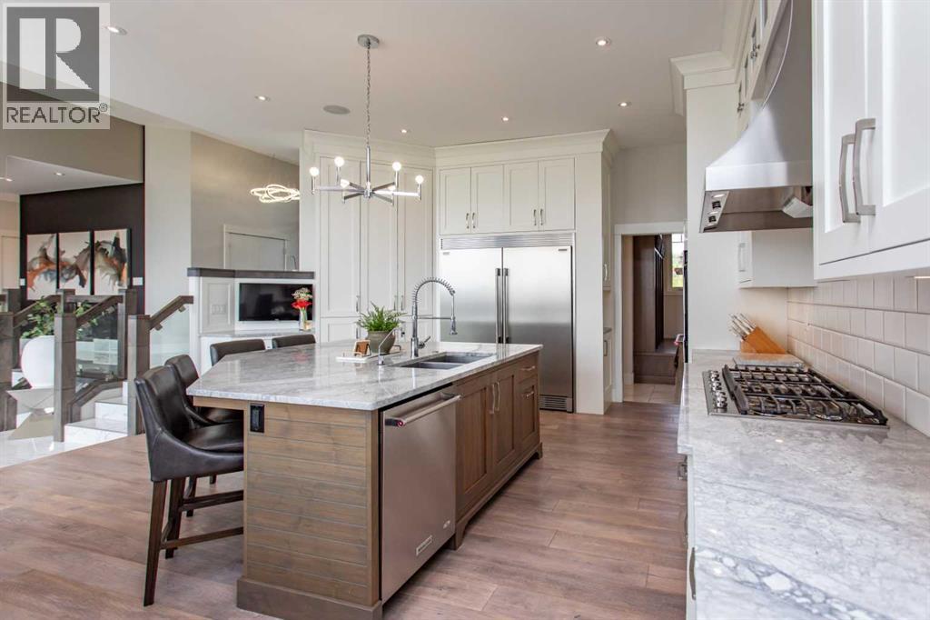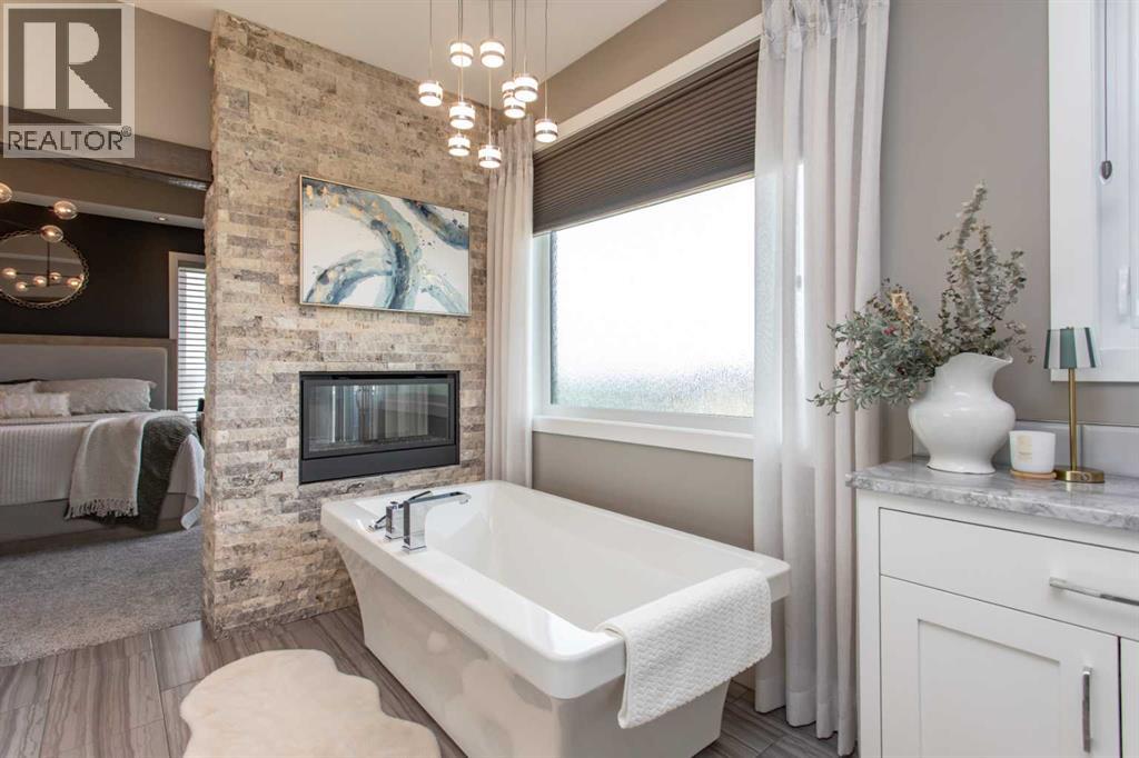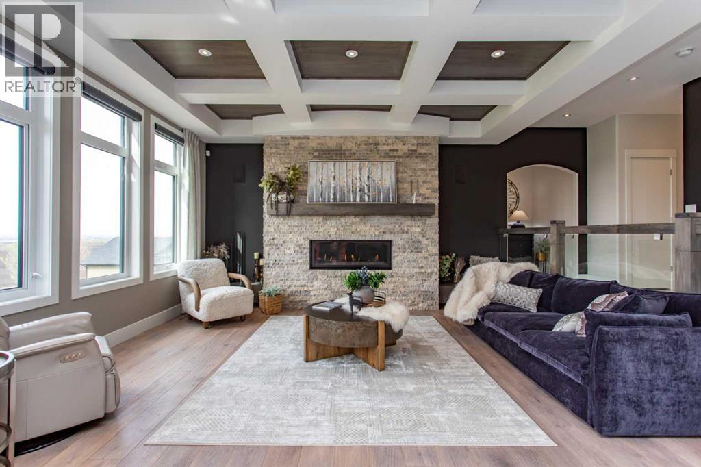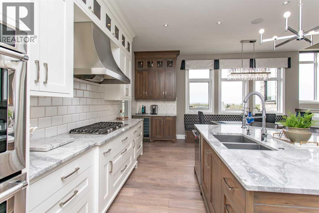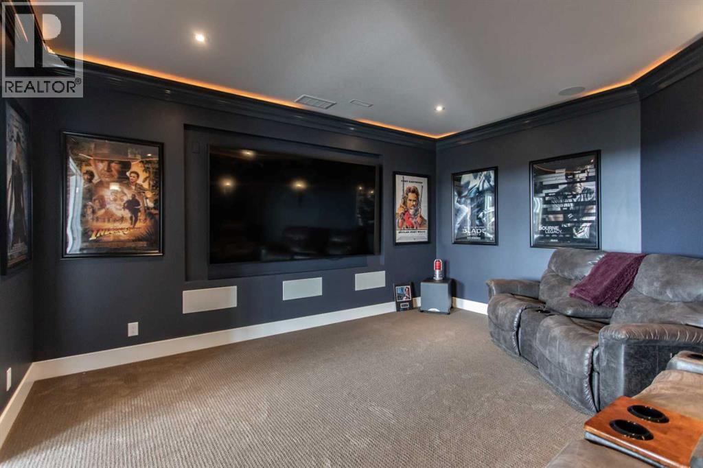 EXPERIENCE UNRIVALED LUXURY LIVING IN THIS BREATHAKING WALKOUT BUNGALOW ON 3.06 ACRES. Welcome to a lifestyle of ELEGANCE and sophistication in this custom-built masterpiece by the renowned SORRENTO CUSTOM HOMES, one of Red Deer's most prestigious builders. This stunning walkout bungalow offers the perfect blend of privacy, space and high-end living. Boasting 4 spacious bedrooms and 4.5 lavish bathrooms, this home is designed for comfort and style. The heart of the home dazzles with QUARTZ countertops, polished tiled floors and rich hardwood flooring, showcasing the exquisite craftsmanship & attention to detail throughout. The primary bedroom features tray ceilings, 2-sided gas fireplace with stone to ceiling, private balcony, glass railing and awning. Indulge in SPA-LIKE LUXURY everyday in this 5-piece ensuite that redefines indulgence. Greeted by heated floors, 6 ft soaker tub, custom steam shower, water closet, and makeup desk! The walk-in closet is completed with bench storage seating, lots of custom built in drawers, and a shoe rack. The main floor features a laundry room with sink and lots of cabinetry, a spacious office with custom built in maple cabinets, drawers and bookcase. THE ULTIMATE THREE SEASON ESCAPE~ where comfort meets outdoor living. The CROWN JEWEL of this extraordinary home is the 3-season room that is designed to captivate and indulge. Host summer parties, or enjoy a quiet, fire-lit evening. The built-in BBQ, framed by sleek granite countertops that offer both STYLE & durability for effortless entertaining. As the sun sets, gather around the wood burning fireplace, where crackle of the flames set the mood for cozy nights & memorable conversations. All of this while taking in the breathtaking views of the city lights ~ A DAZZLING BACKDROP that transforms every evening into a private retreat. Step into the lower level that's anything but ordinary. This fully developed basement is a masterpiece of comfort, design, & functionality - every inch tho ughtfully crafted for elevated living. Completed with operational in floor heat, gas fireplace, full size wet bar with NEW BEVERAGE fridge, and incredible theatre room with ambient lighting that sets a relaxing and inviting mood. A spacious designated gym equipped with treadmill, elliptical & workout bench. Step outside through walkout doors onto a stamped concrete patio, a serene escape surrounded by professional landscaping, stone retaining wall, mulched flower beds and fully irrigated. Other great features include: pavement to your front door, rock water fountain, epoxy floors in garage, with drains, a 2-pc bath in garage, wash sink, Hayley cabinets, RV parking with power & sewer dump, solar power gate, insulated theatre room, ensuite custom steam shower, walnut & maple cabinets, custom wine room, water filtration system, reverse osmosis, newer hot tub, maintenance free decking with farmless glass railing. This estate home offers a RARE opportunity to enjoy the finest luxuries in life, everyday. (id:63190)