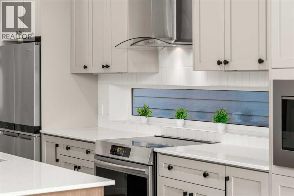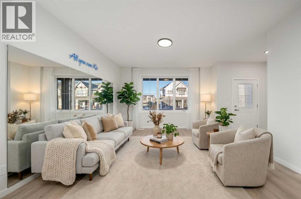Immaculate and truly move-in ready, this Calbridge Homes Vista EV shows like new and offers a rare opportunity to enjoy a fully finished home without the wait or work of building. The modern layout spans three levels with three bedrooms and two and a half bathrooms, capped by a stunning third-floor bonus room that opens directly onto an incredible rooftop patio, a rare and highly desirable feature. The main level features a bright, open layout with 9-foot ceilings and great flow for everyday living. The kitchen offers ceiling-height cabinetry, a dedicated coffee bar, ample pantry space, and a large island, while the dining area opens directly to the rear deck, creating an easy indoor-outdoor connection. Upstairs, the primary bedroom offers generous space and a walk-in closet, paired with a well-appointed ensuite featuring dual vanities, a glass-enclosed shower, and a soaker tub. The conveniently located upstairs laundry area sits just steps from the primary bedroom. Two additional bedrooms and a full bathroom complete the second level. The third-floor bonus room is a true retreat, offering a bright, relaxed space to unwind, work, or host friends, with direct access to the rooftop patio and open-sky views that make it feel like a private escape above it all. Outside, the home is fully finished with low-maintenance landscaping, full fencing, and a spacious rear deck, making it truly ready to enjoy from day one. Located in Alpine Park, one of Calgary’s most thoughtfully designed new communities, residents enjoy walkable pathways, parks and picnic areas, community gardens, Skyline Pond, tennis and basketball courts, Central Park with city views, and a fully fenced, off-leash dog park within walking distance. The upcoming Alpine Park Village Centre will add cafés, shops, and everyday conveniences just minutes from your door. A rare combination of like-new condition, exceptional outdoor space, and a thoughtfully designed community, this home delivers an elevated and conne cted lifestyle. (id:63190)