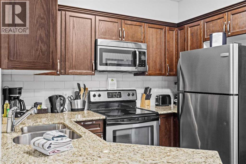 This 6-week fractional ownership opportunity offers a 2 bedroom, 2 bathroom suite located on the second floor of the highly sought-after Grande Rockies Resort in the heart of Canmore. Just a short walk to downtown shops, restaurants, and trails, this location is widely regarded as one of the best in town. The suite features granite countertops, stainless steel kitchen appliances, and in-suite laundry, along with a private patio complete with BBQ and outdoor seating, perfect for enjoying mountain evenings. Thoughtful finishes and a functional layout make this an ideal mountain retreat. Owners enjoy access to exceptional resort amenities, including an indoor swimming pool with waterslide, kiddie pool, indoor and outdoor hot tubs, fitness room, Grande Kitchen & Bar, and banquet facilities. As part of Paradise Residence Club, owners and guests also have access to the games room, outdoor BBQ area with Napoleon grills, and a gas fire pit located at the adjacent Sunset Resorts Canmore. The innovative rotation calendar provides 3 fixed peak-demand weeks on a rotating basis, plus 3 floating shoulder-season weeks, offering exceptional flexibility within the fractional ownership market. Owners may occupy the suite, lend it to friends, or participate in the established rental program. Property taxes, utilities, insurance, and professional property management are included in the annual fees, making this a truly turnkey ownership opportunity. A fantastic way to enjoy Canmore year after year, this one won’t last long. (id:63190)