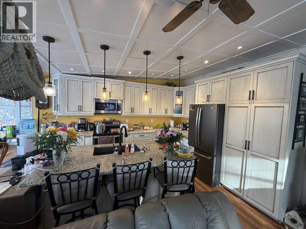 Nestled in Camrose County along the shores of Red Deer Lake, this exceptional four-season lakefront home offers the perfect blend of weekend escape and full-time living. Backing directly onto the water, with a reserve as one of your neighbors, this is a rare opportunity to own a truly special and private retreat.At the heart of the home is a stunning, newly renovated kitchen that rivals anything you’ll find in the city, featuring granite countertops, beautiful cabinetry, and a spacious island—perfect for entertaining or baking up your favorite treats. The dining room is wrapped in full-width of windows, showcasing breathtaking, year-round lake views, while the cozy living room invites you to relax beside the wood stove, keeping winter chills at bay.The home offers three bedrooms, two bathrooms, and a versatile flex room that could easily serve as a fourth bedroom or home office. A massive heated garage provides ample space for recreational toys, a workshop, or parking for two vehicles with ease. A forced -air furnace ensures consistent warmth and comfort throughout the seasons.Step outside to unwind in the hot tub, surrounded by trees and overlooking the lake—your own private oasis. With its unmatched setting, thoughtful upgrades, and rare lakefront location, this is a property you won’t want to miss. (id:63190)