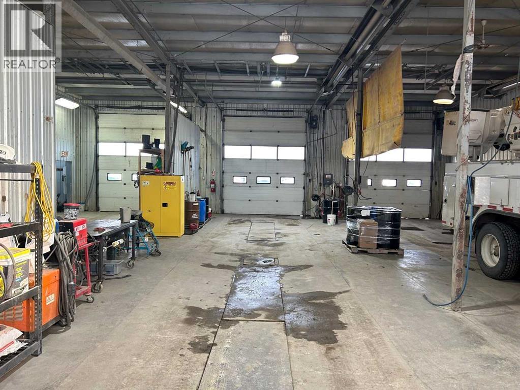 FOR SALE : 1.4 ACRES with a 4200 SQ FT Steel Structure building.... Fully Leased. Property FEATURES 6 - 14 ft Overhead doors allows trucks to drive through ; 3 bays each 60 ft deep ; originally the building was used as a truck and car wash ; ideal site for a potential second building, subdivision of a second lot [subject to town of High River approval ];fenced yard ; gravel packed rear yard ,security fenced and good highway access. New Air Exchange system installed in 2025. (id:63190)